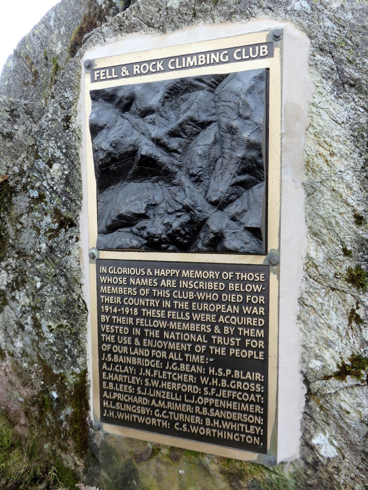 The fell is so well regarded amongst the rock climbing community that there is a prominent plaque set on the summit rock commemorating the 20 members of the Fell and Rock Climbing Club who died during the First World War.