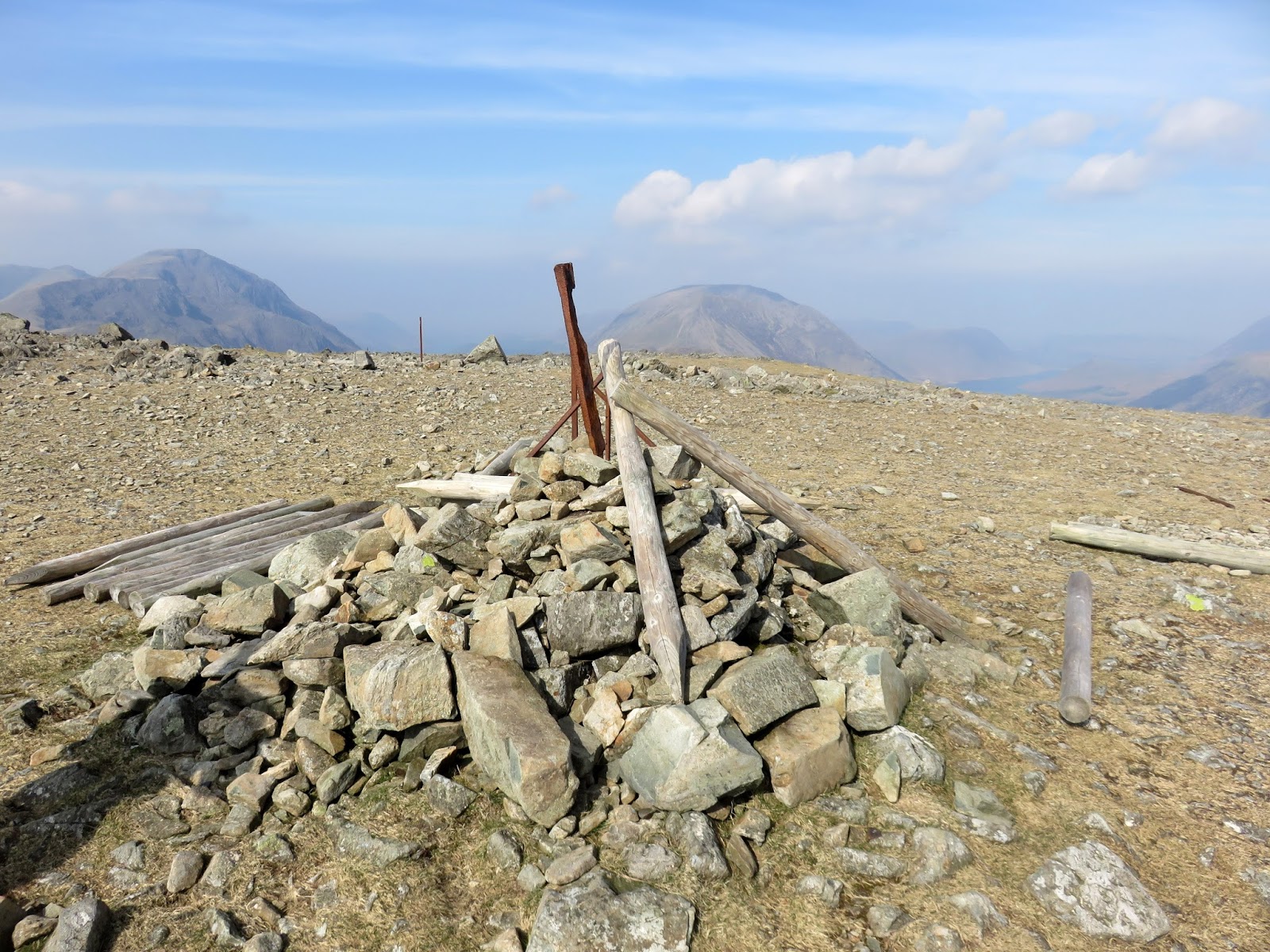Grey Knotts was originally just the name for the trio of rock protrusions from the summit of Seatoller Fell but the name has now been attached to a separate fell. Two of the outcrops are of equal height, both bearing a cairn and one guarding the remains of an OS column.