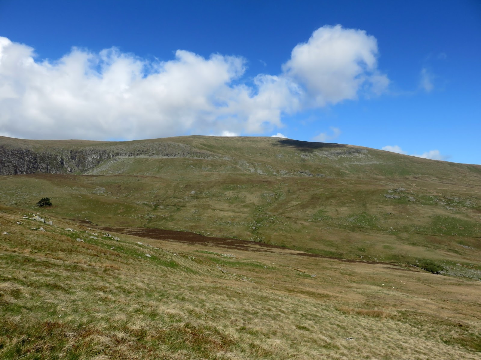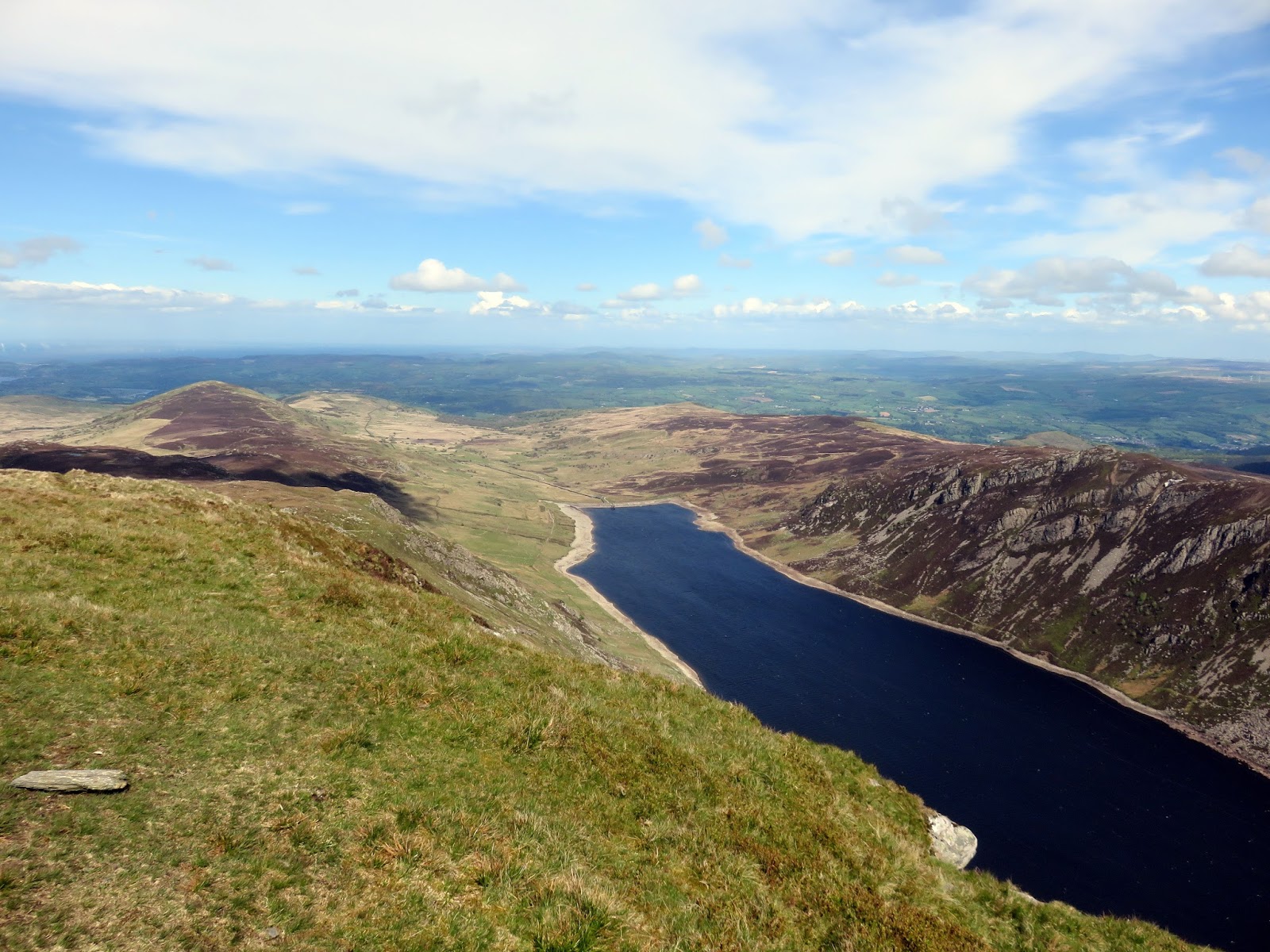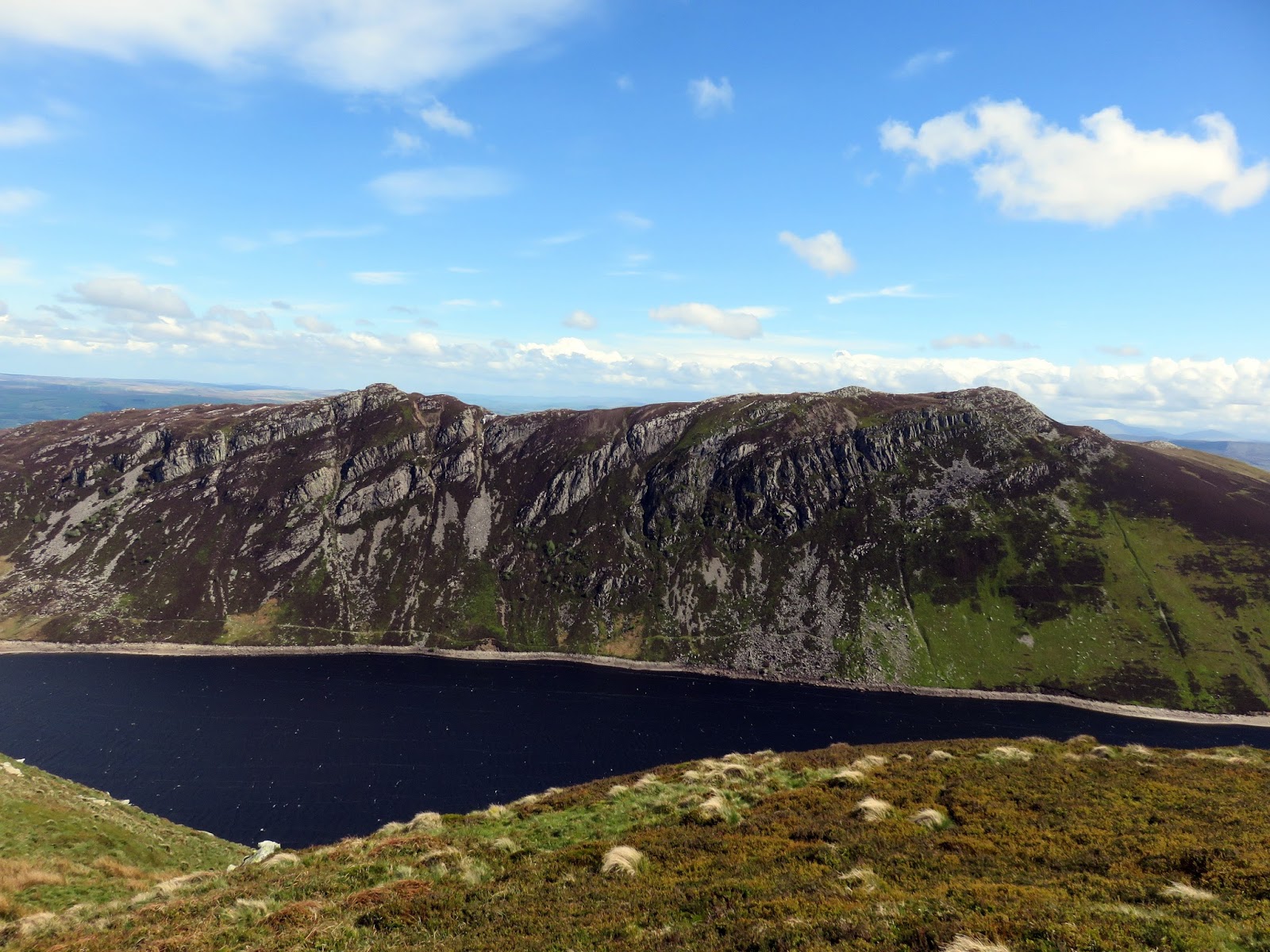 The climb up Pen Llithrig y Wrach is fairly dull, a grassy tramp at the end of a long day. Still, upon reaching the top a superb view of Llyn Cowlyd, Wales’ deepest lake, is revealed. Across the water are two of the less-frequented Nuttalls; Creigiau Gleision and its North Top. I’d get some much better photos of them this time I was here.