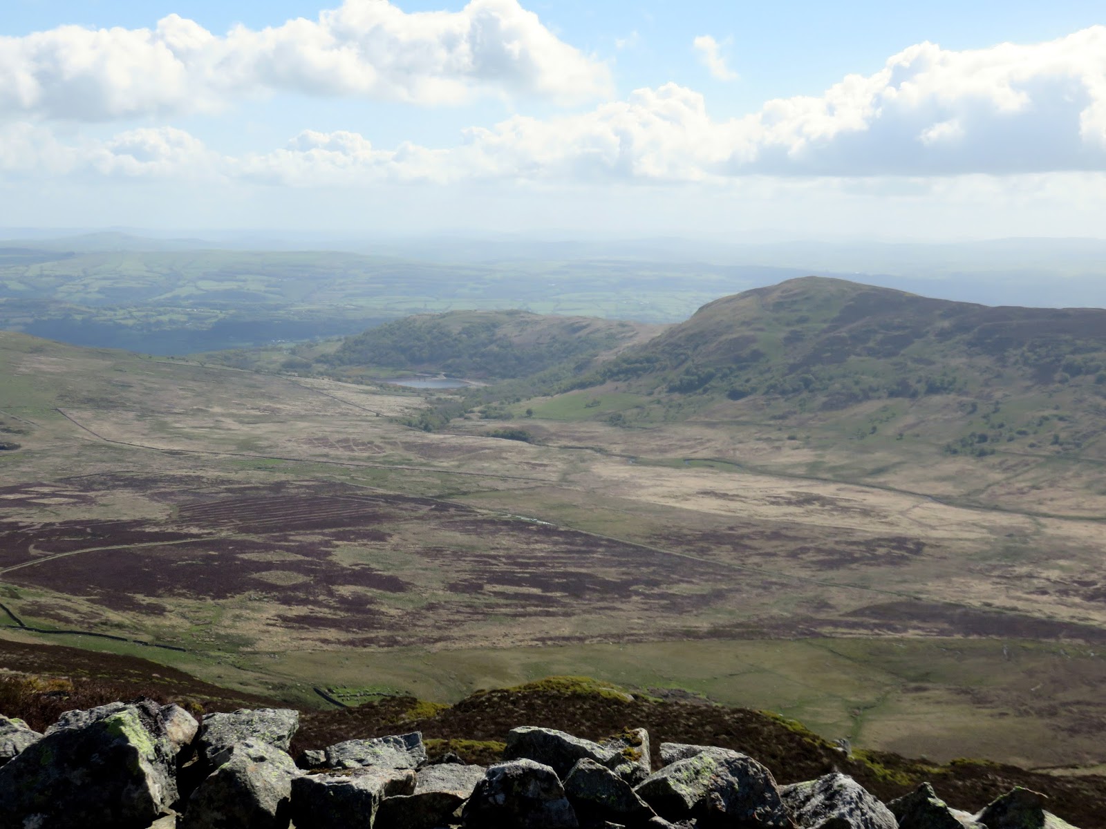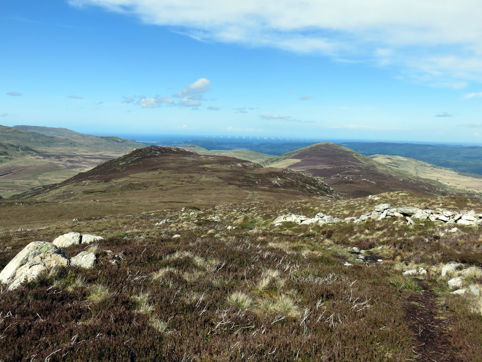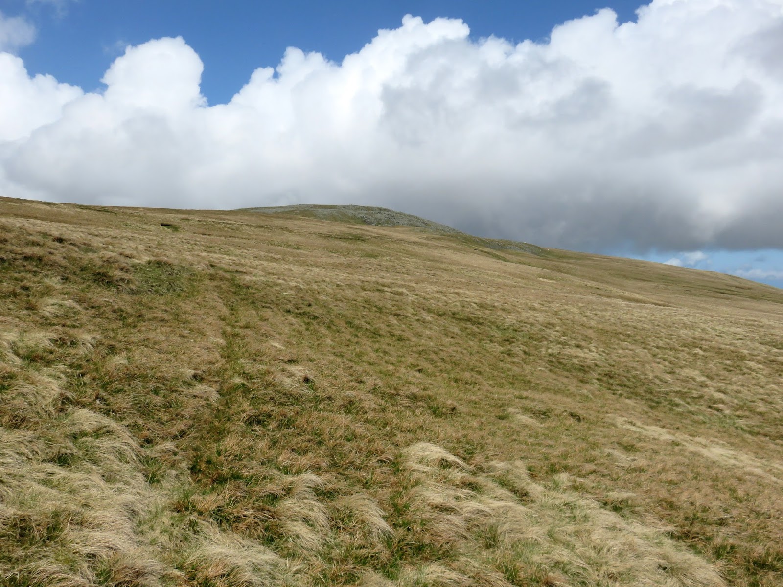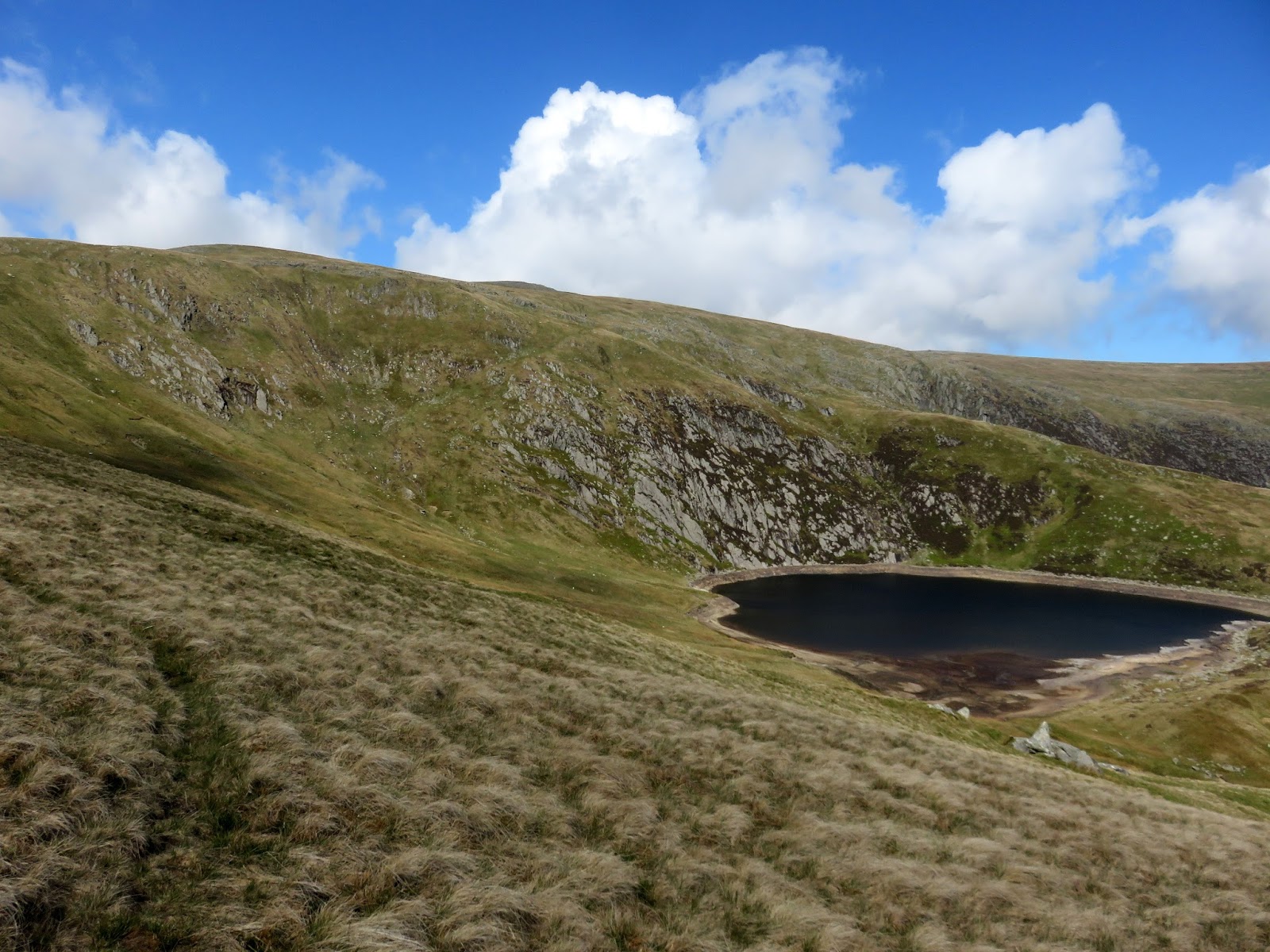 The climb up Pen Llithrig y Wrach is fairly dull, a grassy tramp at the end of a long day. Still, upon reaching the top a superb view of Llyn Cowlyd, Wales’ deepest lake, is revealed. Across the water are two of the less-frequented Nuttalls; Creigiau Gleision and its North Top. I’d get some much better photos of them this time I was here.