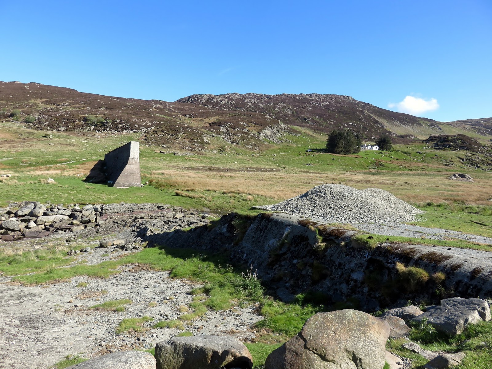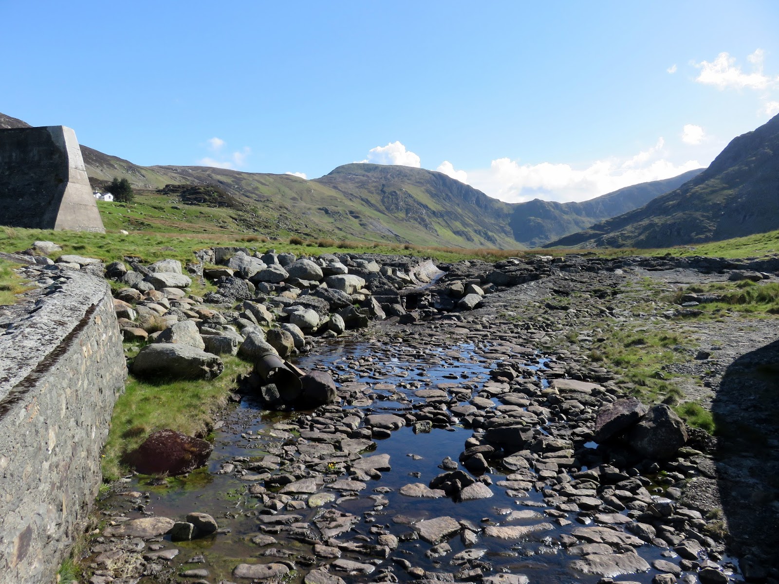 The track leads to the breached dam wall of the Eigiau reservoir. The dam burst in 1925, following over 600mm of rain in just five days, killing 17 people in the village of Dolgarrog.