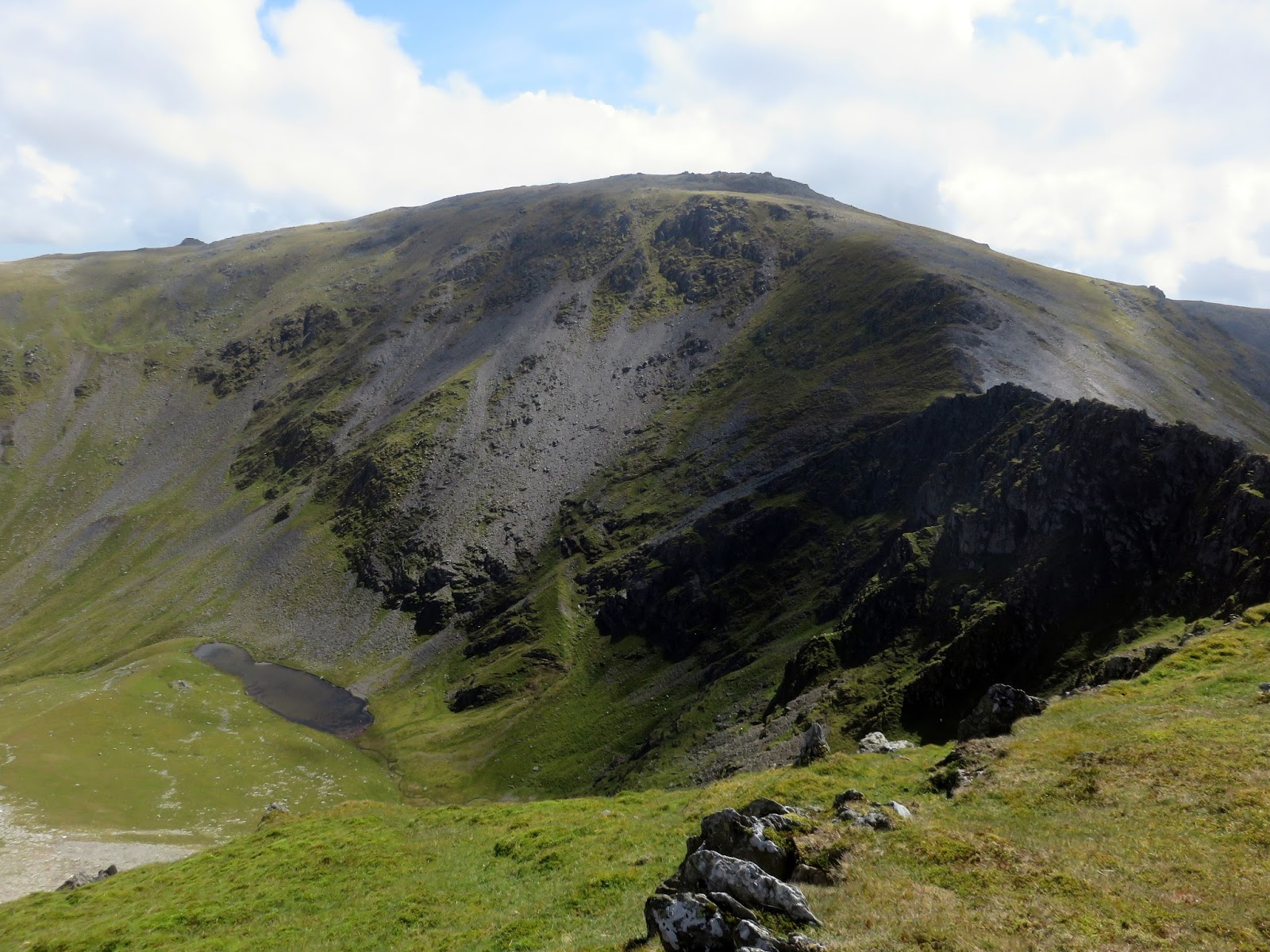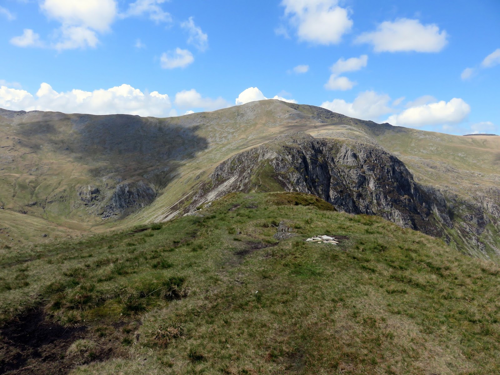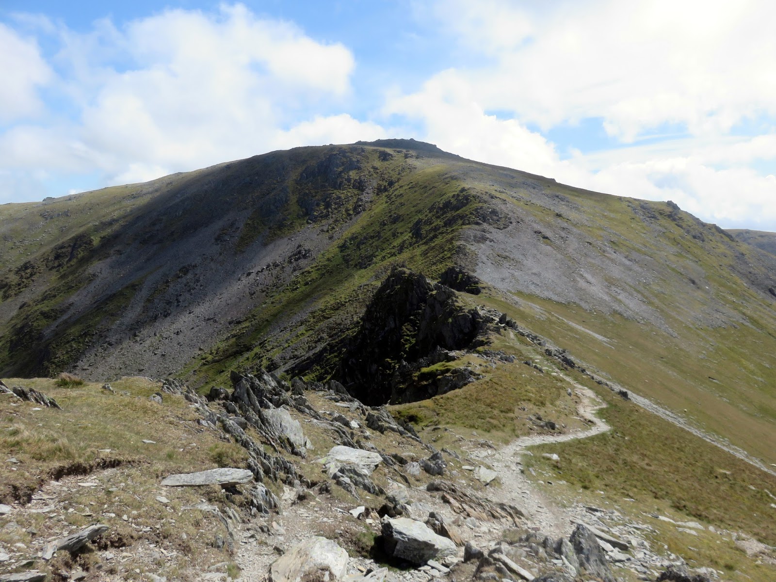 A broad grass ridge, Gledrffordd, joins Craig Eigiau to its parent Foel Grach with an obvious path leading towards the summit. It’s easy to wend around on the ridge – to the north, the small Llyn Melynllyn is well seen while the enormous Craig yr Ysfa dominates Carnedd Llewelyn’s south-east ridge.
