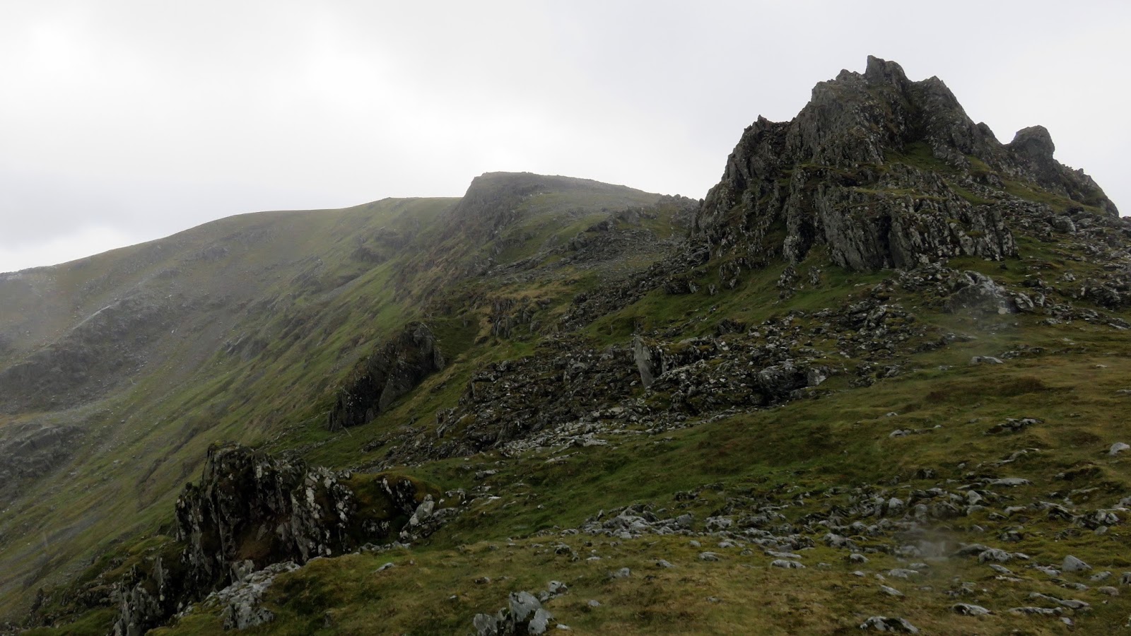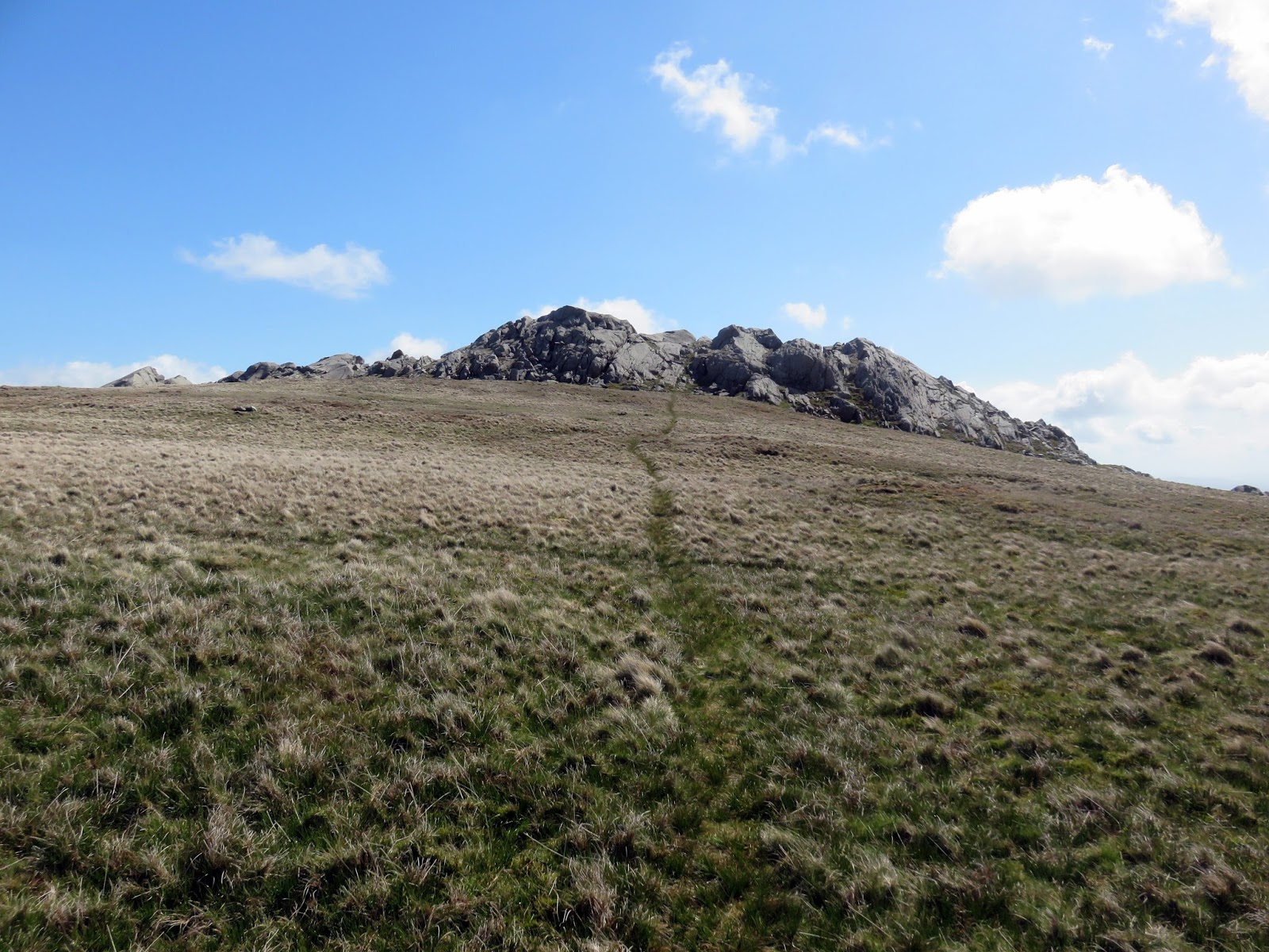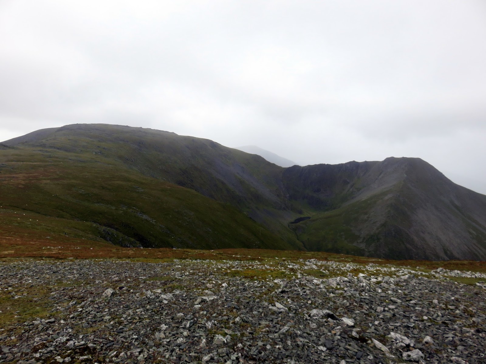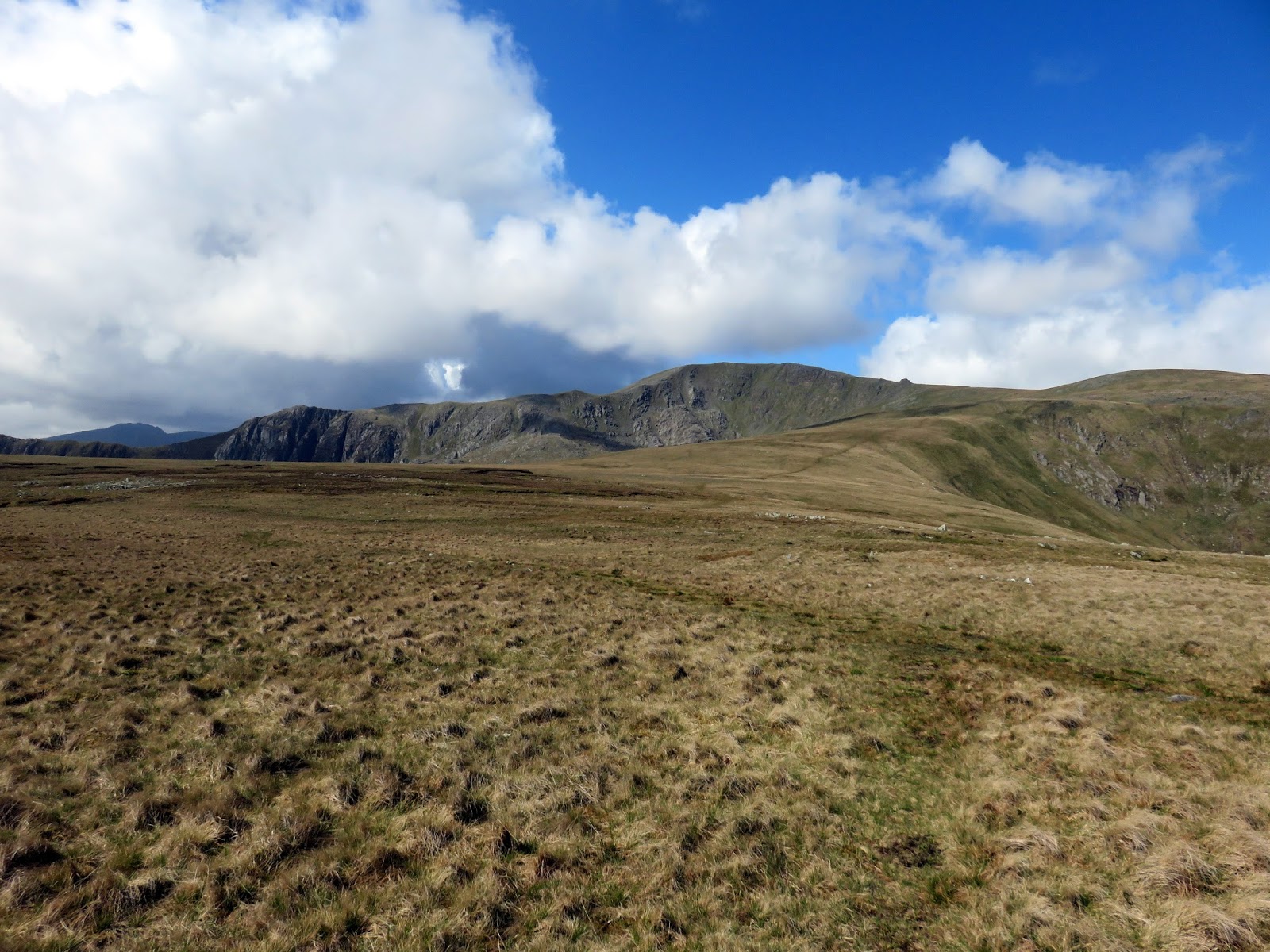 Pen yr Helgi Du is a fine mountain with a broad, grassy summit and is shaped much like an arrowhead – the north-west ridge forming the point. I still had quite a way to go so I didn’t hang around for too long, beginning my descent down the east ridge into Bwlch y Tri Marchog – the pass of the three horsemen. The pass has its own minor top, Clogwyn Llech Lefn – it would have been rude to pass it by.