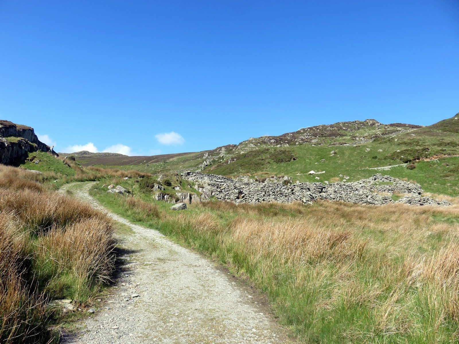 A long but easy descent through the heather leads from Pen Llithrig y Wrach to Craig Ffynnon and, eventually, to one of the old mine roads that litter Wales. This one, in particular, formed the route of the Eigiau Tramway, a narrow gauge, horse-powered tramway which operated from in the late 1800s and served the Eigiau slate quarry. One of the remaining bridges is still visible today.