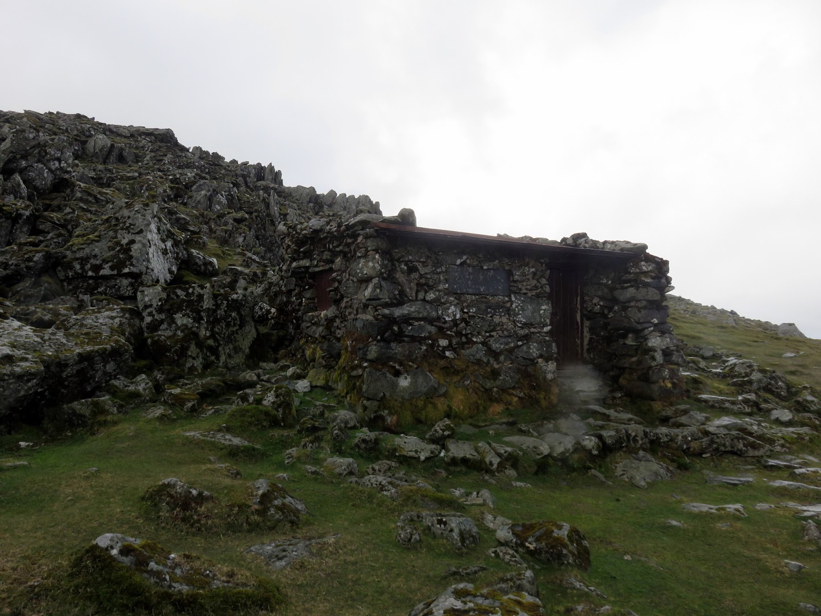 While plodding up to the summit of Foel Grach, the rain arrived and was falling quite heavily by the time I reached the very top. Luckily, the clouds remained high so I could still see the views around me. There’s an emergency refuge built just below the summit and, given the rain, I had a quick look around and a pause as the worst of the weather passed.