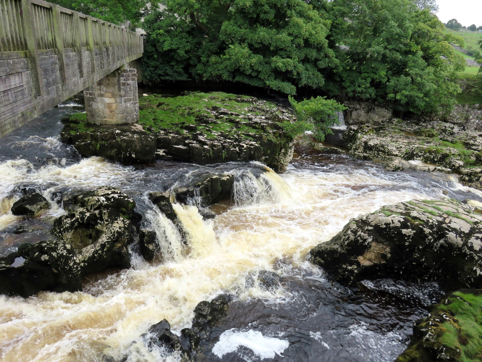 Things calm down a bit after that, a 2 mile stroll along the Dales Way, paved in a number of areas, leads to Linton and, more importantly, Linton Falls. The best way to include them on circular walk is to not cross the river at the second set of stepping stones but to continue on the Dales Way to Sedber Lane, which crosses the falls perched on top of a small bridge.