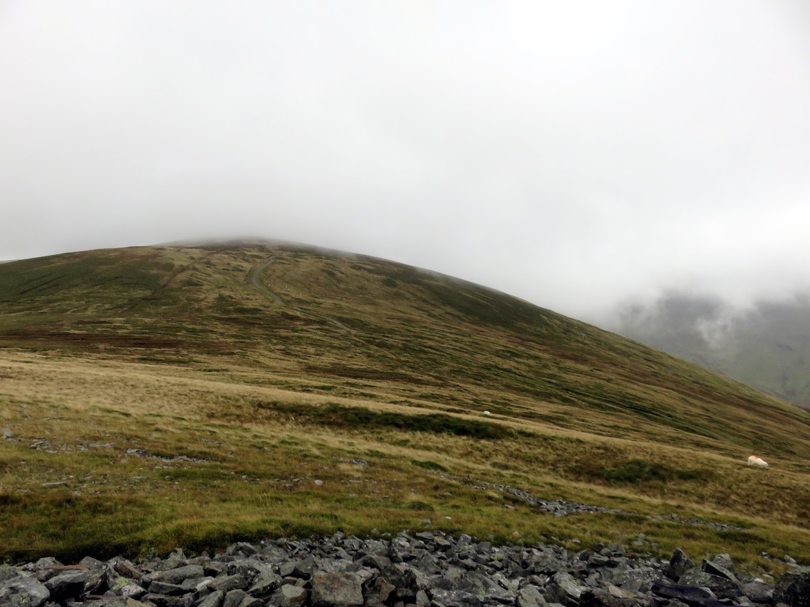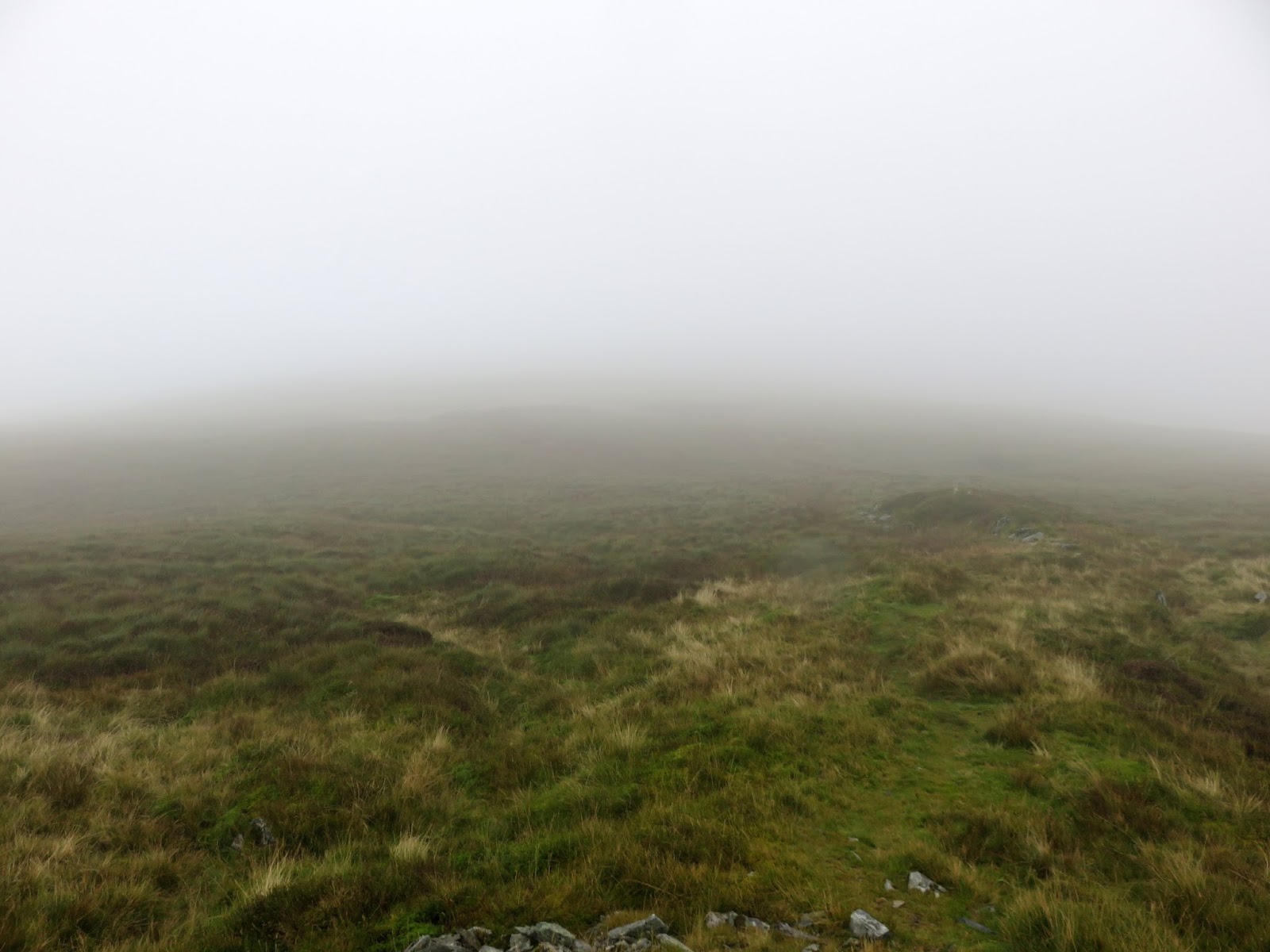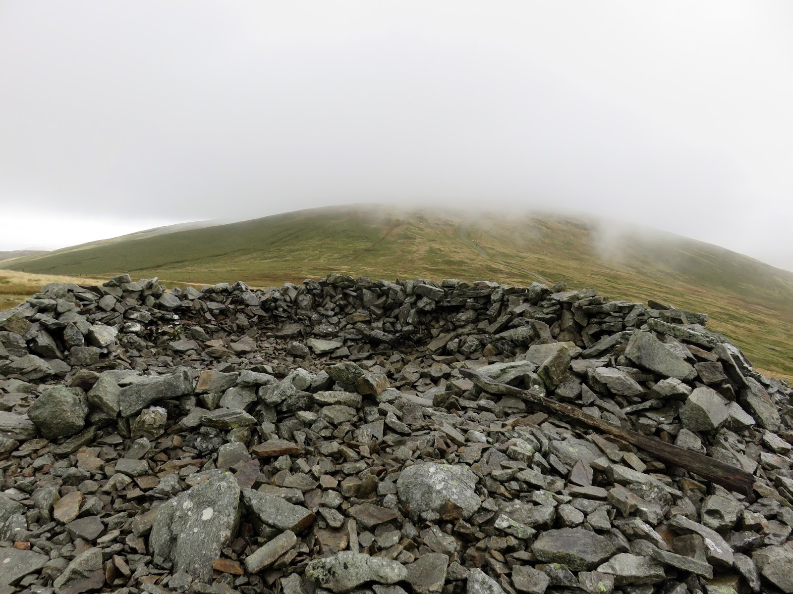 Overall, the summit is fairly uninteresting, as were the views today as much of the scenery was shrouded with low cloud. My advice, for the next part, would be to head south-east over Craig Cefn Coch to get to a track which leads beneath Penygadair and to the road back to the car. You could even visit the curious standing stones of the Pen-y-gaer hill fort.