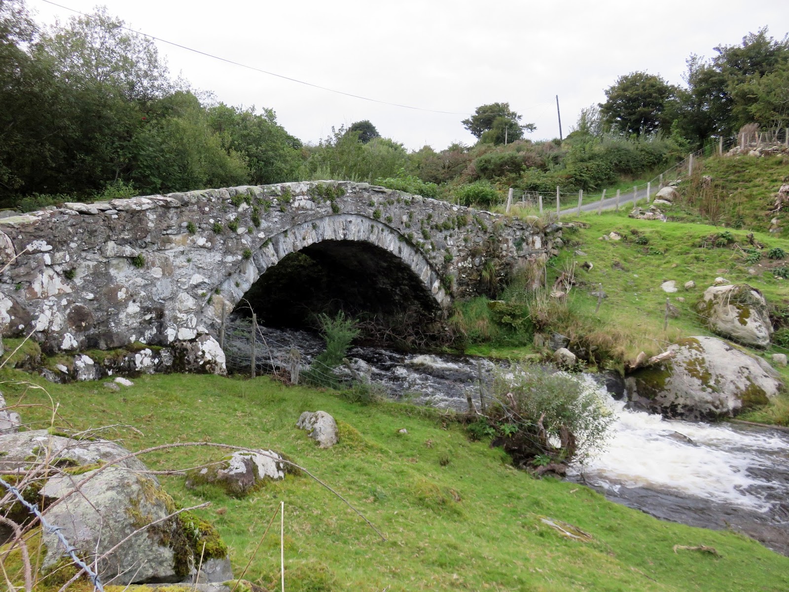 Thankfully, the green lane eventually becomes a surfaced track which heads downhill to the minor road leading back to the car. An old bridge crosses the Afon Tafolog before the lane climbs back up to the starting point.