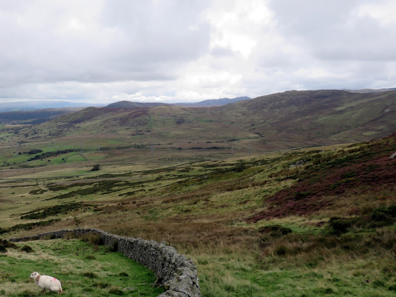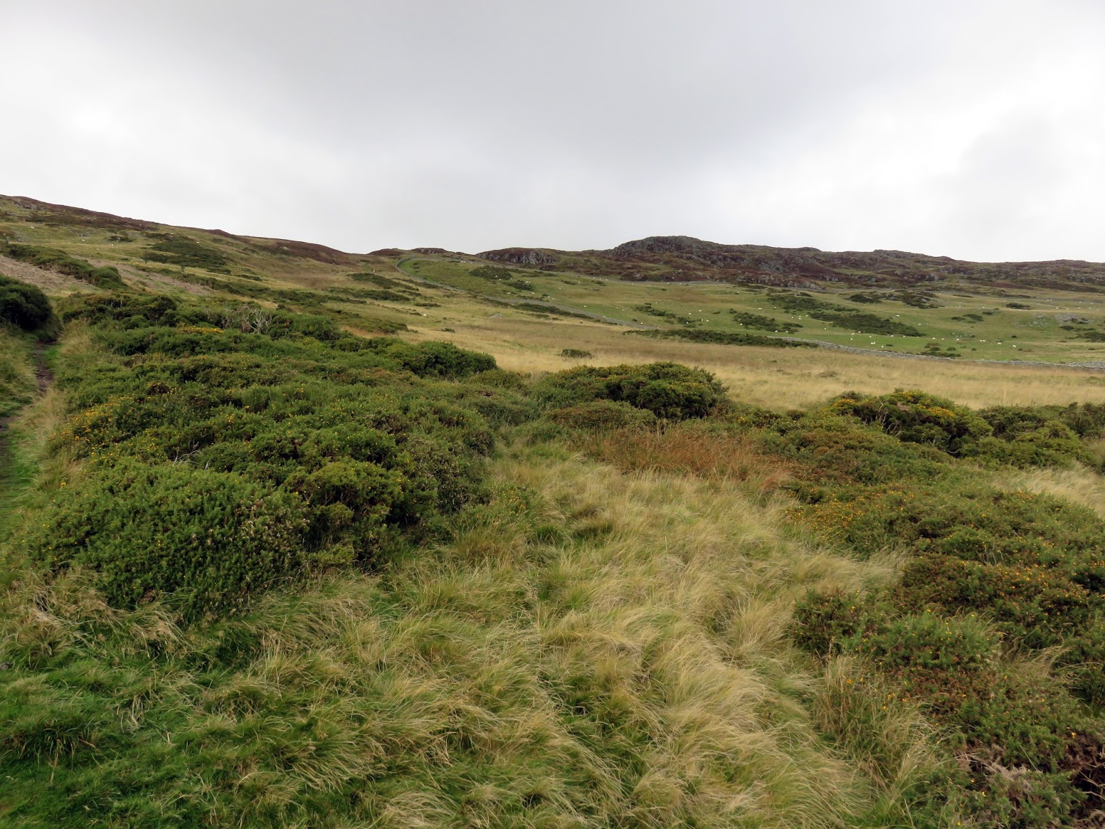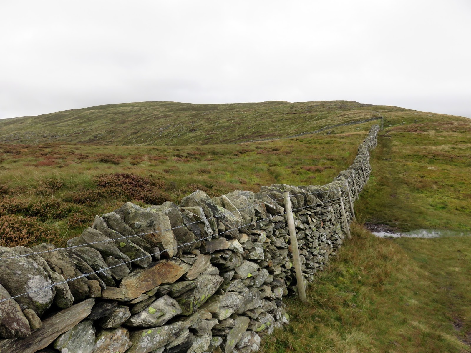 I parked half a mile up the road from the car park, using a grassy verge close to Cae Coch which would make more of a circuit from the walk. It had been raining heavily for a few days prior to my arrival and water was still flowing readily down the road. After the road bends west, a ladder stile crosses the high drystone wall into the Access Land beyond.