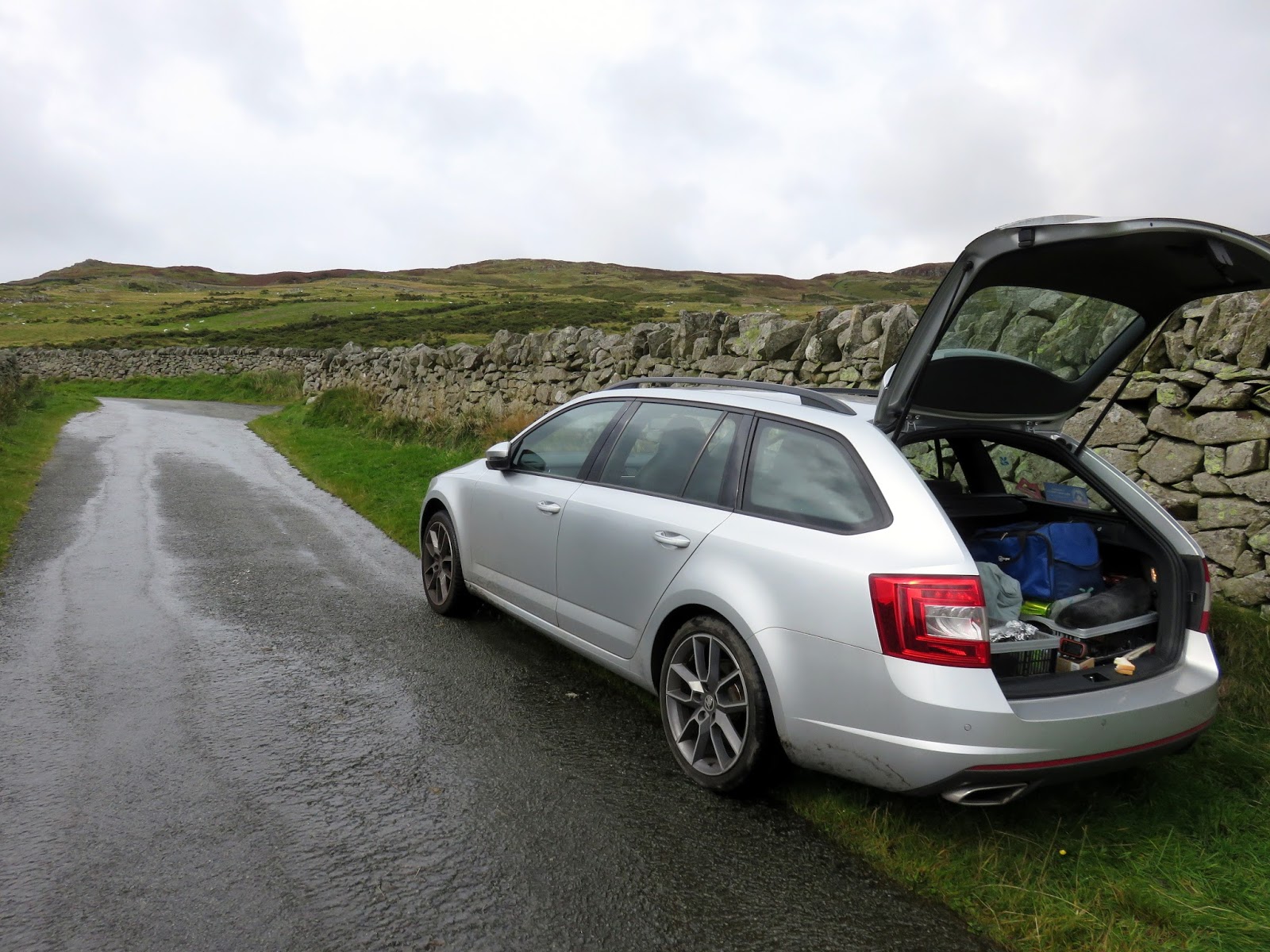 | My parking spot at the side of the road with Tal y Fan in the distance |