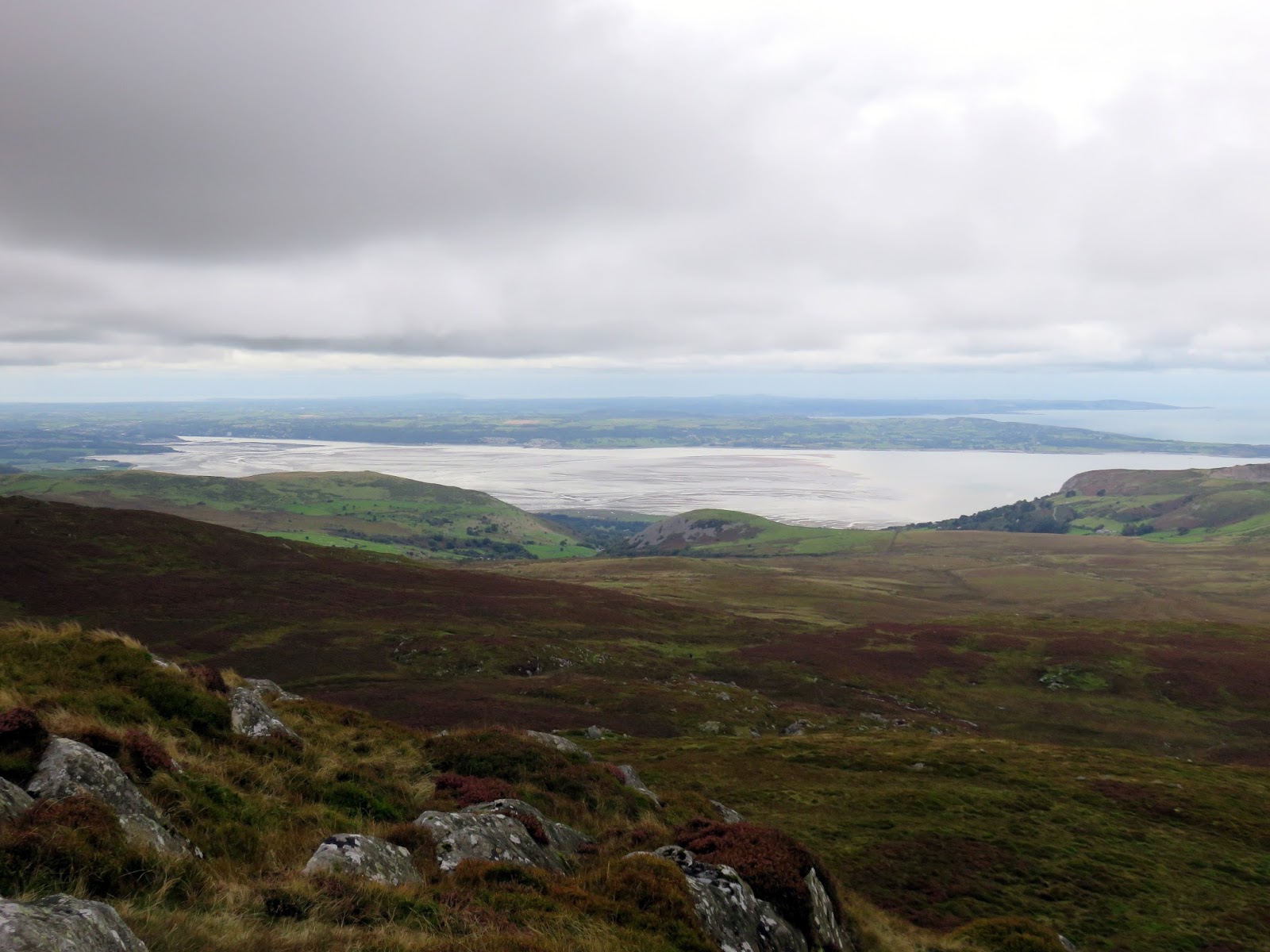 After the short grassy climb from the road, Tal y Fan has a rocky flourish, clad in boulders, peat and heather. After following the wall a short distance, a trig pillar marks the summit and some fine views.