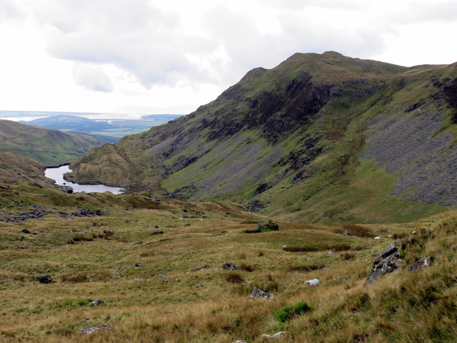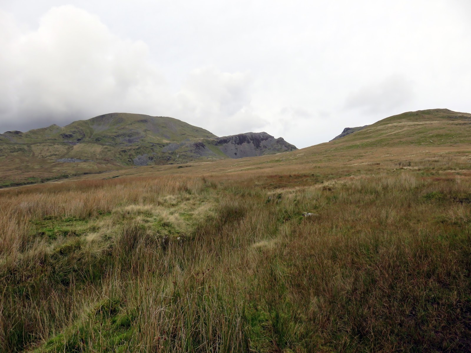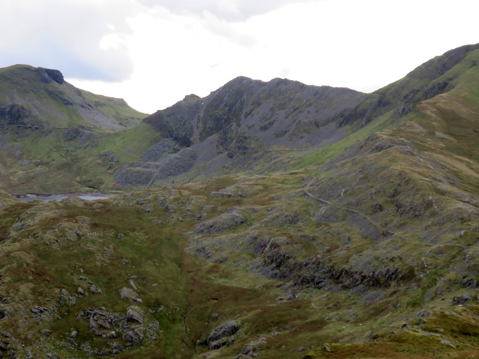 With view opening up now, we followed the ridge down to Llyn yr Adar and the further still into Cwm Corsiog. By now the way ahead was visible, across a marshy upland to the expanse of the disused Rhosydd quarry. This is wild territory though the route through Cwm Corsiog to the quarry is not particularly interesting. That said, a look at the artificial Llyn Cwm-corsiog is worth it.