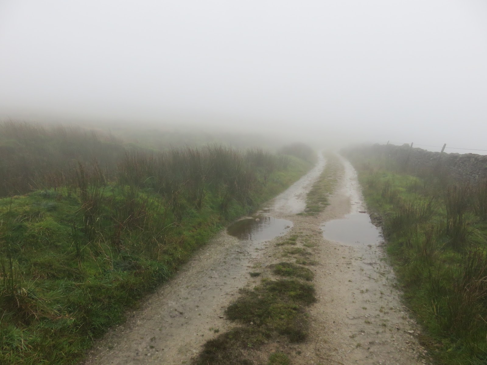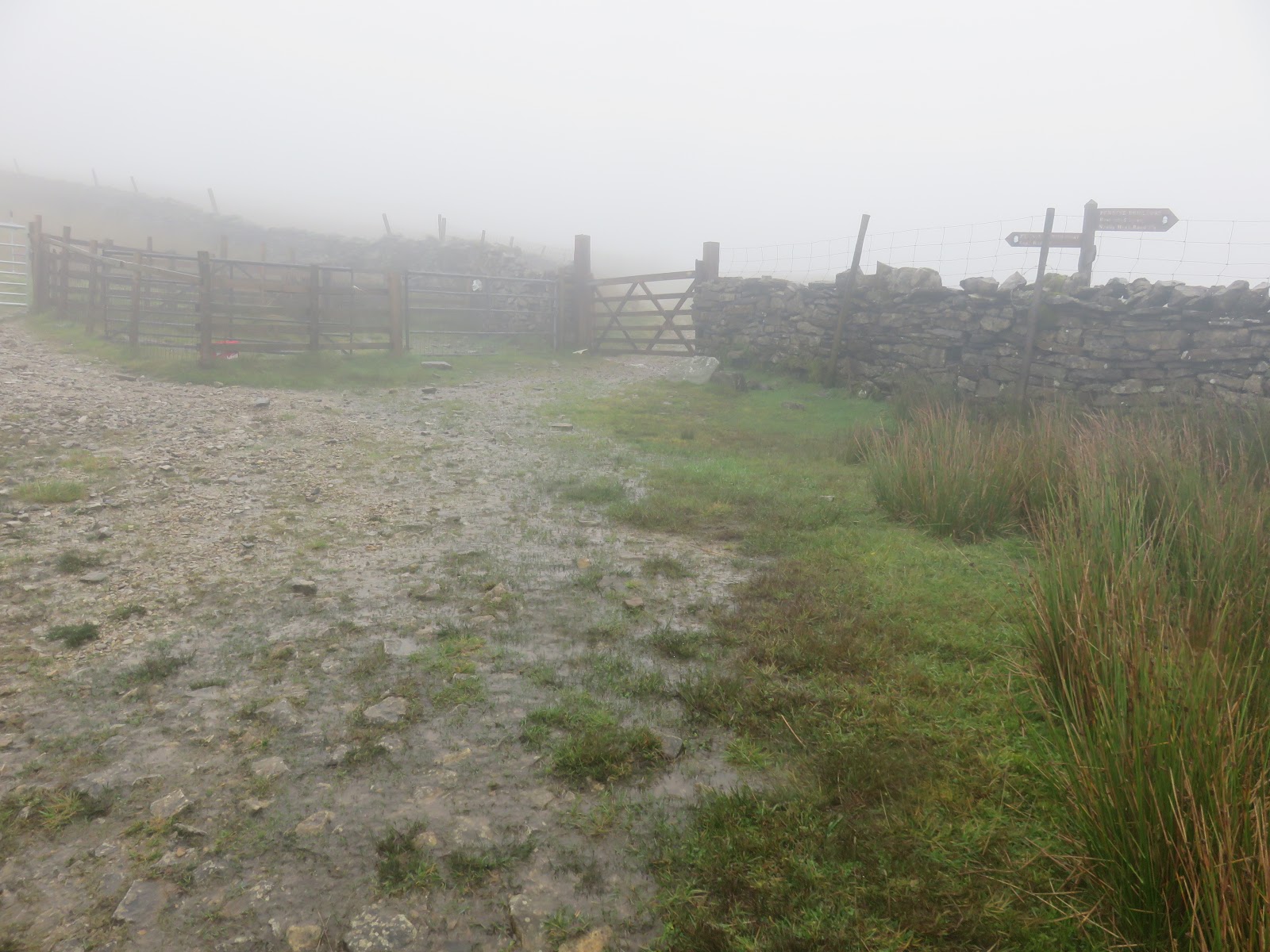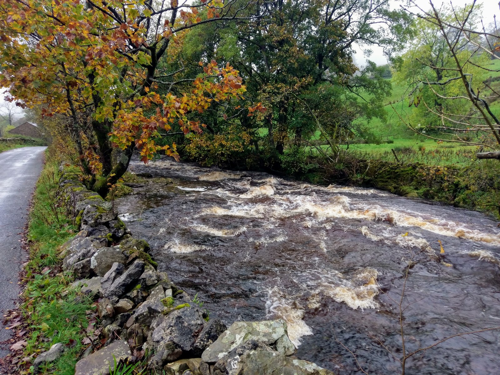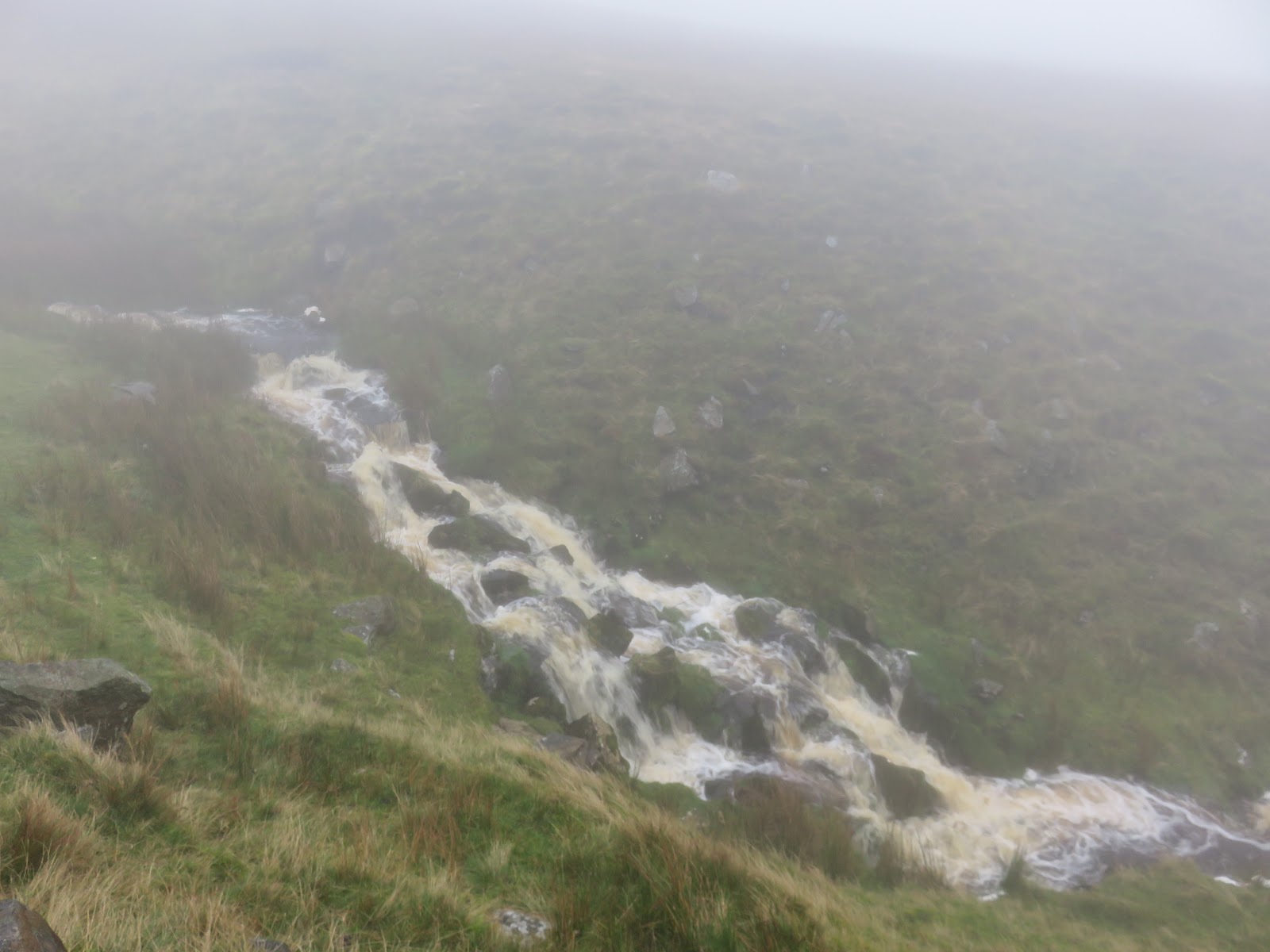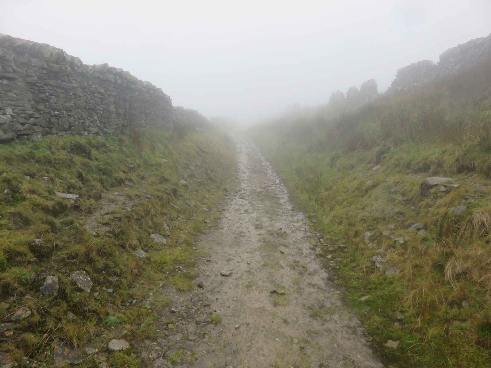 I made my way back towards Dent Station along the road alongside the River Dee, which was full to bursting after a week of heavy rain. A final climb up the Coal Road is required to reach the car park, giving a tantalising view of Dentdale before returning into the mist.