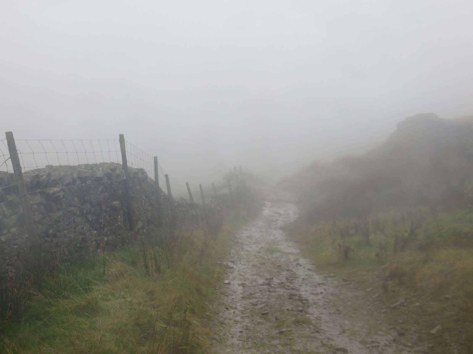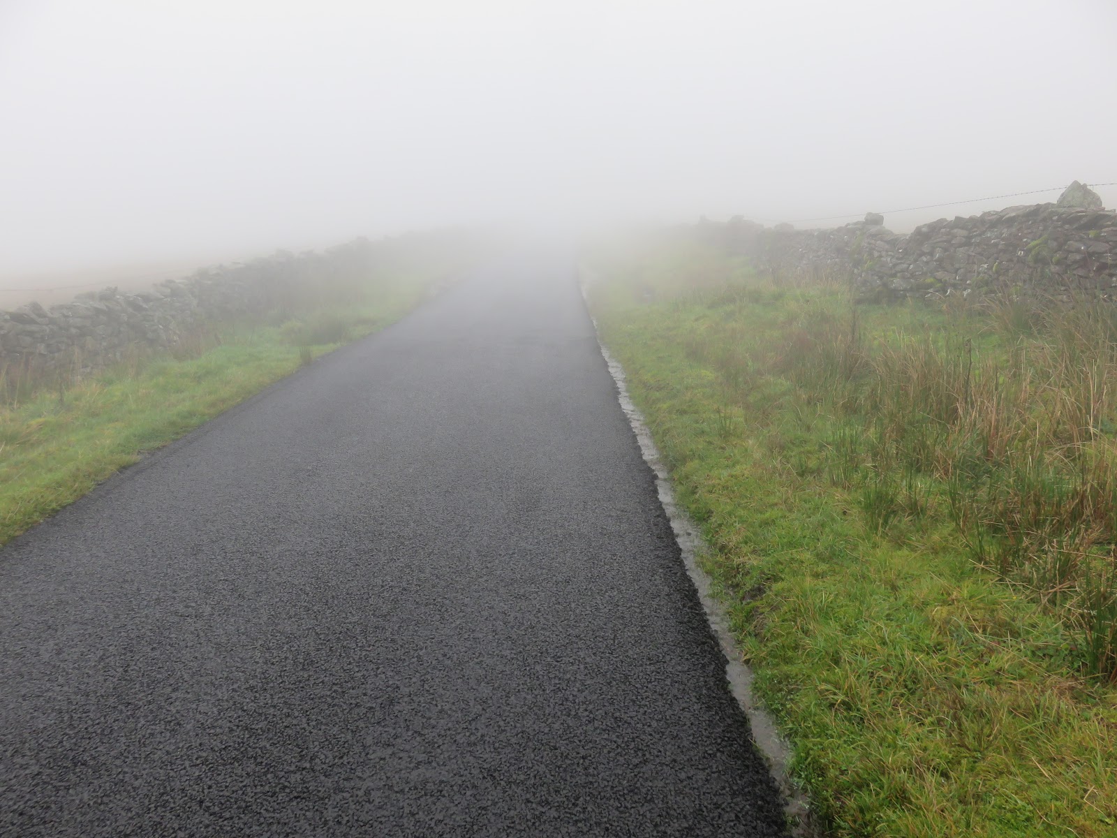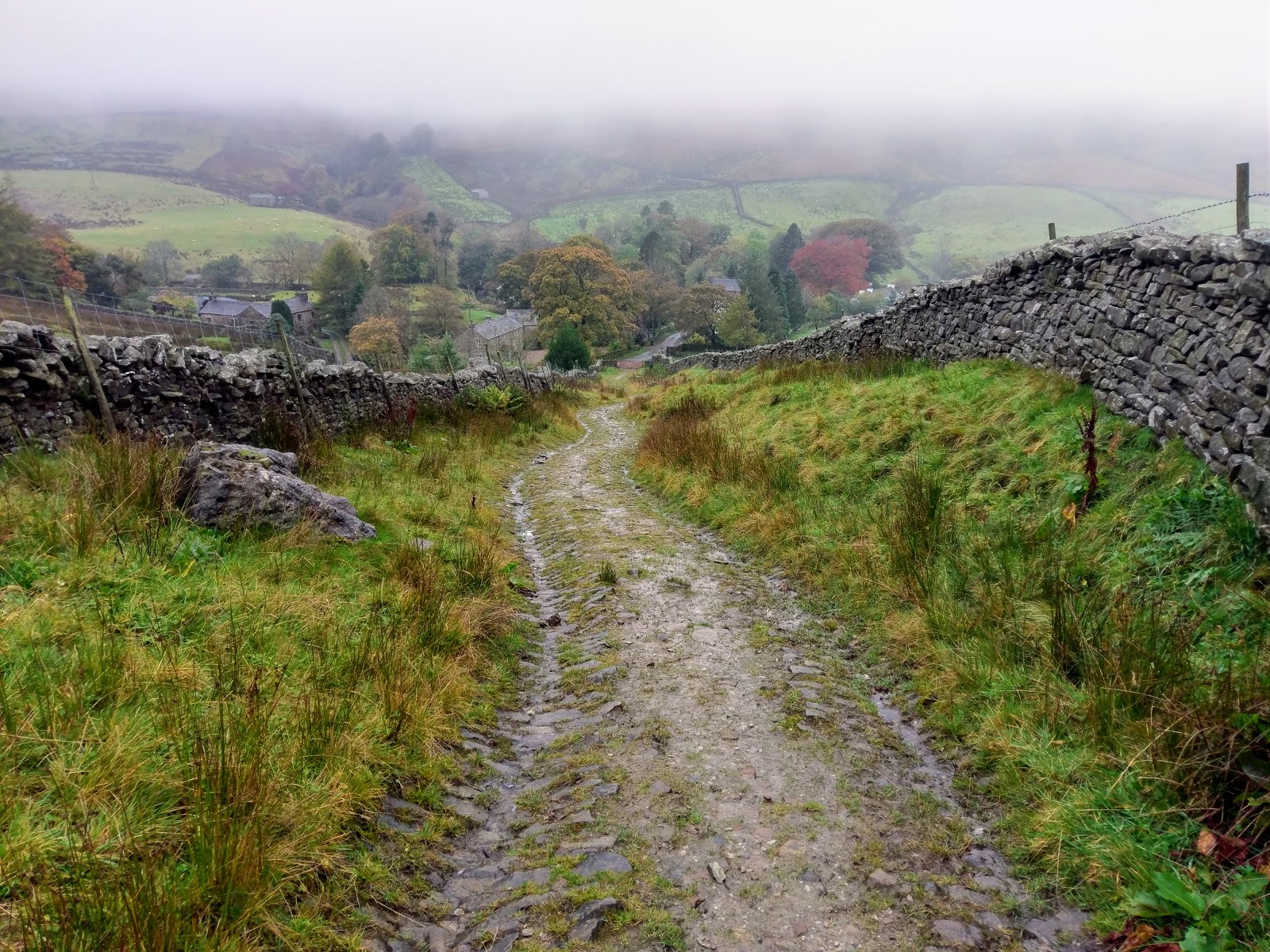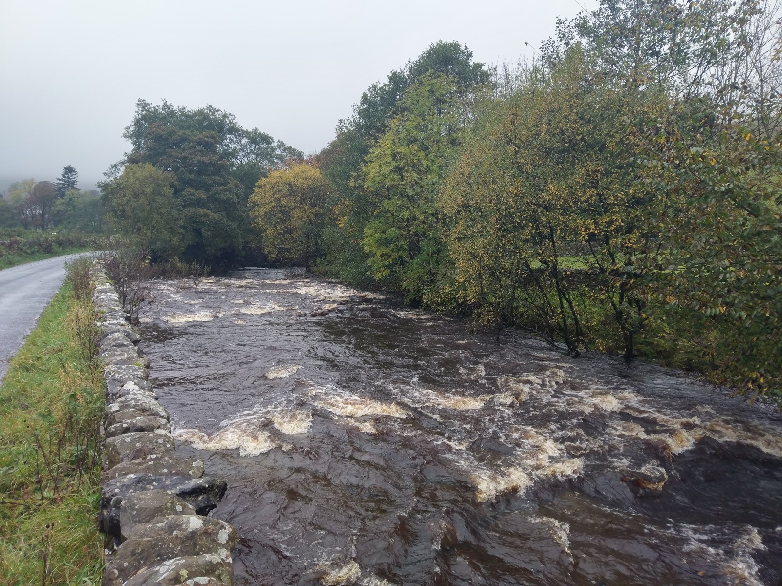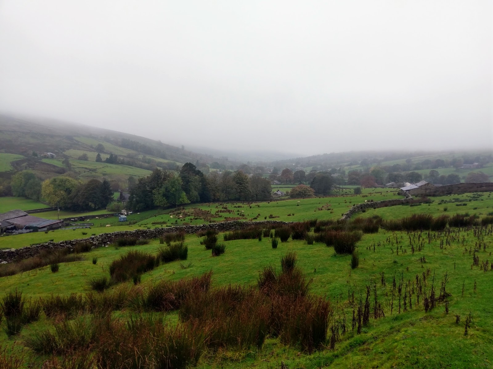 I made my way back towards Dent Station along the road alongside the River Dee, which was full to bursting after a week of heavy rain. A final climb up the Coal Road is required to reach the car park, giving a tantalising view of Dentdale before returning into the mist.