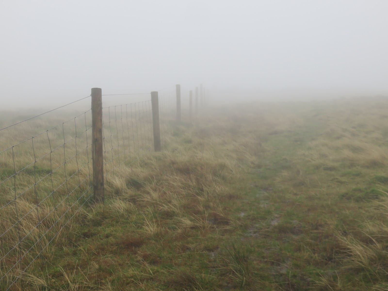 After a short distance, I reached a gate which allows you into the Open Access land beyond. With the fence on my left and the wind and rain on my back, I continued up the hill along Pikes Edge.