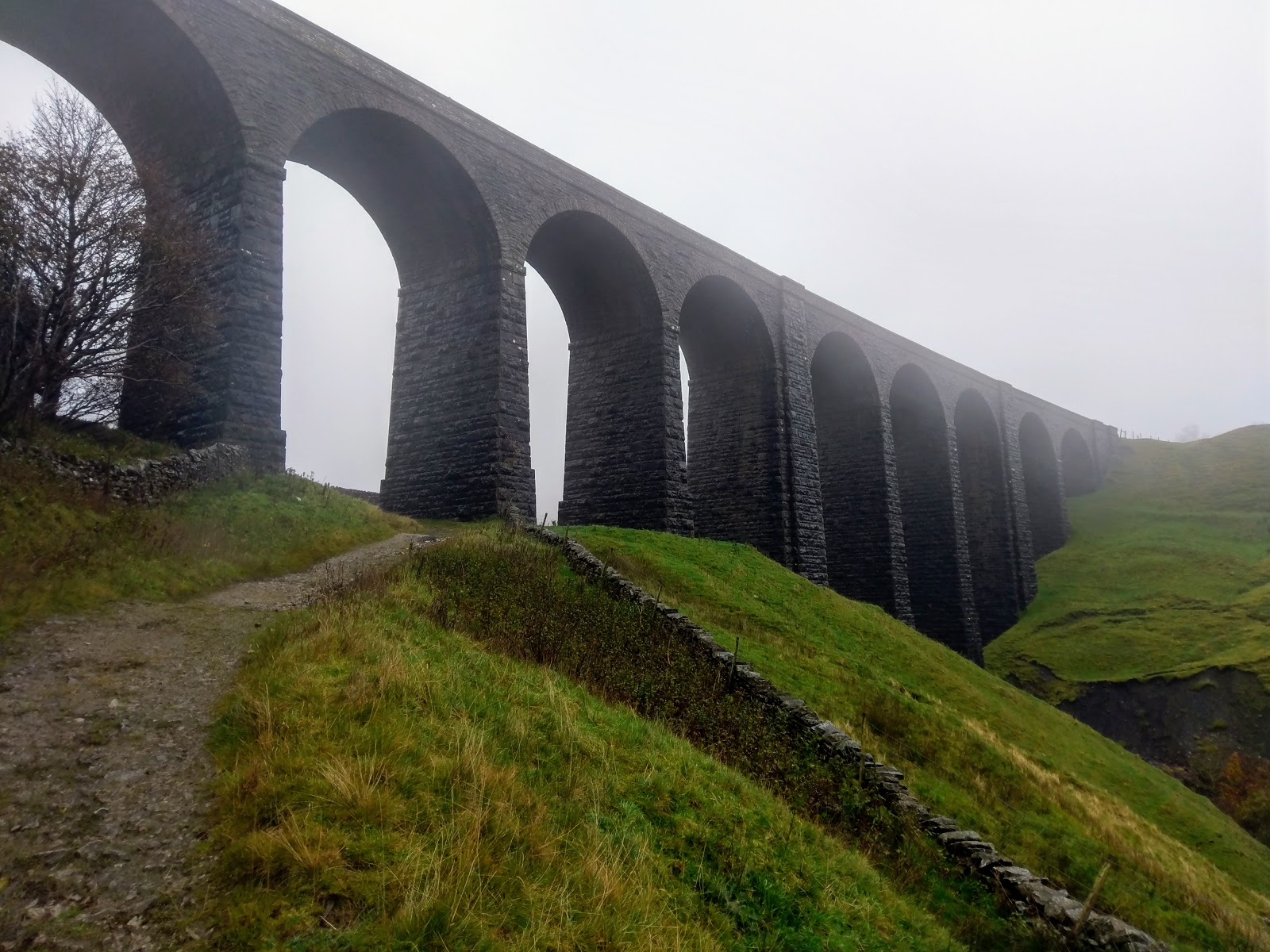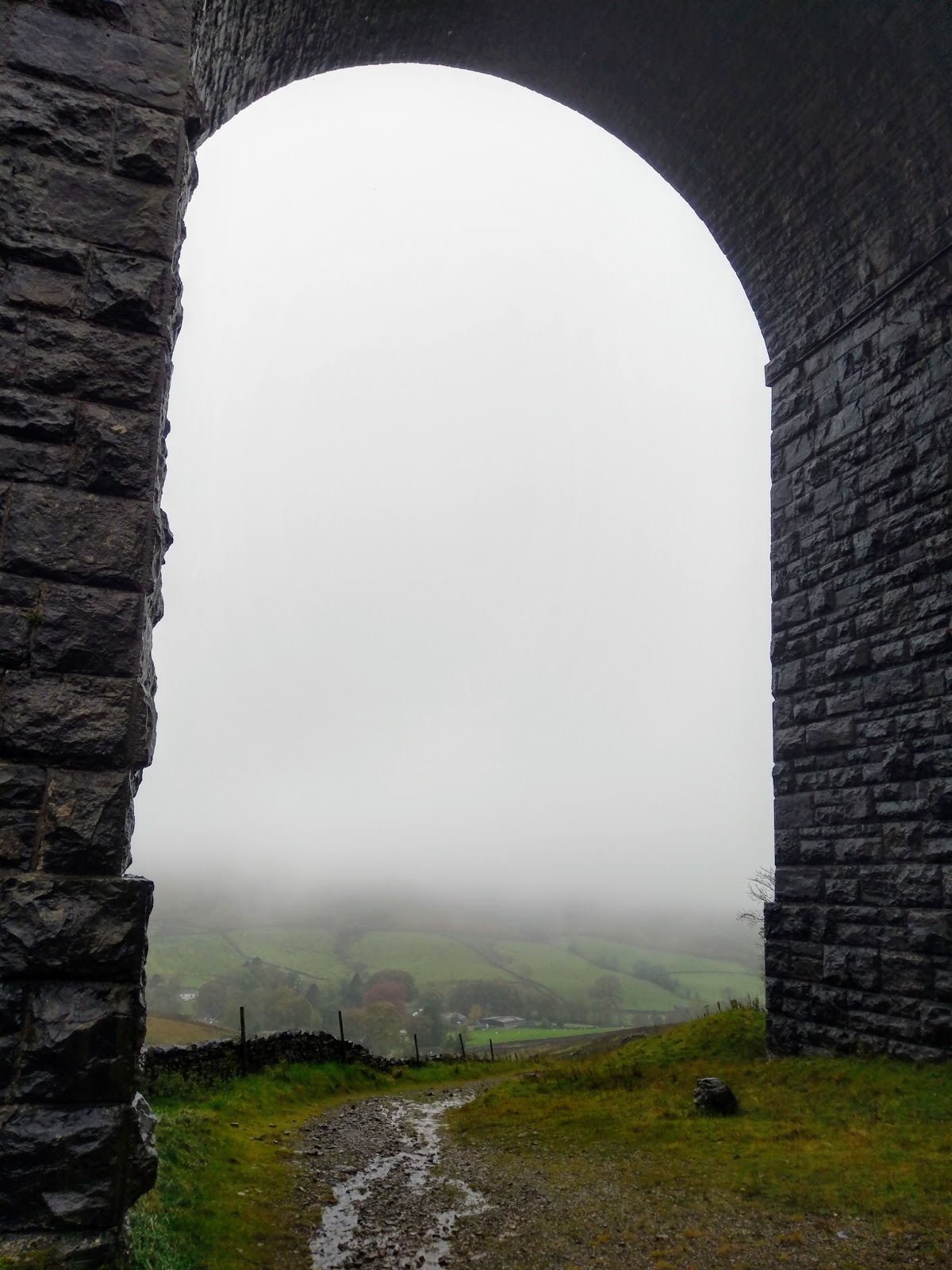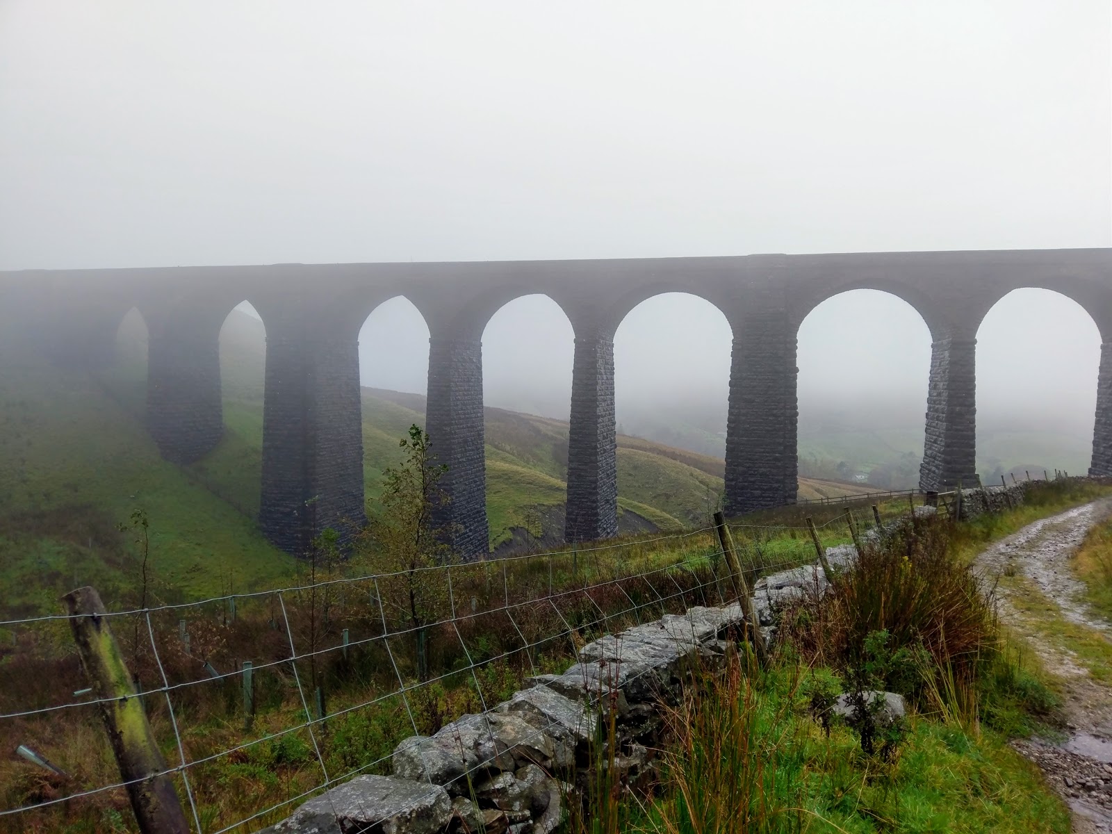 | Arten Gill Viaduct appears through the gloom as my camera starts to suffer. Time to switch the back up….. |
