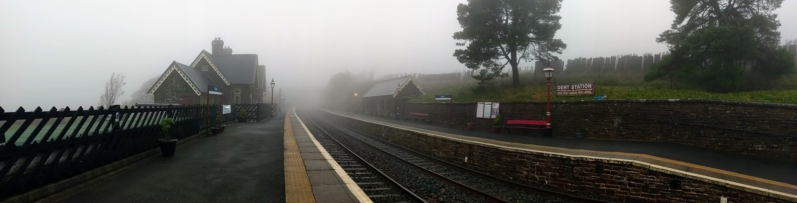 Dent Station is the highest mainline station in England, standing 350m above sea level – hence the gloomy, misty weather. Interestingly, it is nearly 4 miles away from the village of Dent, which is located in the valley below. The closest village is actually Cowgill.
