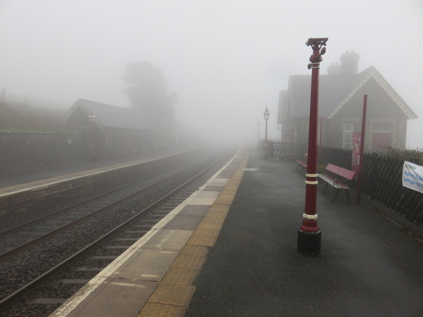 Such was the weather today even the station was shrouded in mist and the windy, drizzly weather didn’t make a particularly appetising prospect as I climbed out of a warm car. Still, after the excesses of a week in the States, a brisk walk was a must.