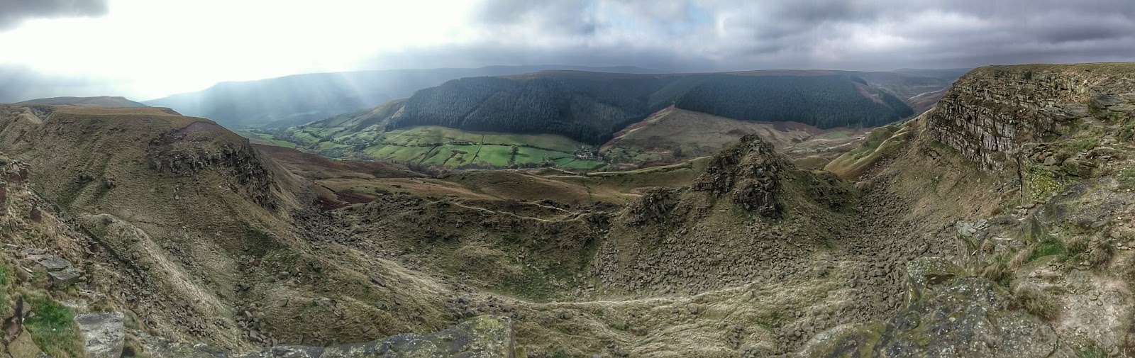 | Looking along the Woodlands Valley – Kinder Scout is to the left |