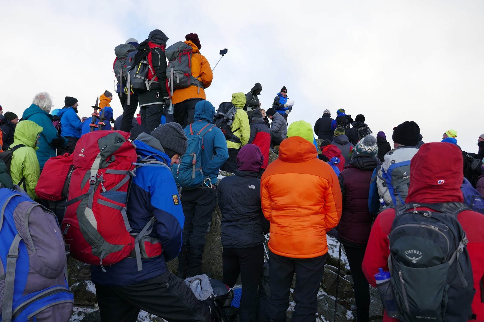 Hundreds of walkers were converging on the summit from all the main routes of ascent, arriving in time to hear a reading from the FRCC’s President and observe an impeccable 2-minute silence as several hundred people reflected on the sacrifices made by those who have fought for our country. It’s a moving tribute.