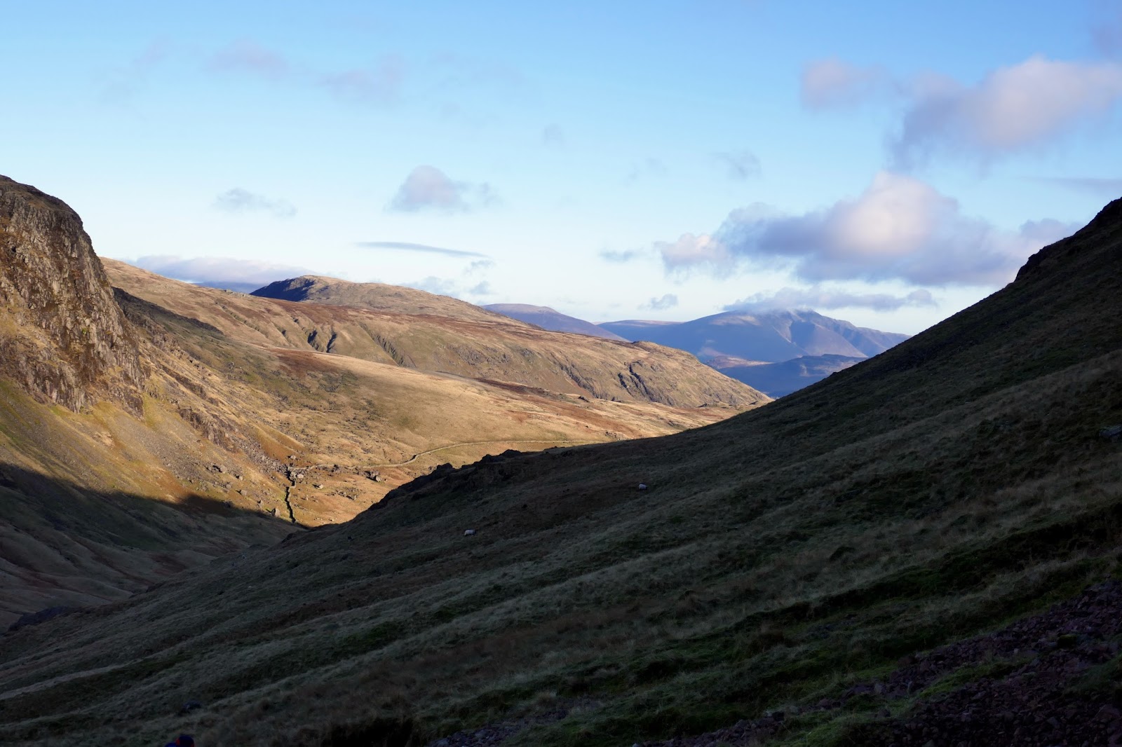 The path skims the southern edge of Gillercomb before climbing up to Blackmor Pols which separates Base Brown from the higher fells above. To counter the bright sun, a cold wind was blowing and the slight dusting of snow was giving a real flavour of winter. Fingers crossed we actually get a decent covering this year.