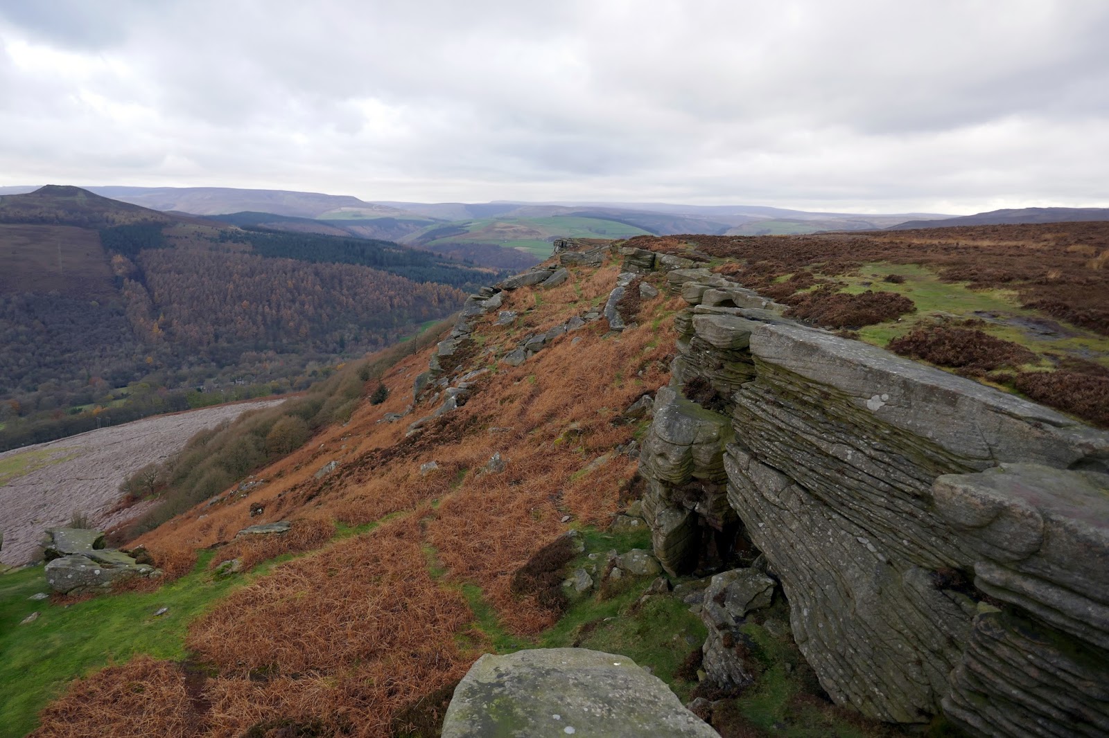Bamford Edge is the sibling of Stanage Edge, standing parallel to but at a lower elevation than its illustrious neighbour. This, however, should not be a reason to discard this lesser-walked edge, as it has its own merits as we were to find out on a cloudy November day.