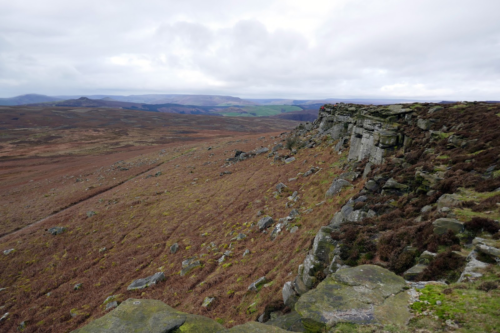 Walking the edge is a delight and we managed to include the high point at High Neb. The walking is also very easy and largely flat with a few undulations on the way. Views across are impressive though views along the length of the edge are perhaps even better.