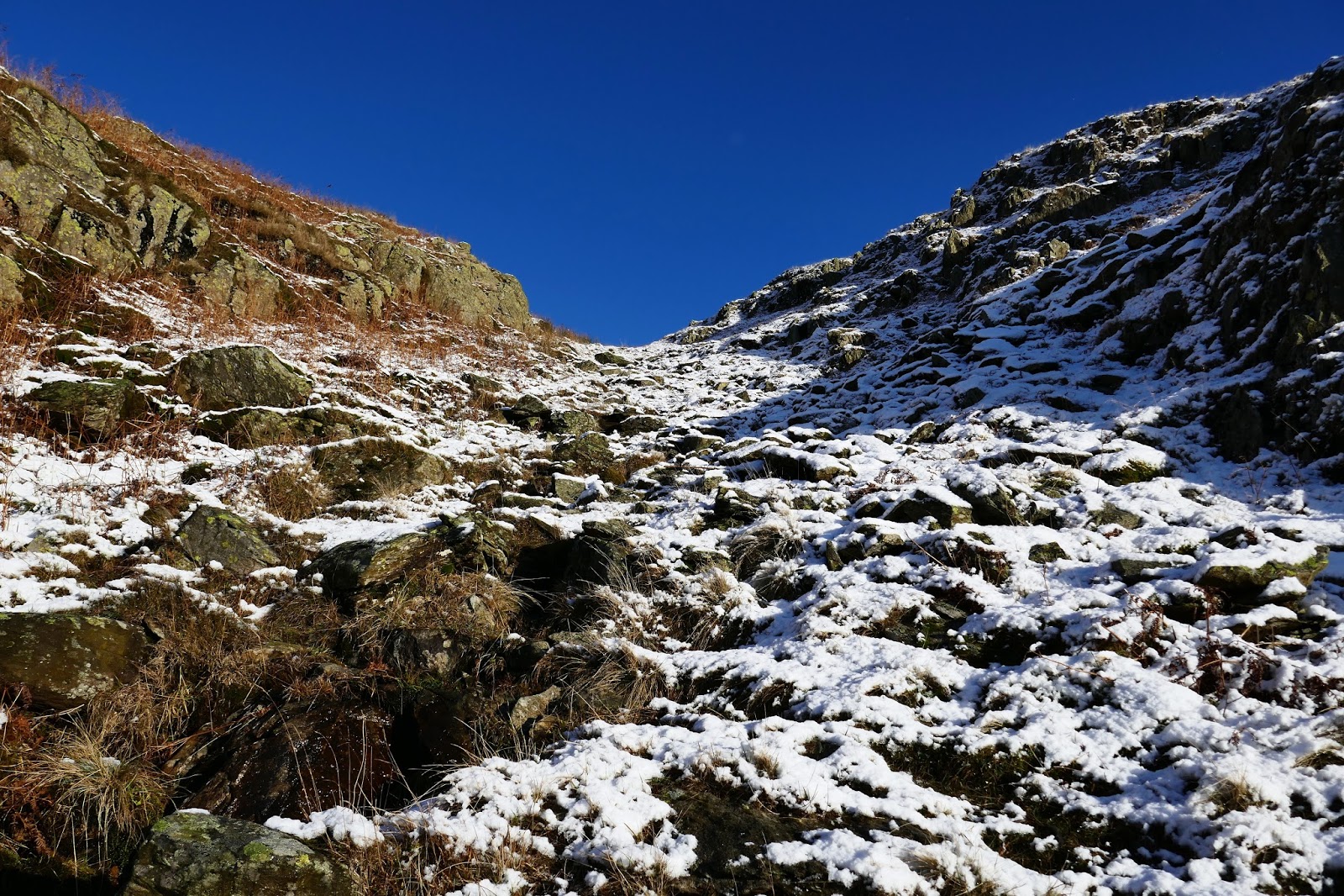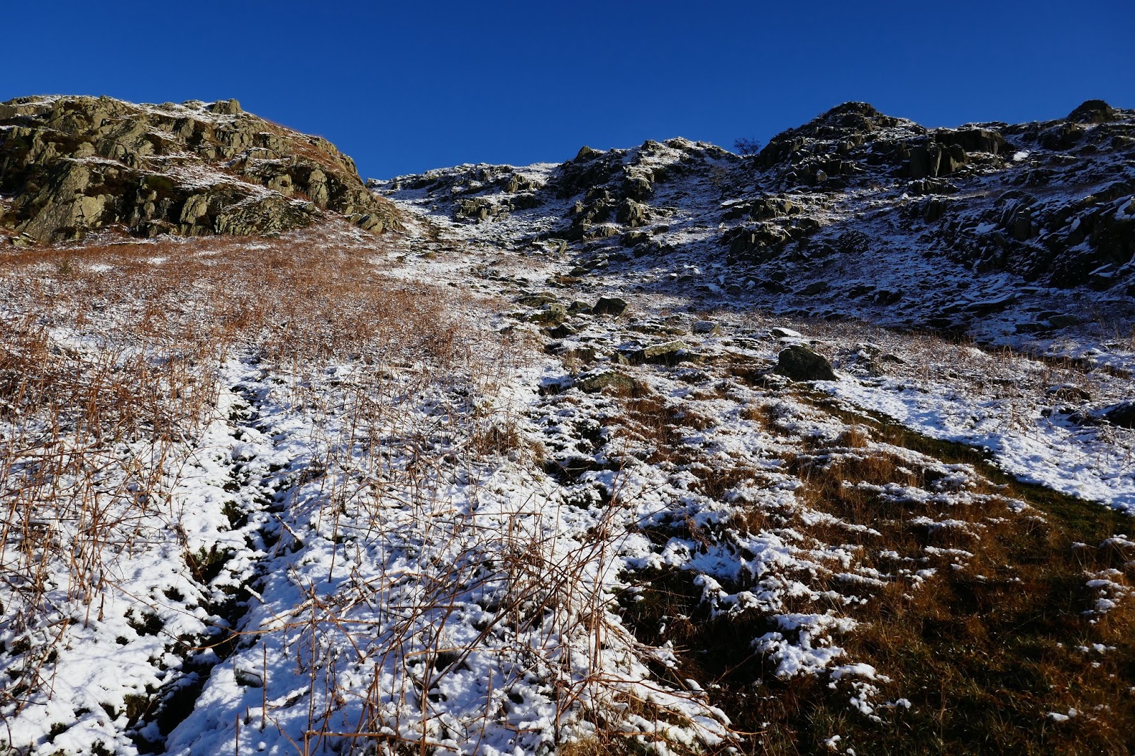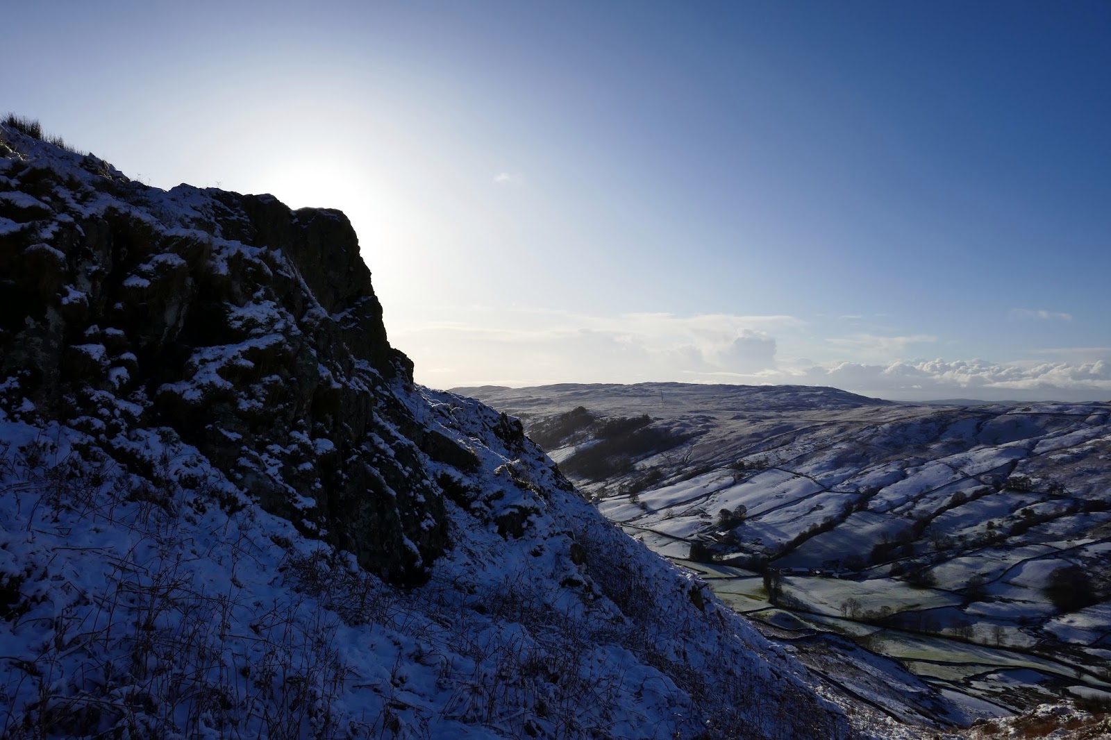 Winter has definitely arrived in the Lake District, temporarily at least. I arrived in Longsleddale to a perfect dusting of the white stuff, right down into the valley, backed up by perfect blue skies. It was cold as well, forecasts were suggesting a wind chill of around -10C.