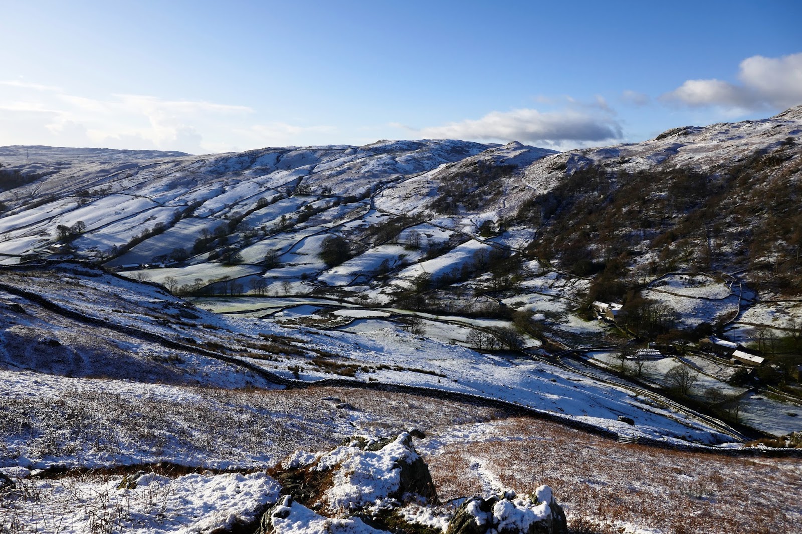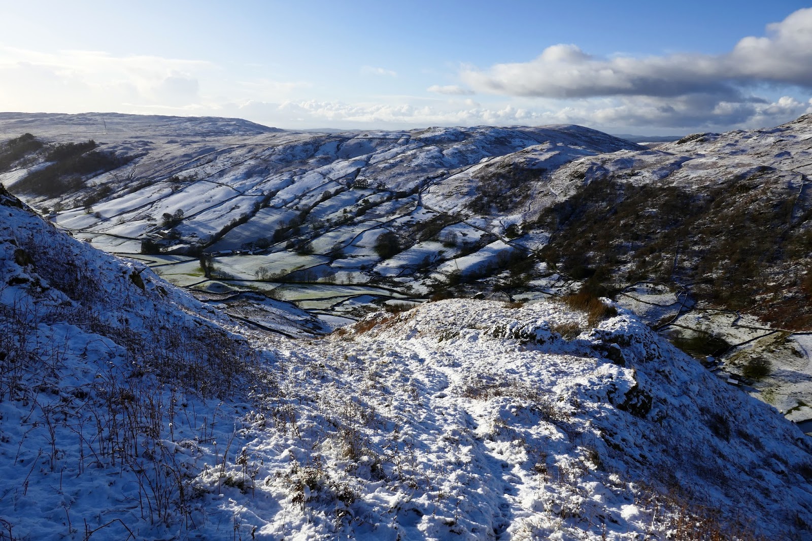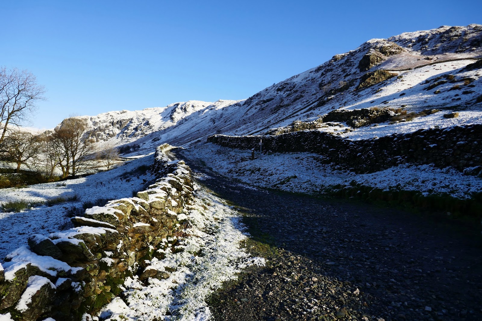 There is a reasonable amount of parking available at the end of the lane at Sadgill and, despite being around 9am, I was the first to arrive having forged a route down the icy roads. As I mentioned, the weather was spectacular in the morning, though the threat of clouds and snow showers would be ever present as the day wore on.
