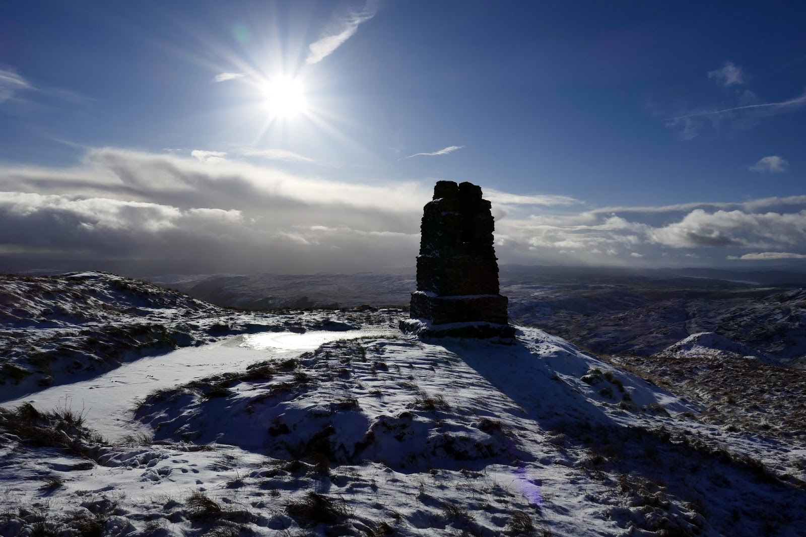 | The survey pillar catching the sun |