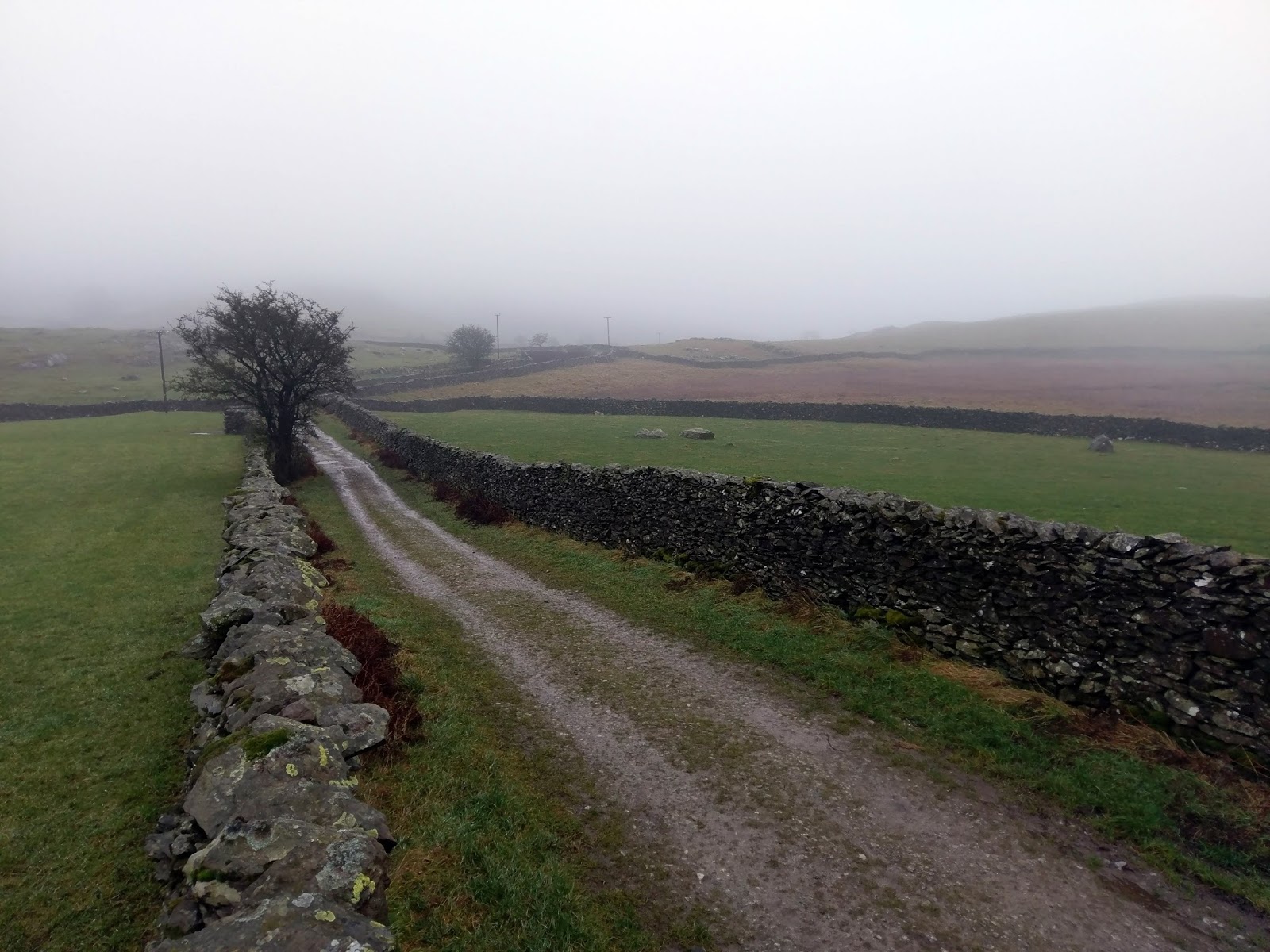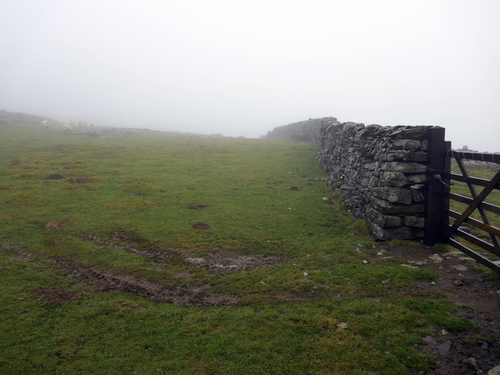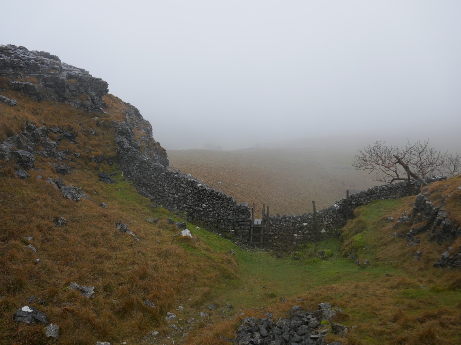 With the most and cloud swirling low, the broad bridleway path of the Pennine Journey was welcomed and it is easily followed to Sulber Gate which is, perhaps unsurprisingly, a simple wooden gate in the drystone wall. Sulber Gate stands above Thieves Moss, into which I descended as I made my way towards the limestone wonderland of Moughton.