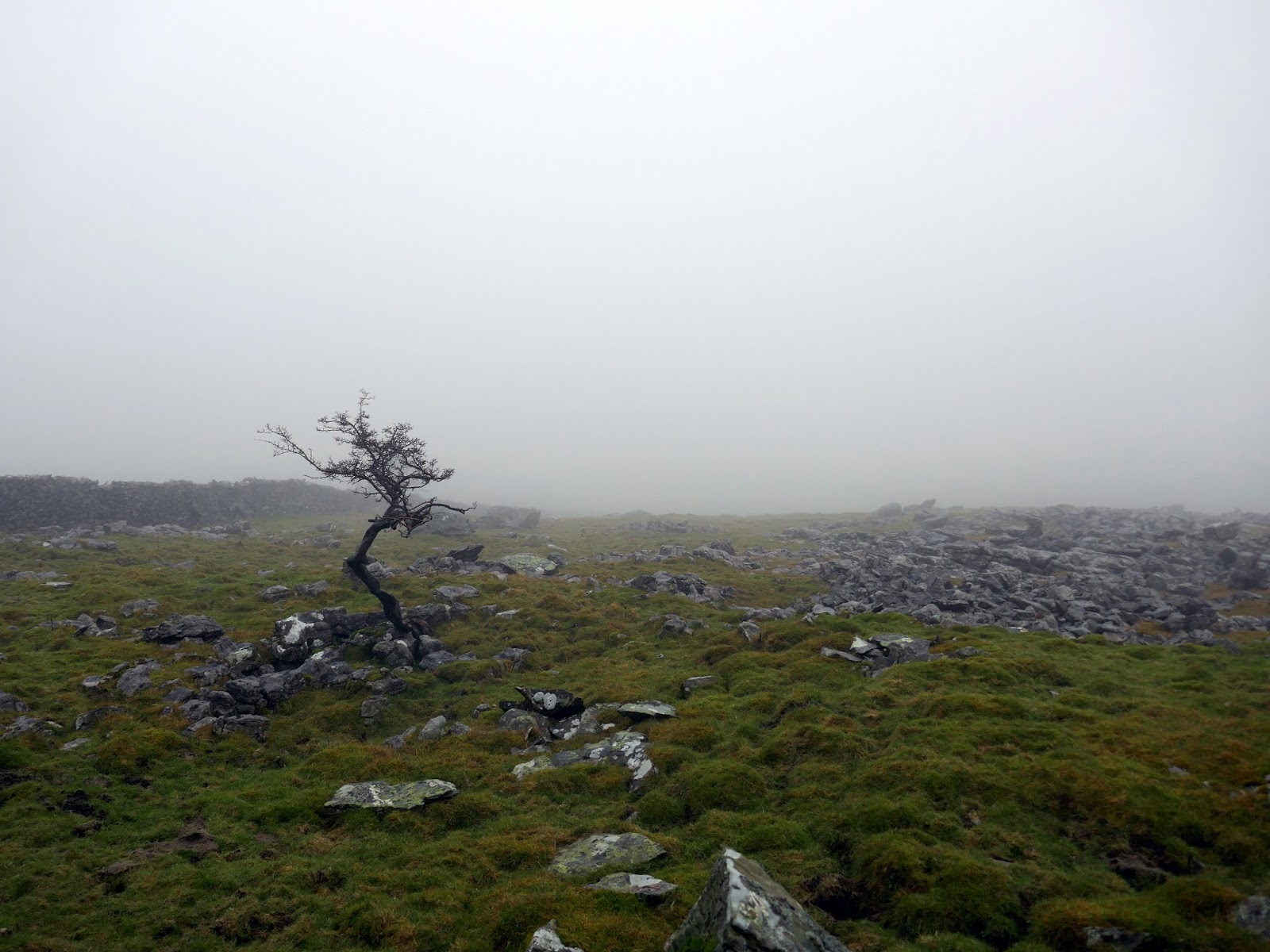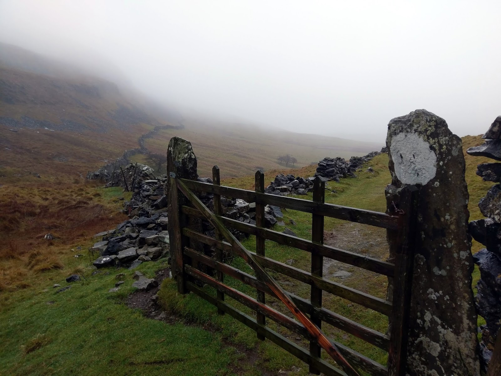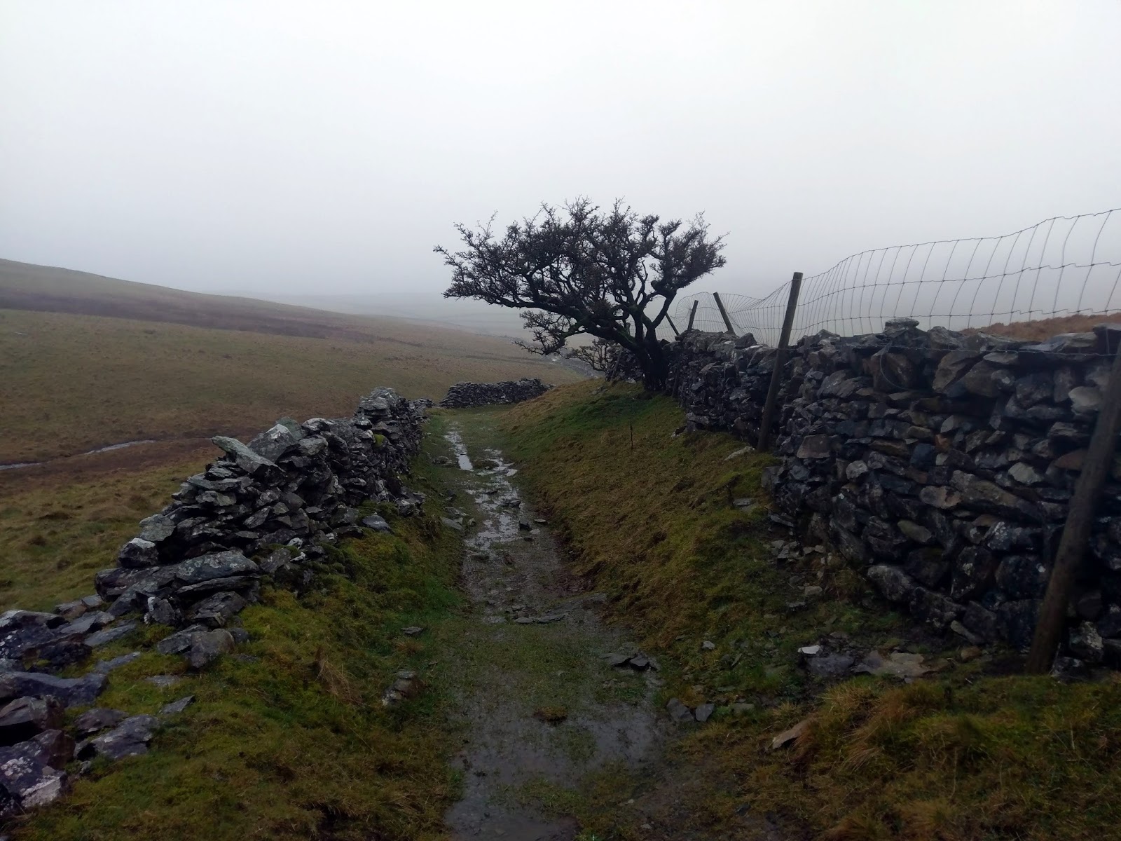 With the most and cloud swirling low, the broad bridleway path of the Pennine Journey was welcomed and it is easily followed to Sulber Gate which is, perhaps unsurprisingly, a simple wooden gate in the drystone wall. Sulber Gate stands above Thieves Moss, into which I descended as I made my way towards the limestone wonderland of Moughton.
