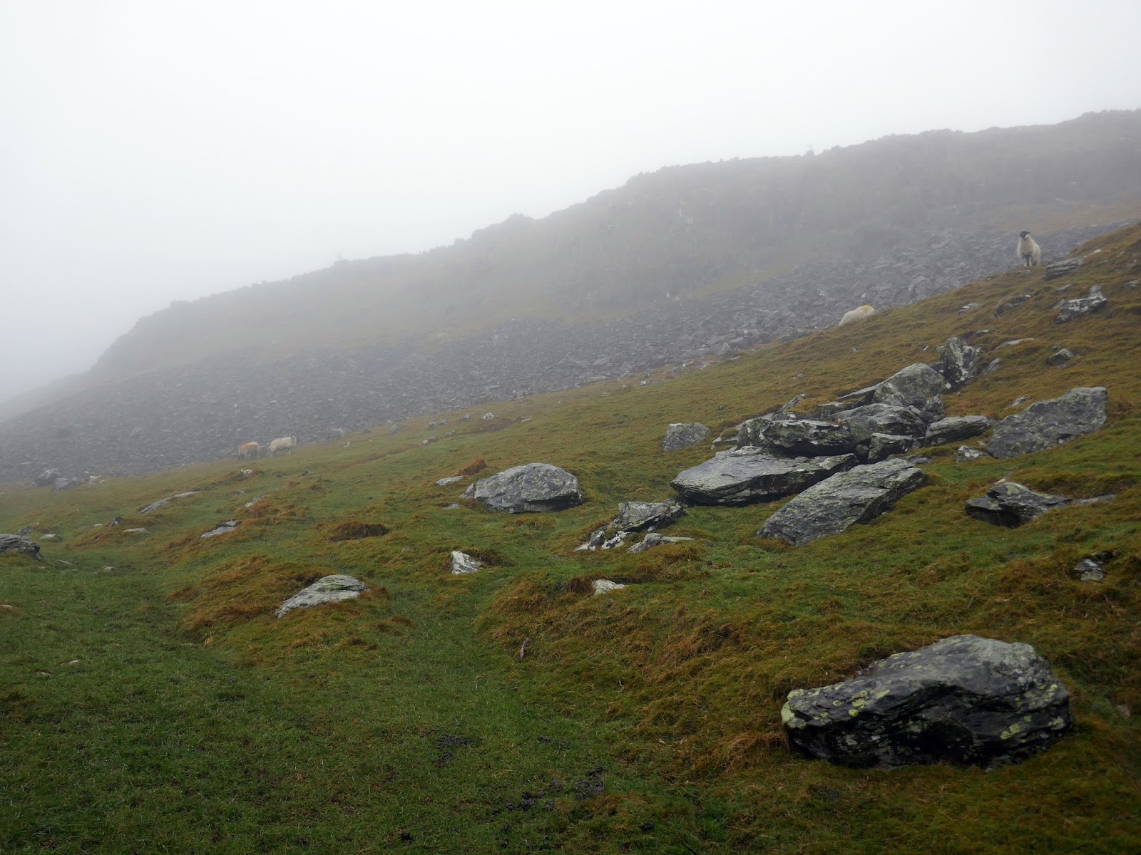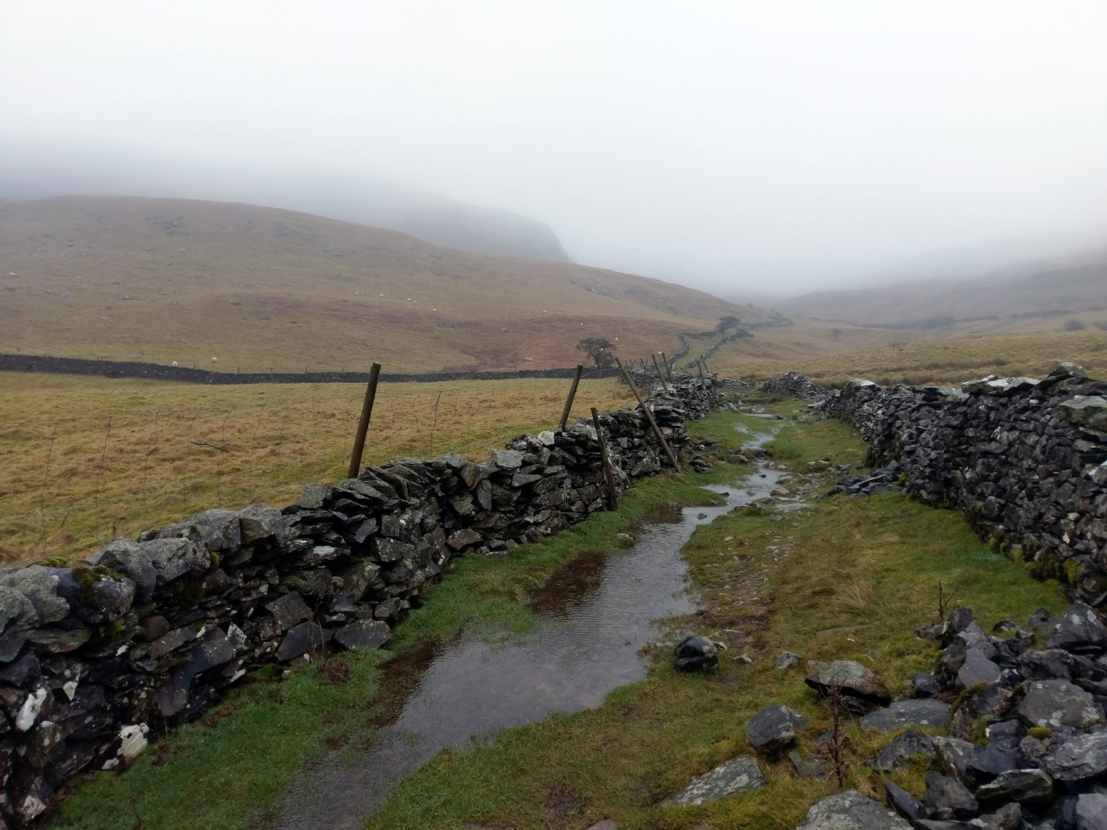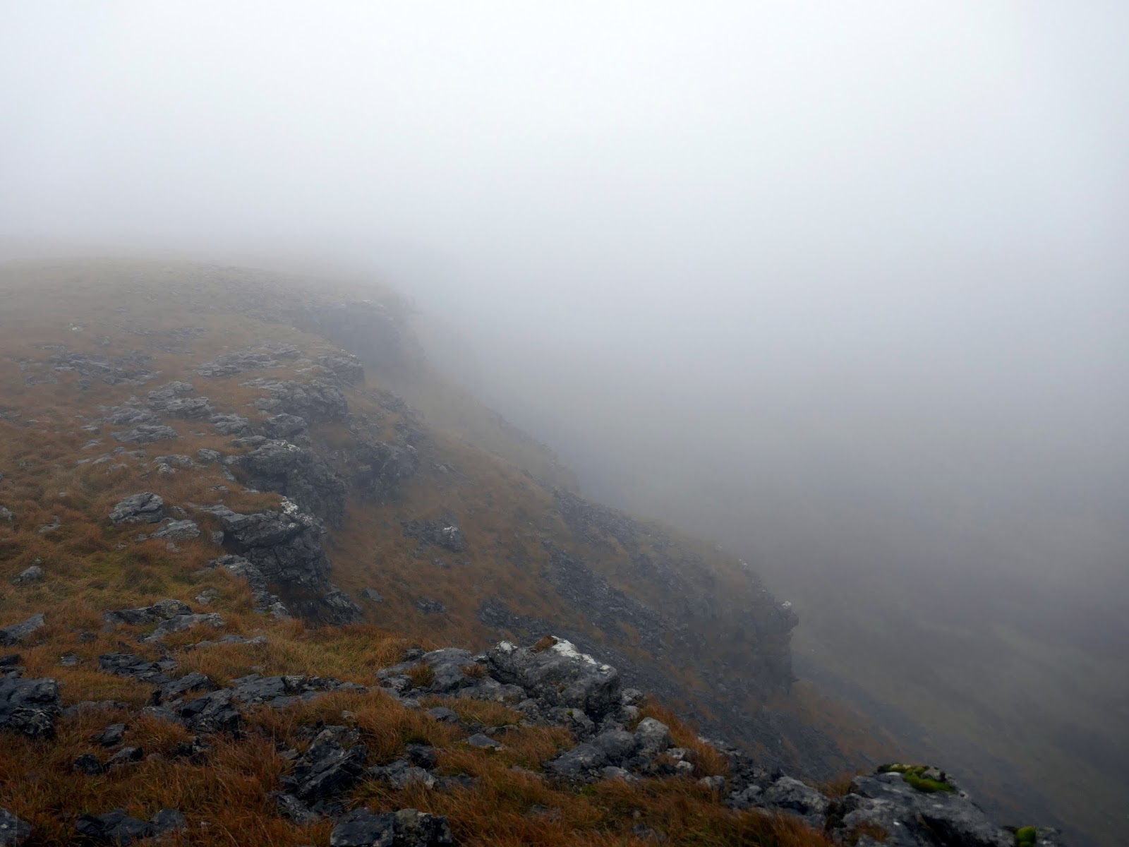 After a while, the path reaches a breach in the ramparts of Moughton Scars at Capple Bank and offers an easy way down into Crummack Dale. It’s possible to extend the walk up to the trig point further south but, with zero visibility and the ever-increasing sensation of wet feet, I decided that I’d begin my return to Austwick.