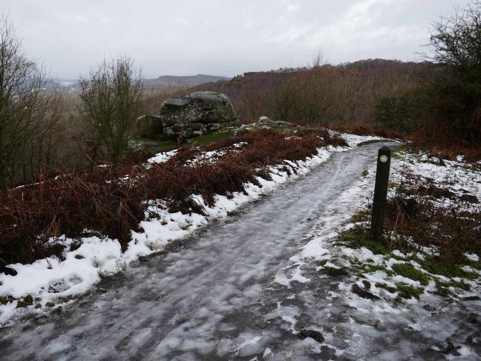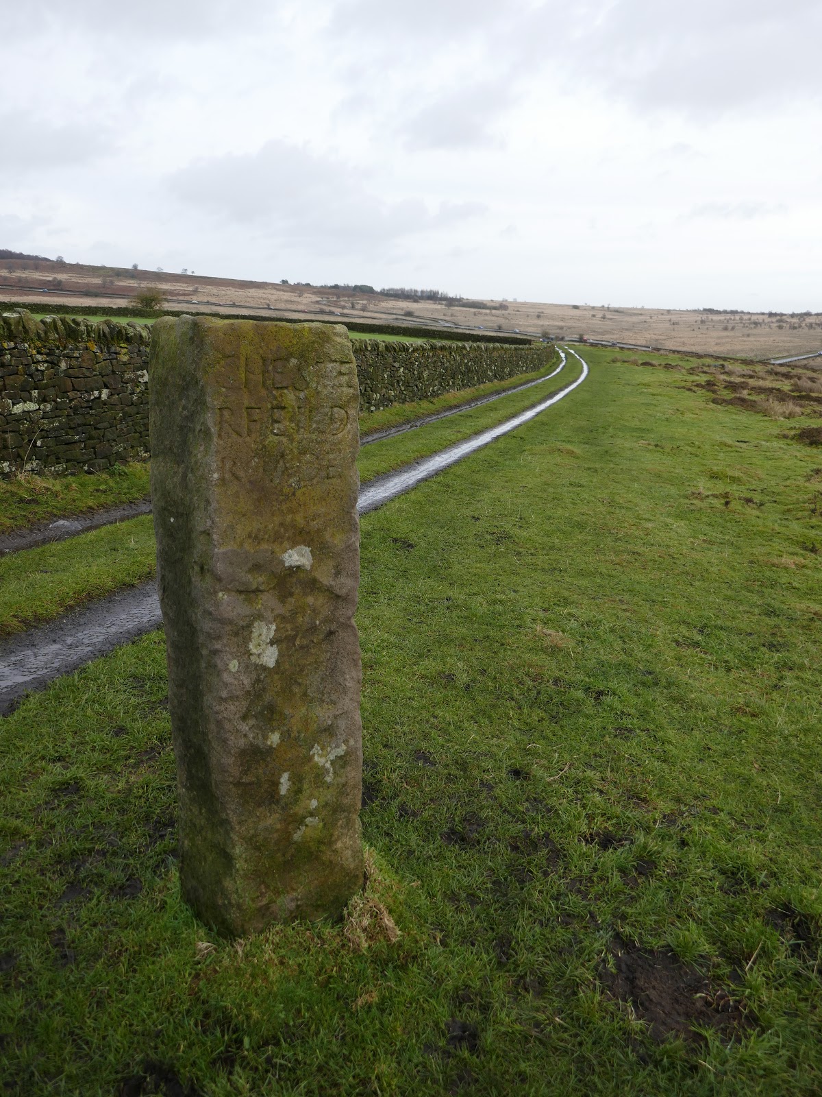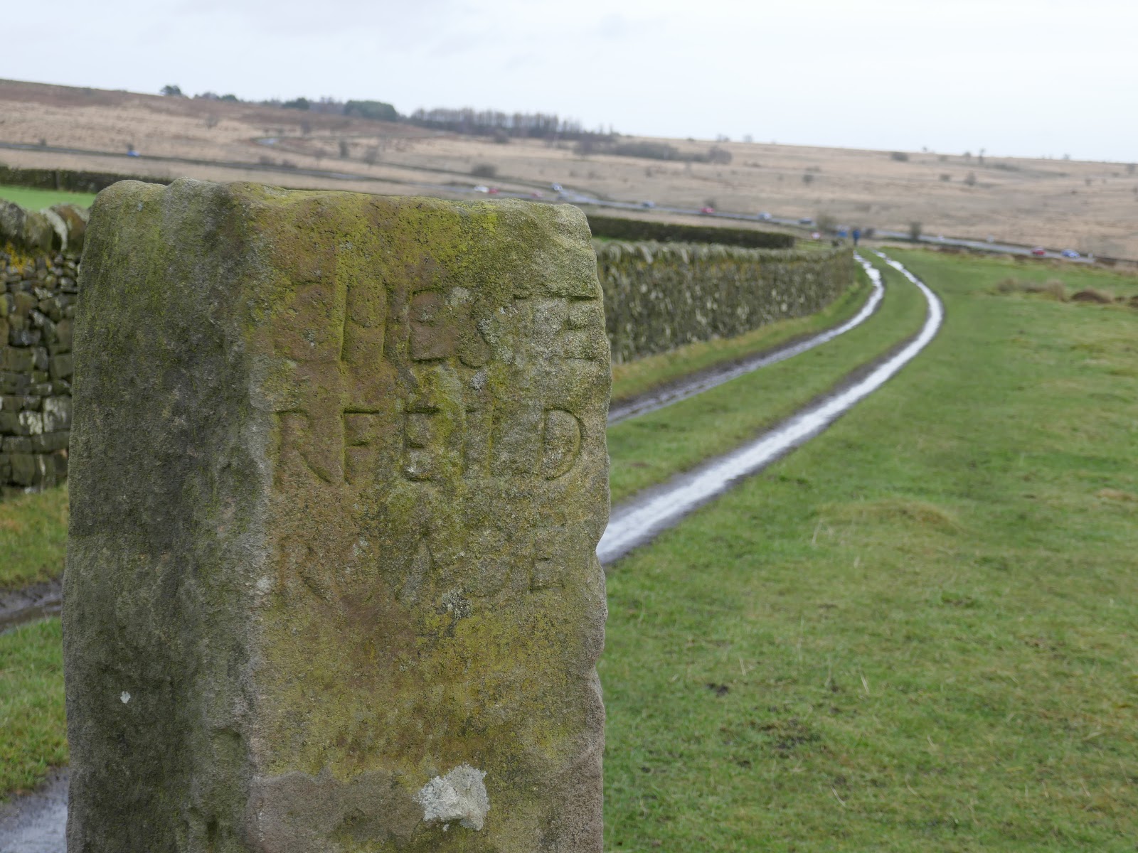 | An old milepost stands on the route |