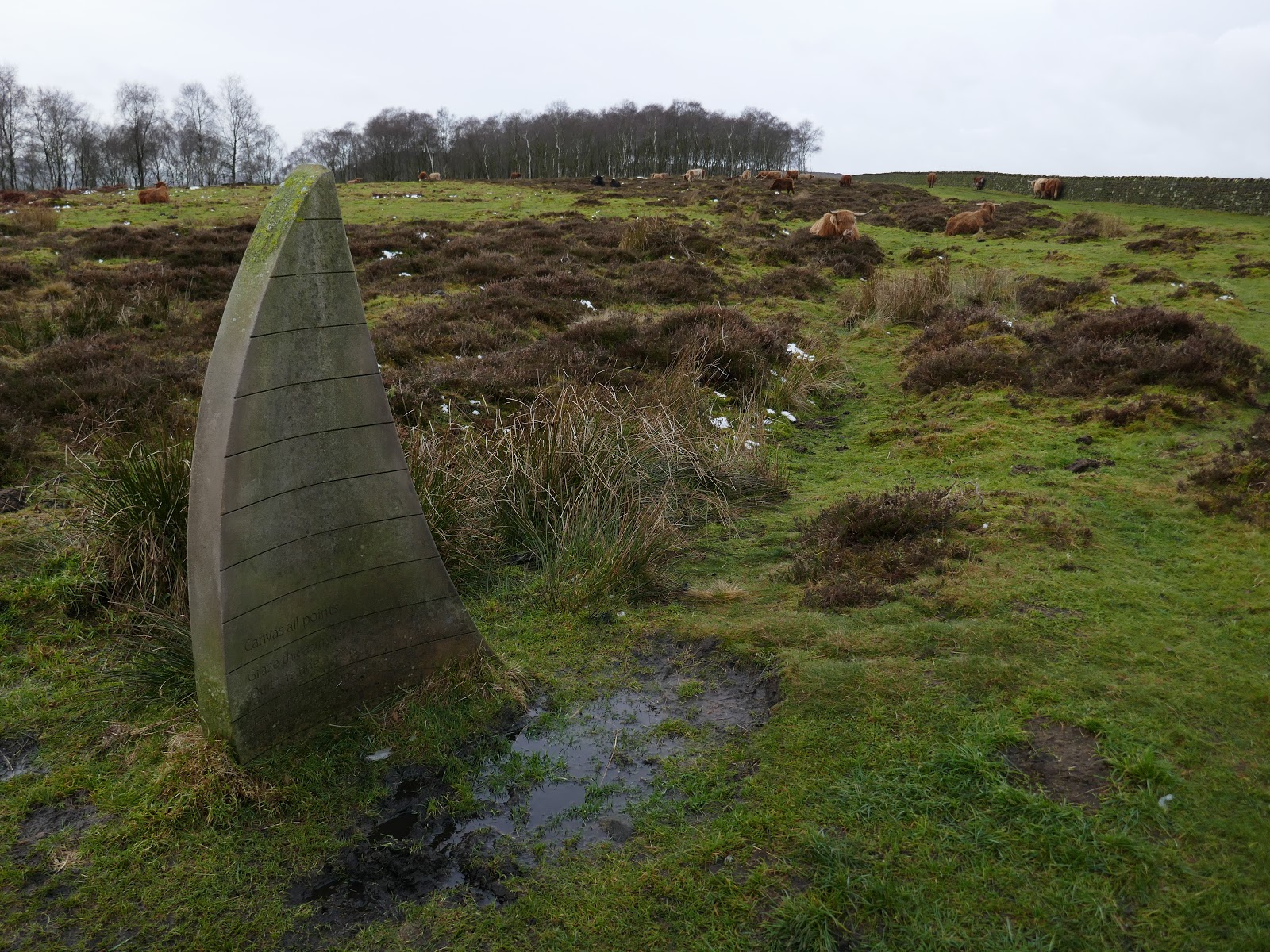 Though not marked, a path does lead to the road at Bar Brook, allowing access to the bridleway above Sheffield Road. This bridleway, with a liberal sprinkling of Highland Cows, leads to Wellington’s Monument.