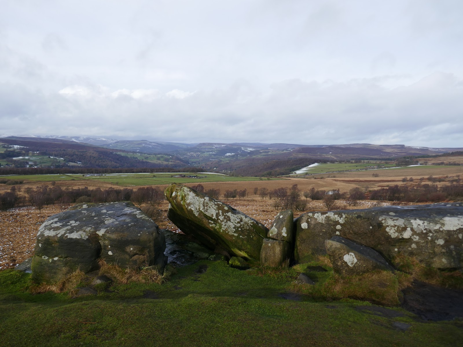 I clambered up onto White Edge, thankful that no one had been watching my off-piste escapades (at least I hope so) and continued on my way. White Edge spans the western side of Big Moor, above the more dramatic Curbar and Froggatt Edges below. While it lacks the sheer cliffs of a traditional Peak District edge, it does have a trig pillar which has to be visited.