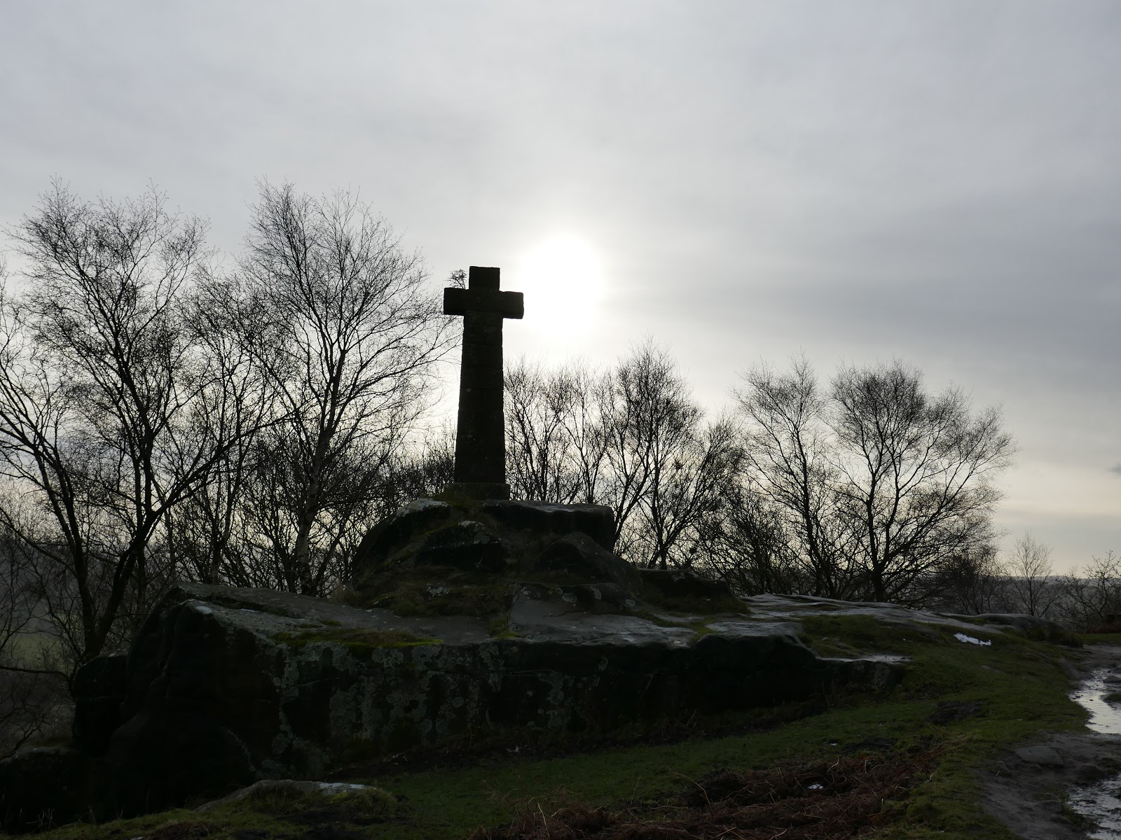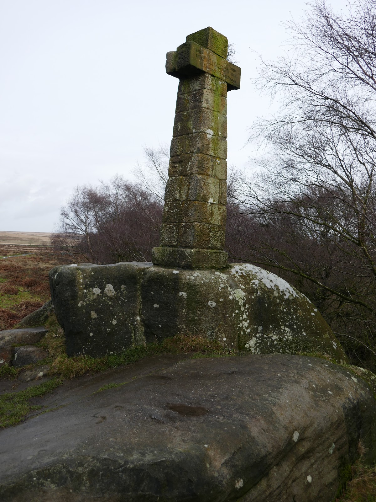The monument is formed of a cross on a square gritstone pedestal founded on a natural rock outcrop, inscribed on the arms of the cross. It as a war memorial commemorating the life of Arthur Wellesley, 1st Duke of Wellington (of Waterloo fame).
