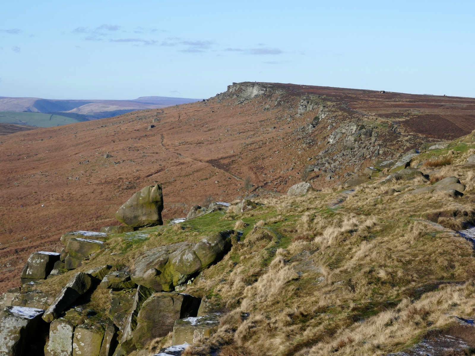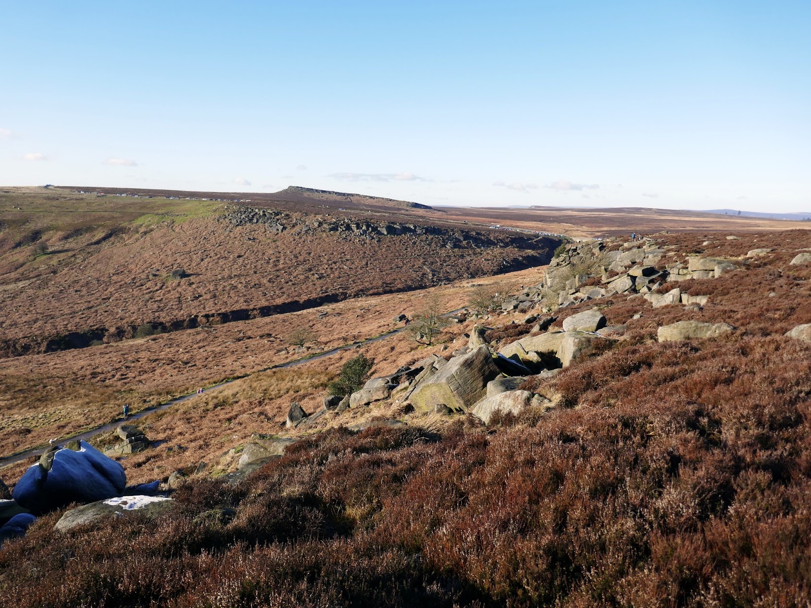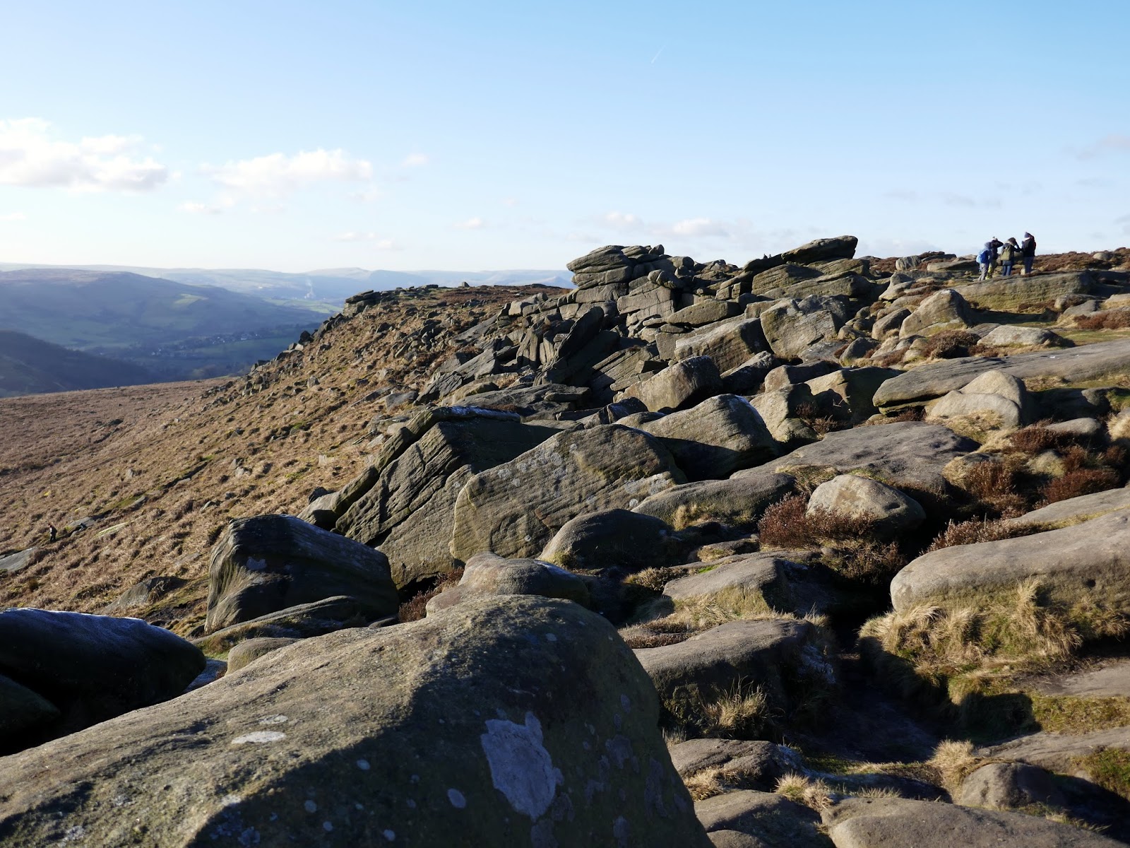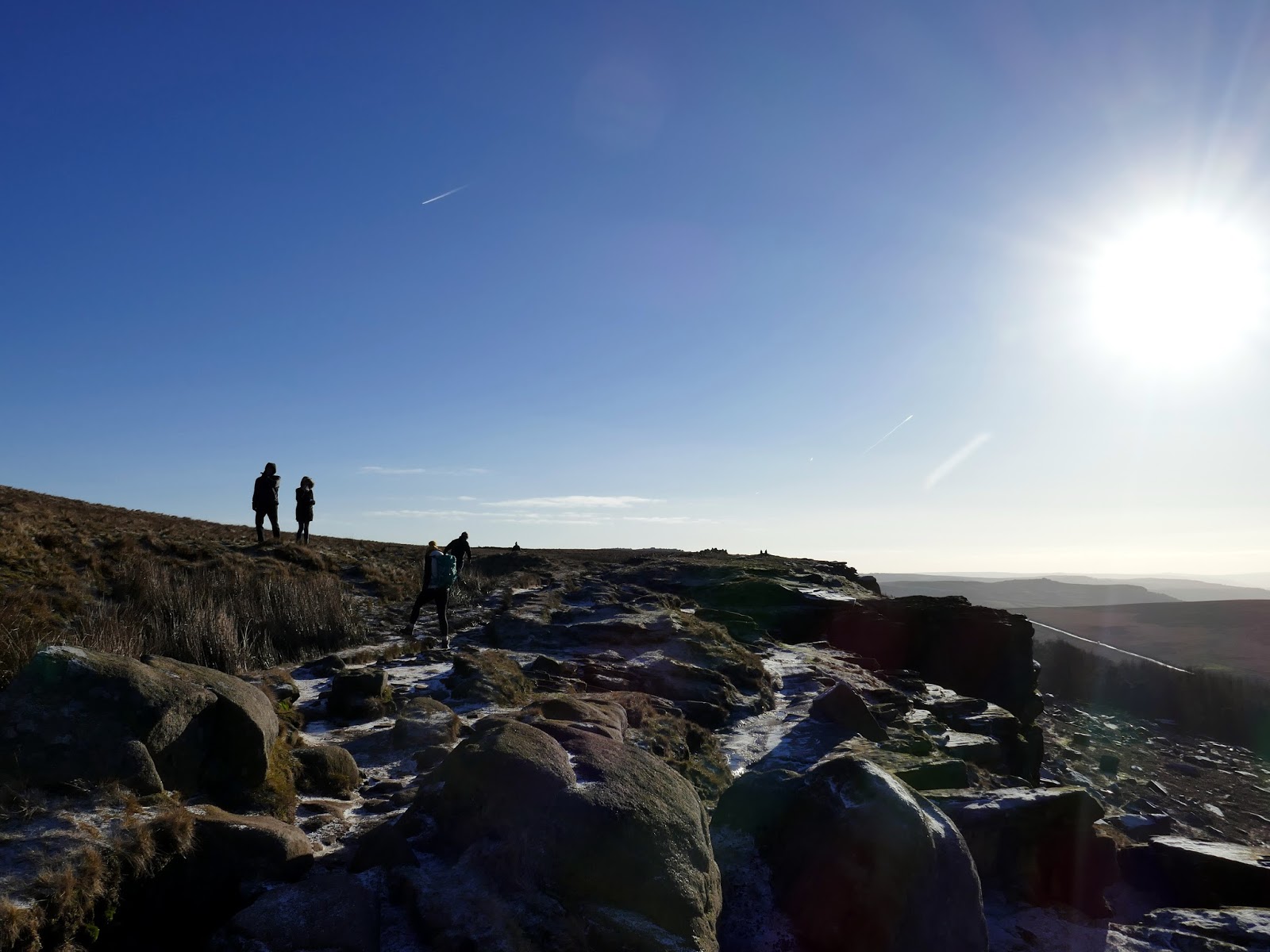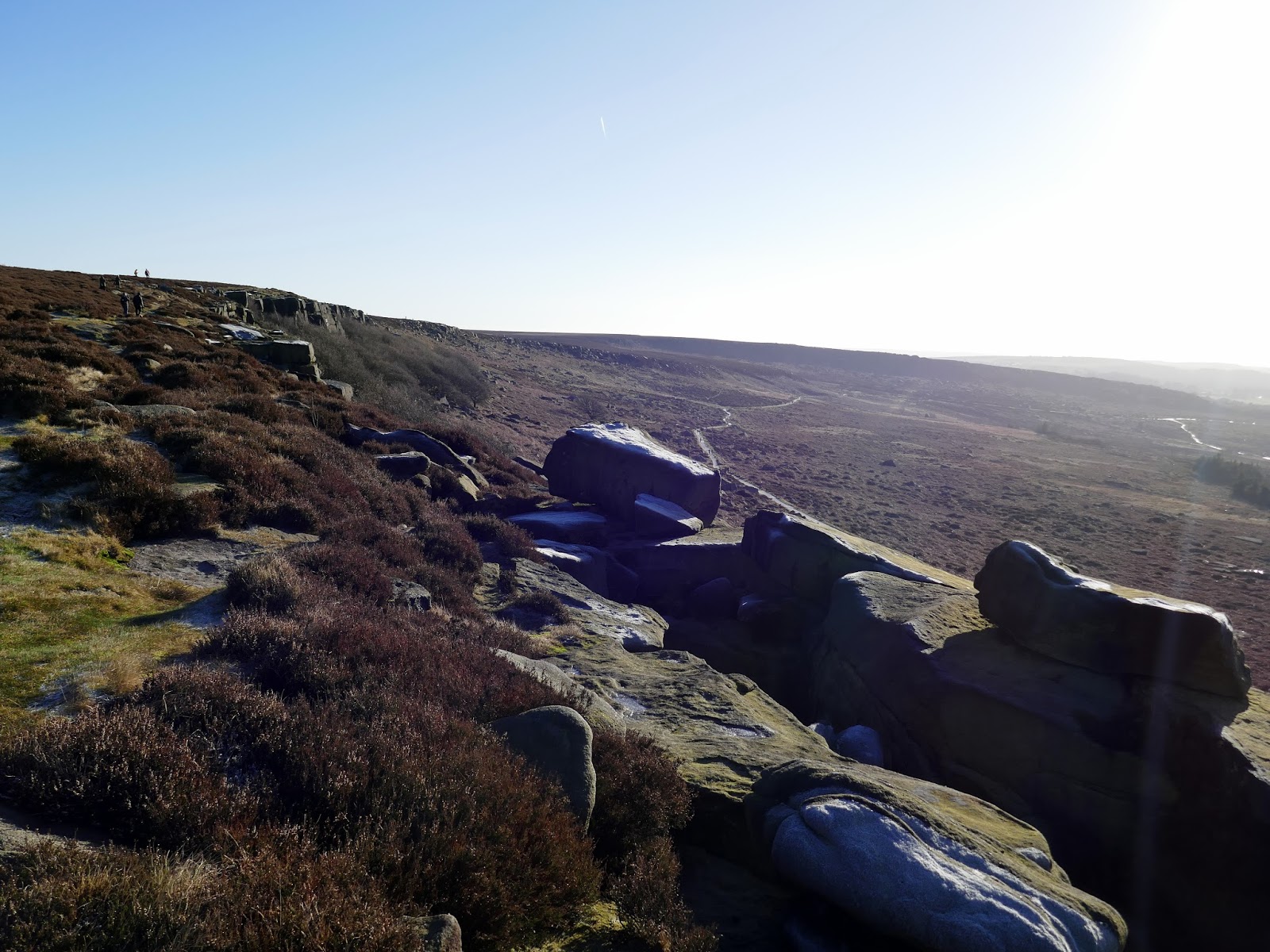 The sun was shining on the Peak District today, the perfect opportunity to get out into the moorland surrounding Hathersage, specifically the splendid edges of Stanage and Burbage. Arriving at the car park, it seemed many others had the same idea as well – likely a result of Christmas and new year excesses combined with the superb weather.