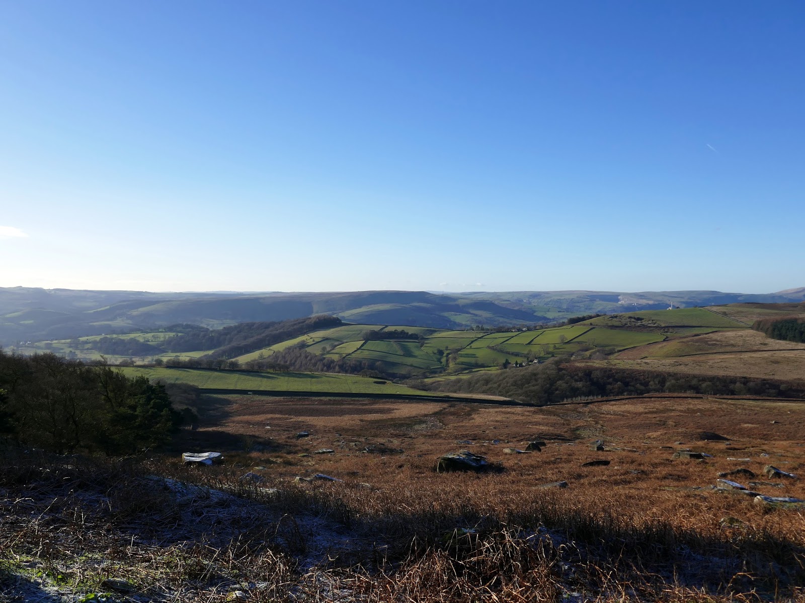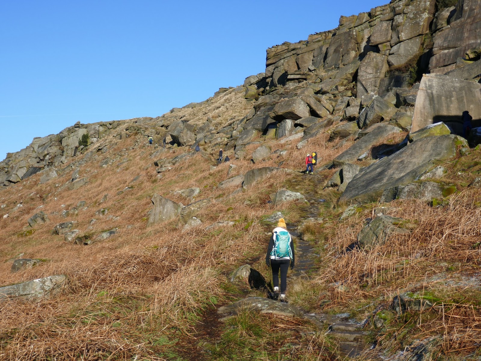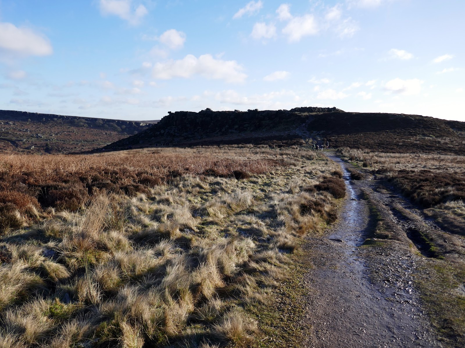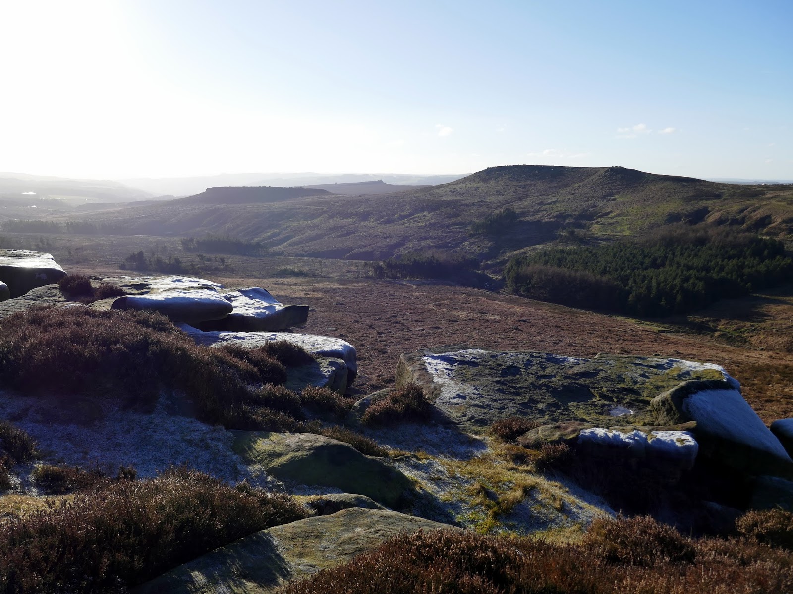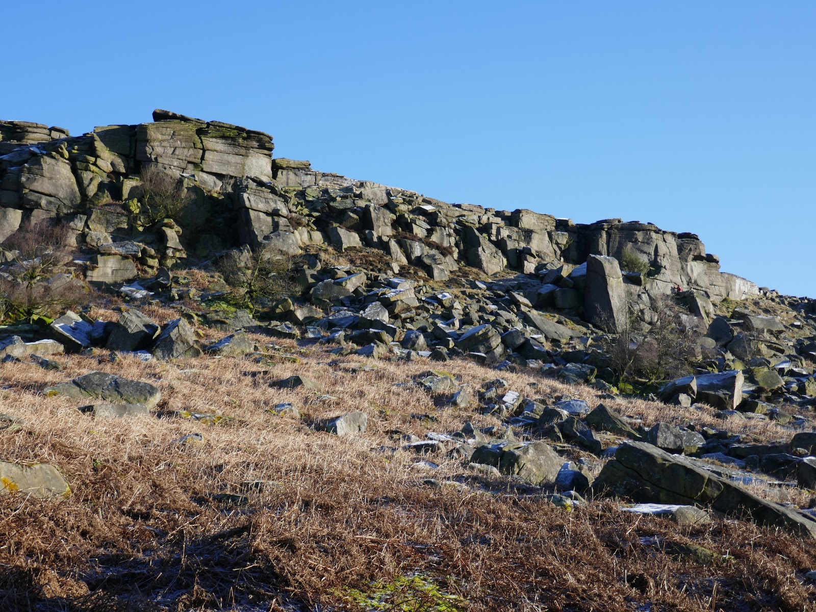 The sun was shining on the Peak District today, the perfect opportunity to get out into the moorland surrounding Hathersage, specifically the splendid edges of Stanage and Burbage. Arriving at the car park, it seemed many others had the same idea as well – likely a result of Christmas and new year excesses combined with the superb weather.