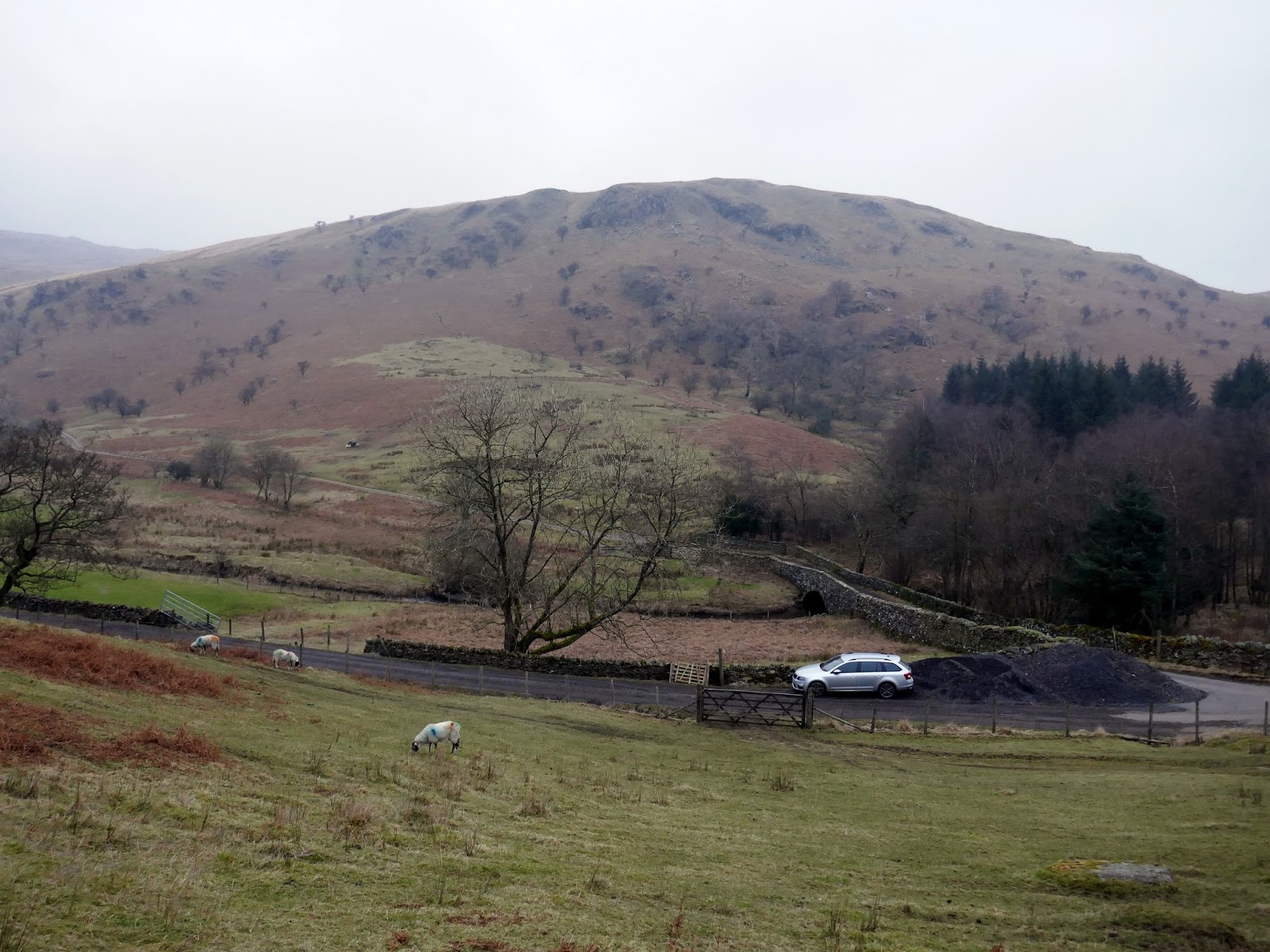 Lamb Pasture stands directly above Dryhowe Bridge through a line of small crags makes a direct descent tricky. Instead, skirting the crags to the south-east leads to easier ground and a descent to a farm track which ultimately leads to the bridge and the car, seemingly undisturbed in its space at the layby.