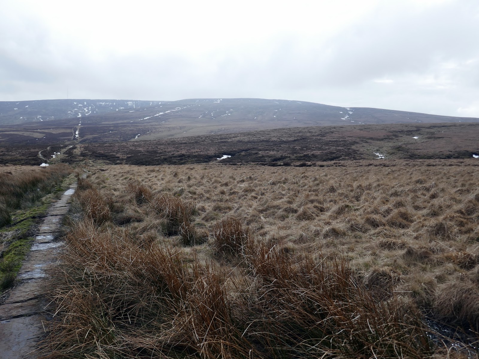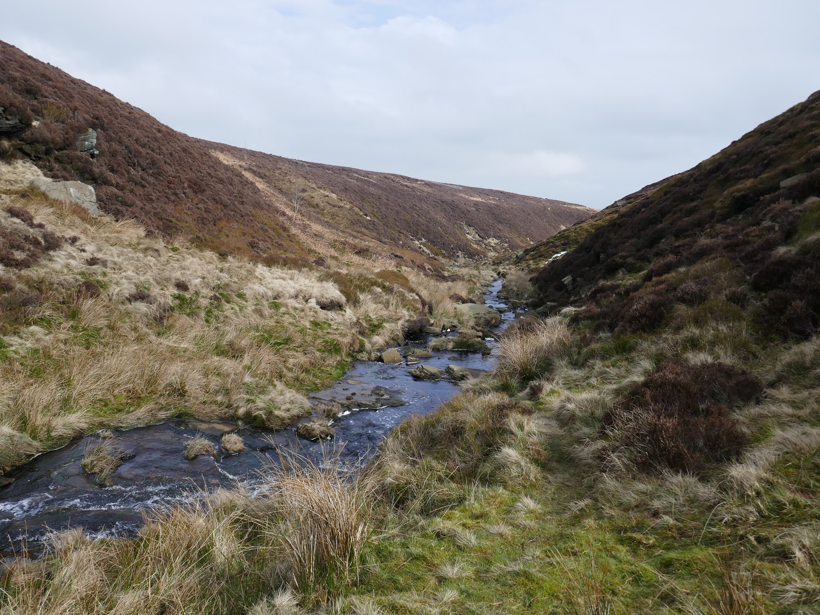 We joined the Pennine Way at the summit, marked by its traditional stone blocks. The Way descends from the summit past the deep gash of Issue Clough and then along the flanks of Wessenden Head Moor. The route is unusually direct for the Pennine Way though does cross two impressive cloughs, the largest one (Dean Clough) can be tricky to cross when it’s in spate.