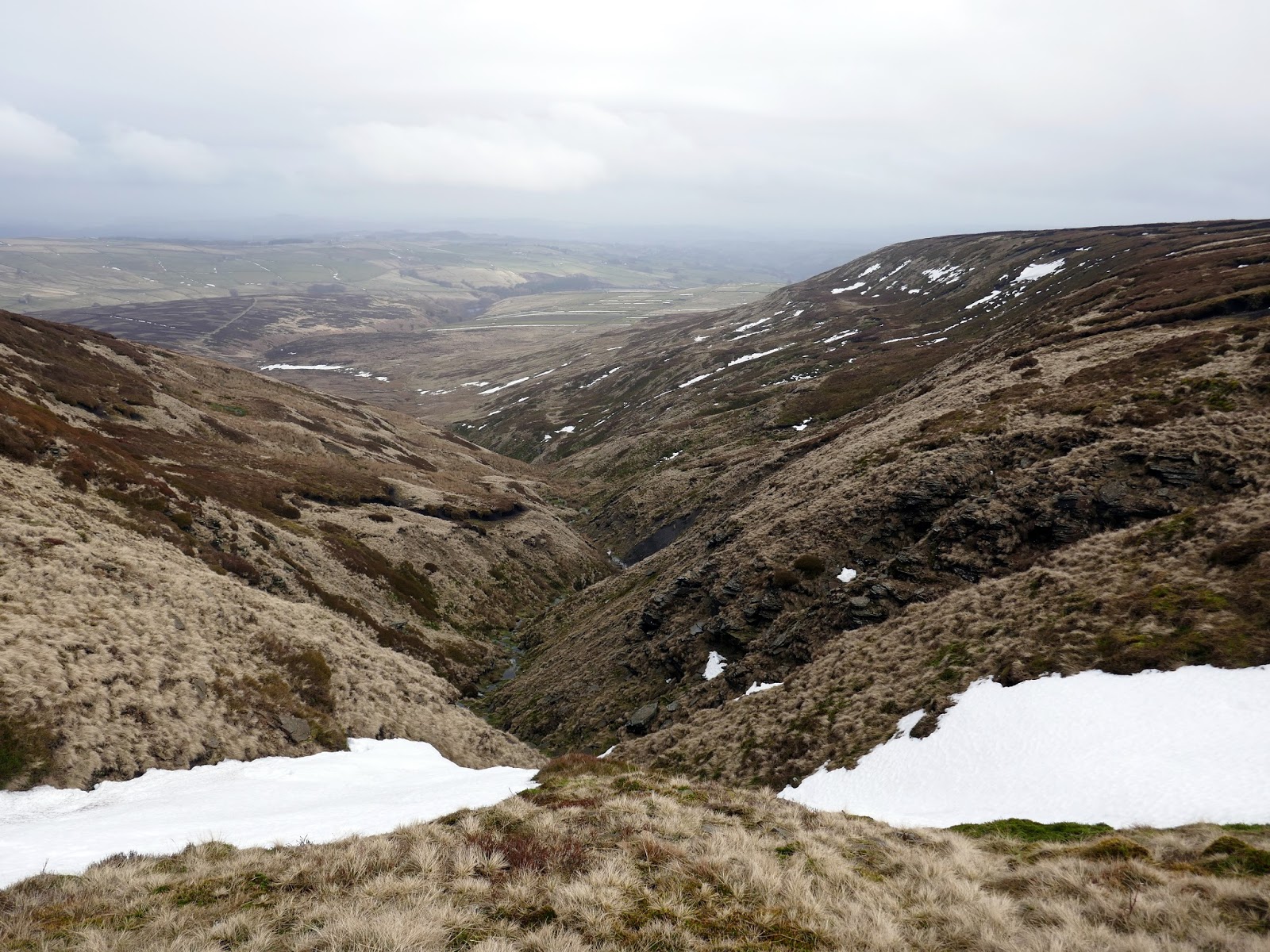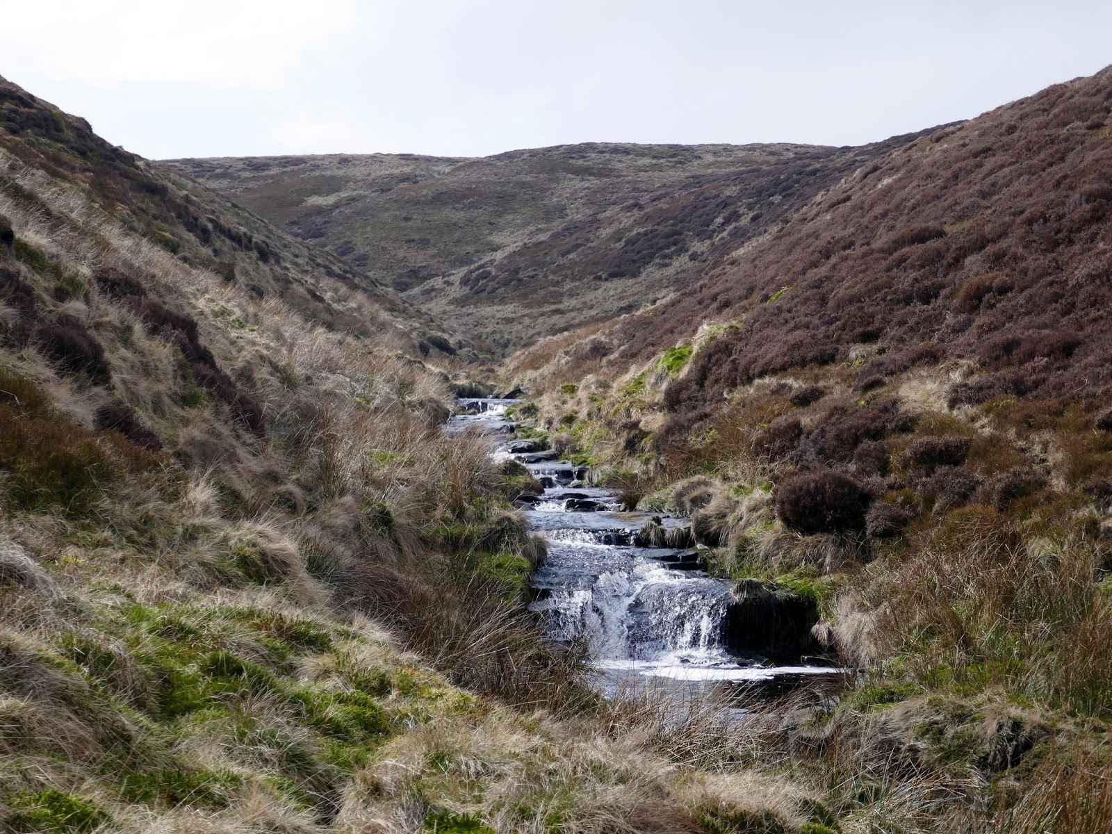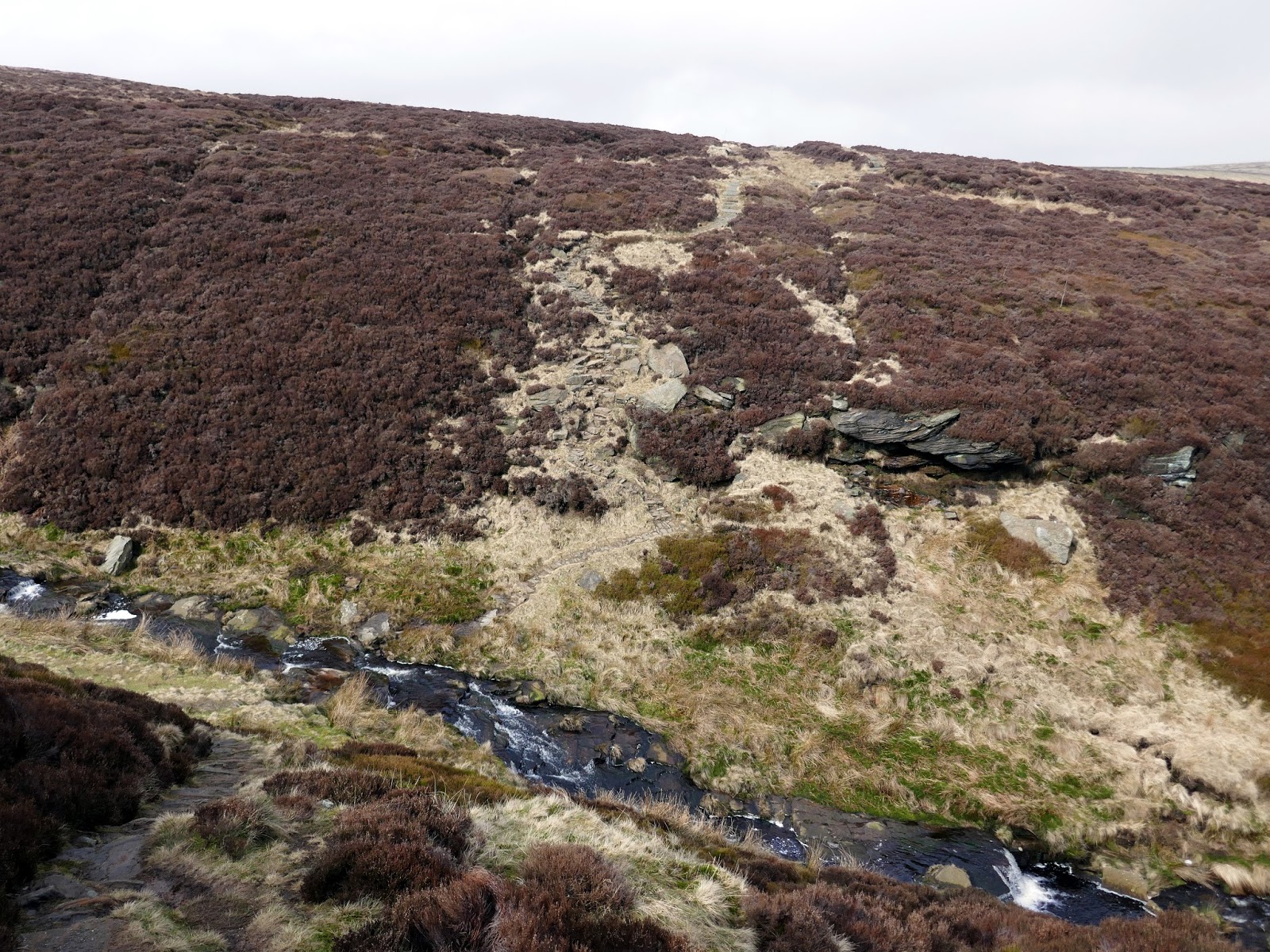 The next short section of the Pennine Way is a bit of a pain as it ignores a perfectly useable track which contours around the valley of Short Grain, instead dropping to the valley floor and climbing back up an immensely steep slope. Luckily the steepness is short lived and the Pennine Way emerges onto the Short Grain track once again.