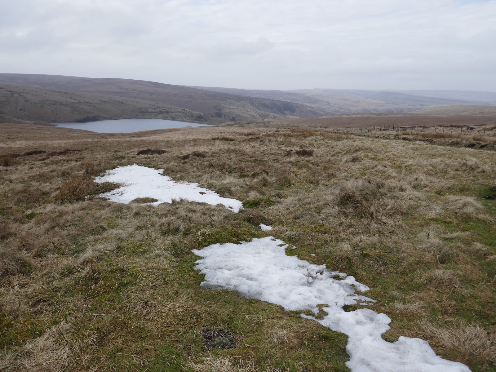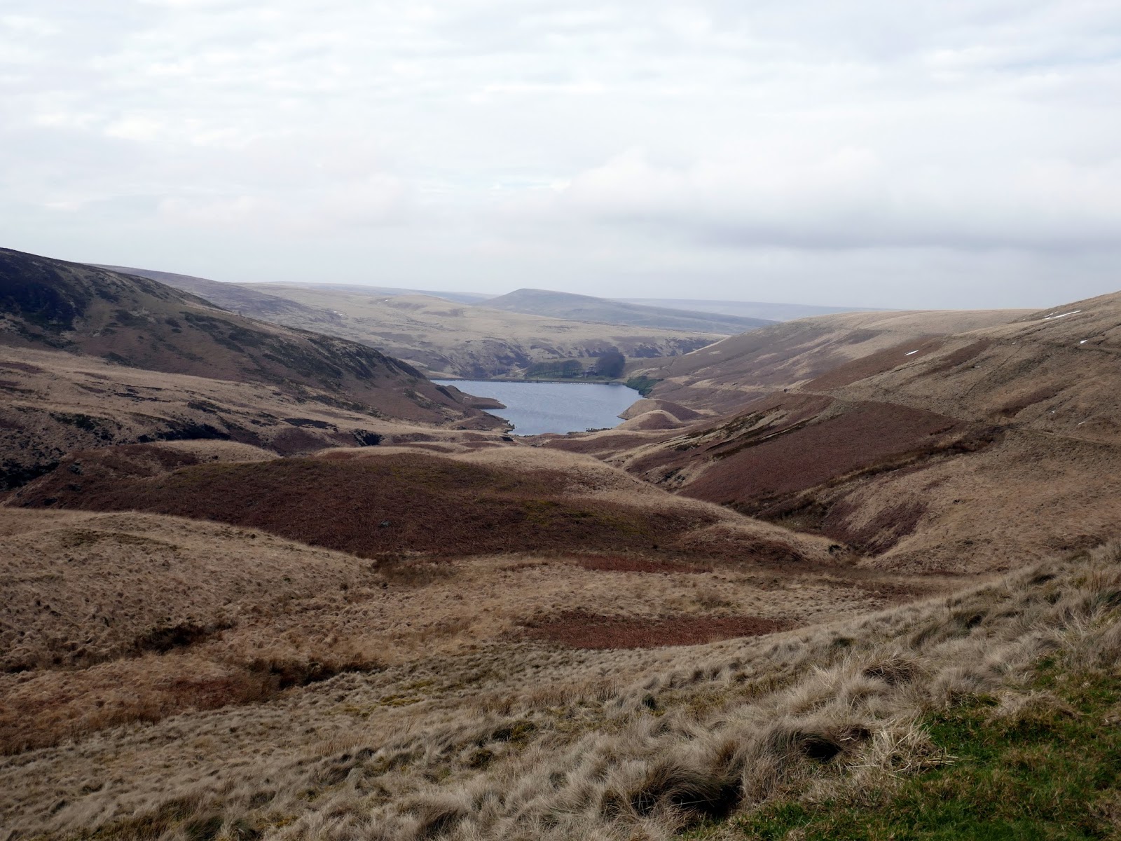 Climbing gently, the path wends through some shallow valleys until it emerges onto open moor once again at Black Moss. Here there are two lonely reservoirs; Black Moss and Swellands Though located side-by-side, the two reservoirs actually serve two opposite sides of the moor and, subsequently, entirely different towns. The Pennine Way crosses between them, right along the watershed.