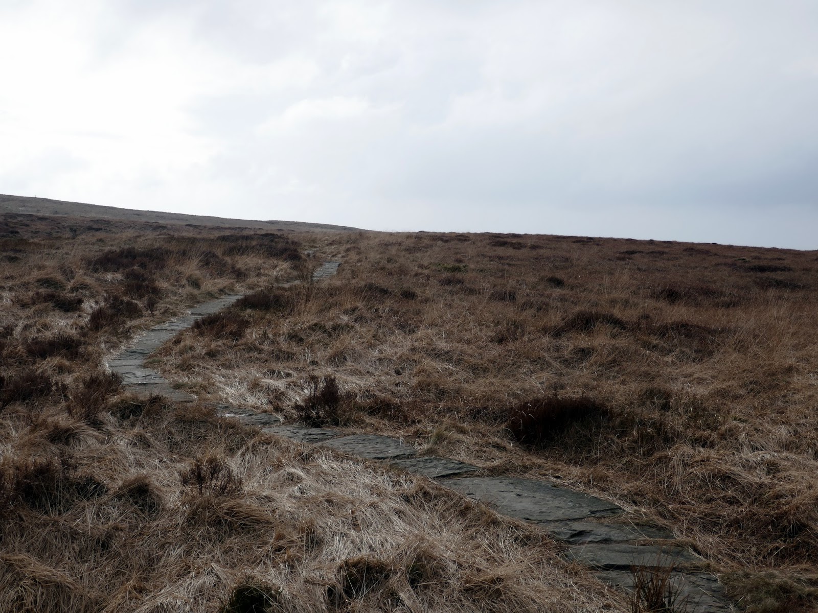 Leaving the Pennine Way to continue north, we circled Black Moss reservoir and joined the route of the old Pennine Way – the route it took before it was diverted. We had expected the return leg to the car park to be across largely pathless moor but were pleasantly surprised to find much of the route paved. I suspect this work was done prior to the Pennine Way diversion. Either way, it makes the final stretch much easier than we anticipated.