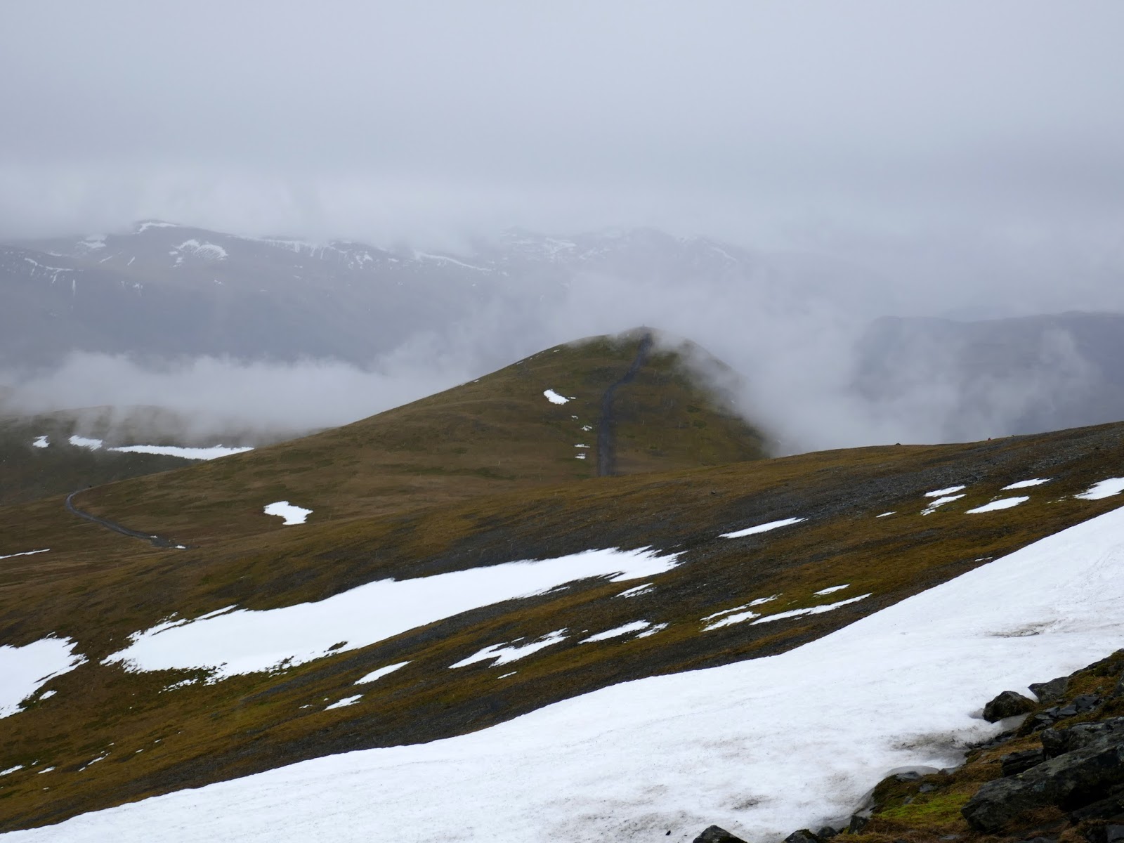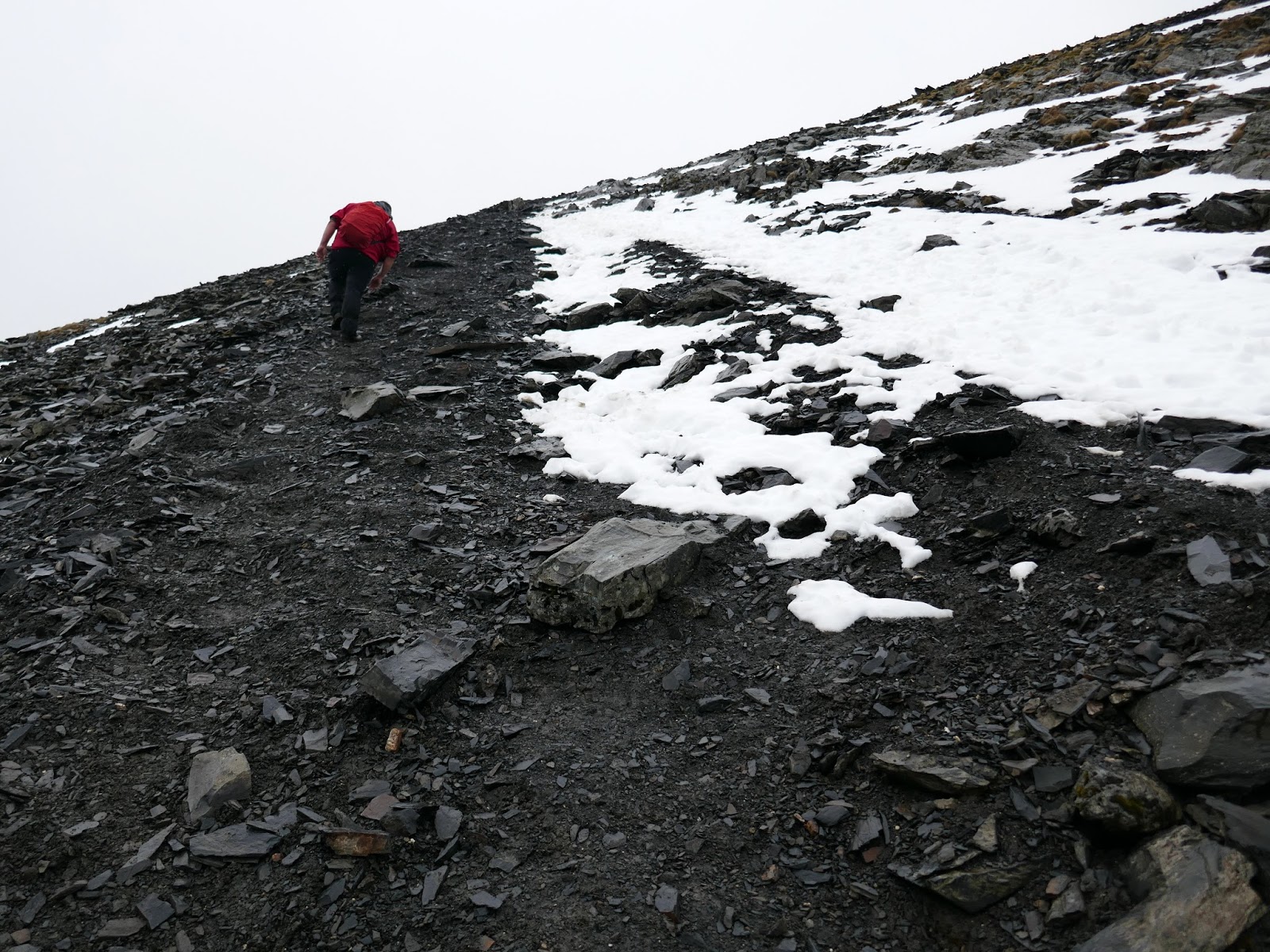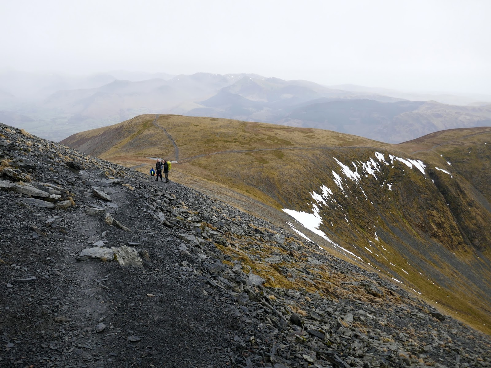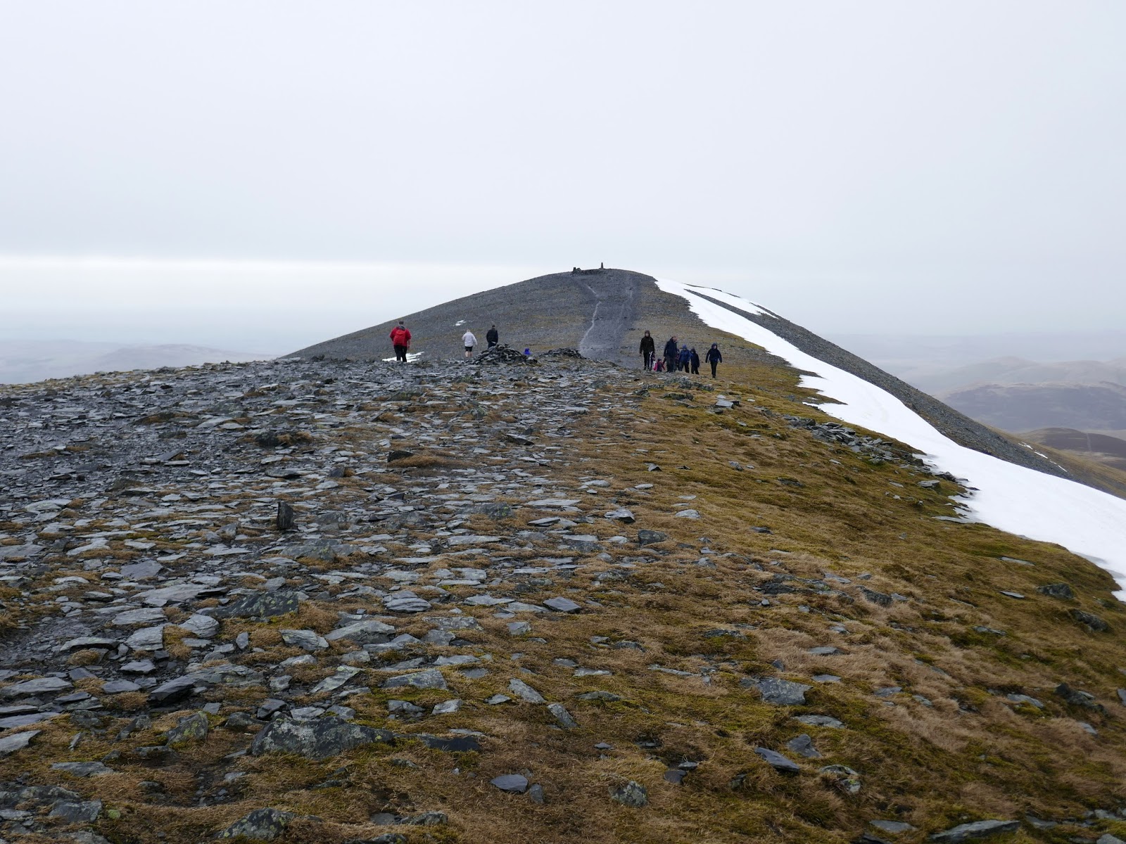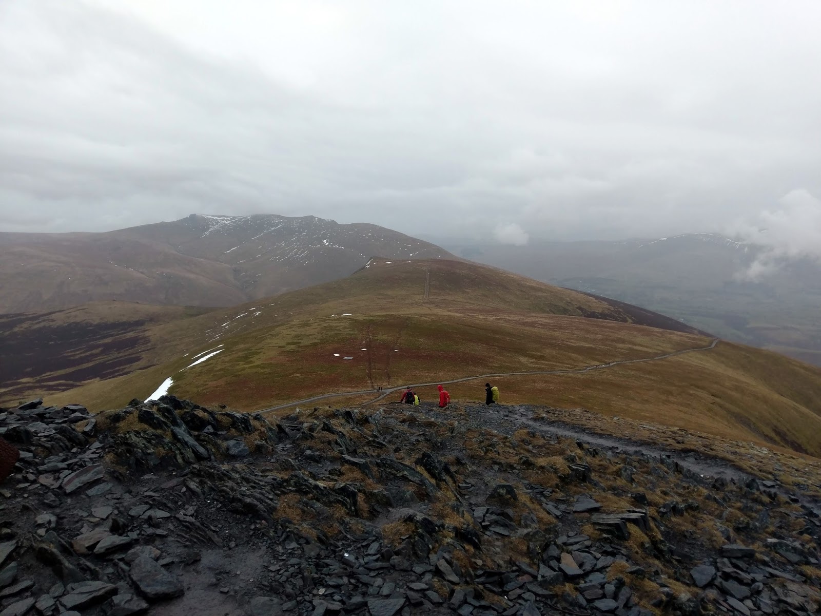 As I mentioned, the climb up on to Skiddaw is via a very steep, slippery path. A steady rhythm of one foot in front of the other and some gentle encouragement from some folks on their way down eventually saw us up to the summit ridge.