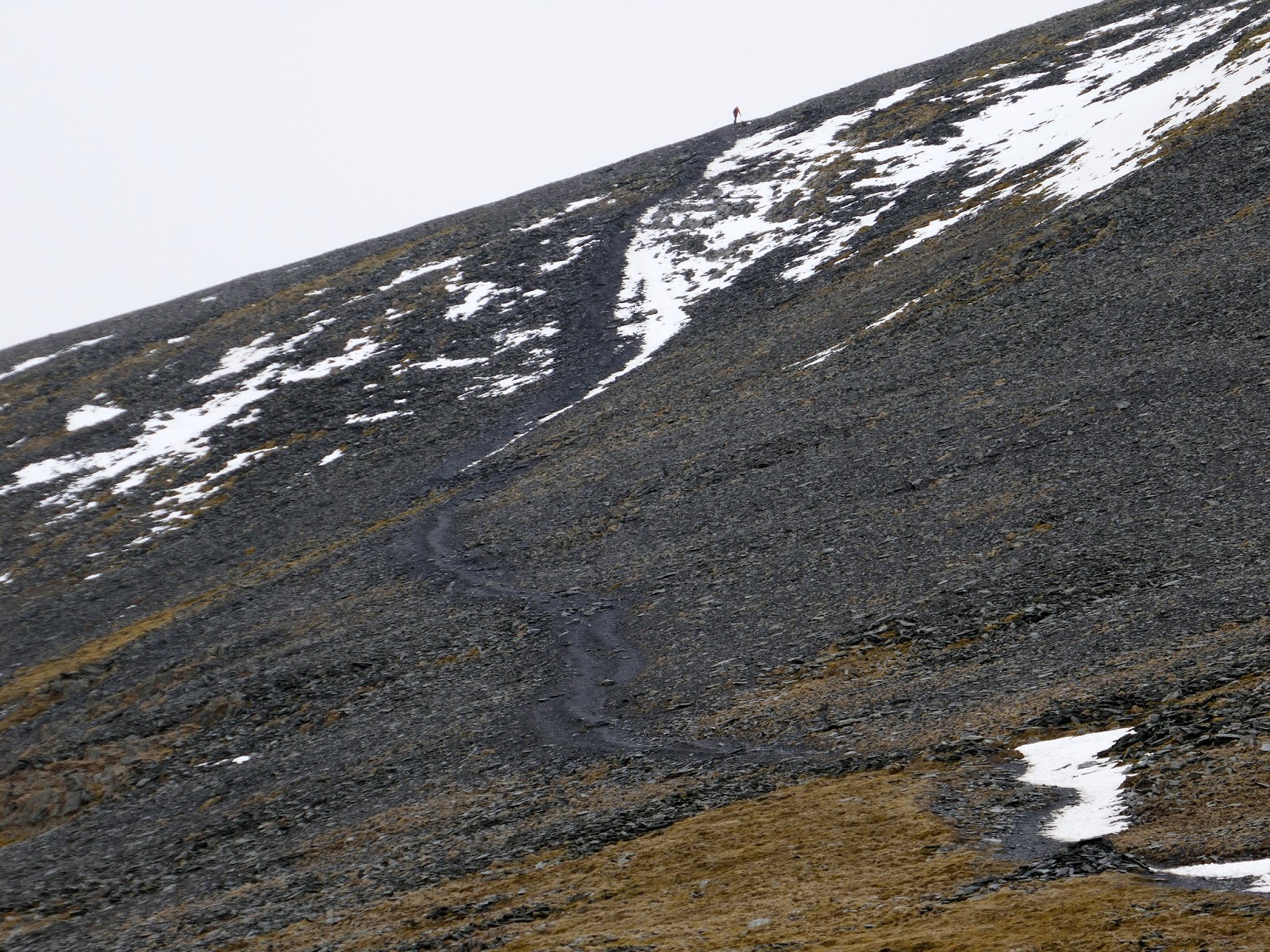 Despite not having the towering crags of its 3,000ft brothers, Skiddaw makes up for this deficiency by being fantastically and consistently steep, rising from the valley floor to a height of over 900m in 3 short kilometres. That makes for an approximate gradient of 30% which is very steep indeed.