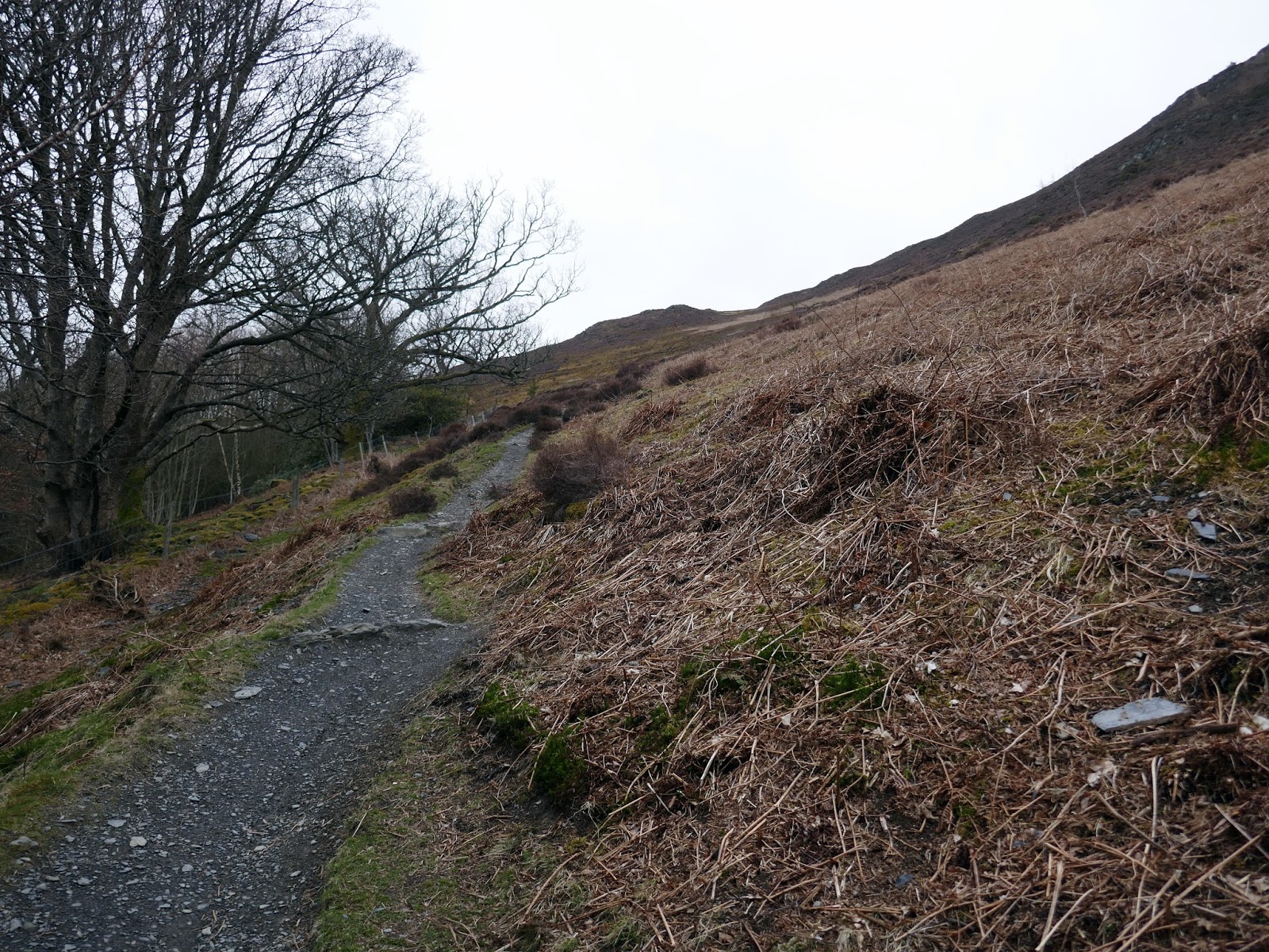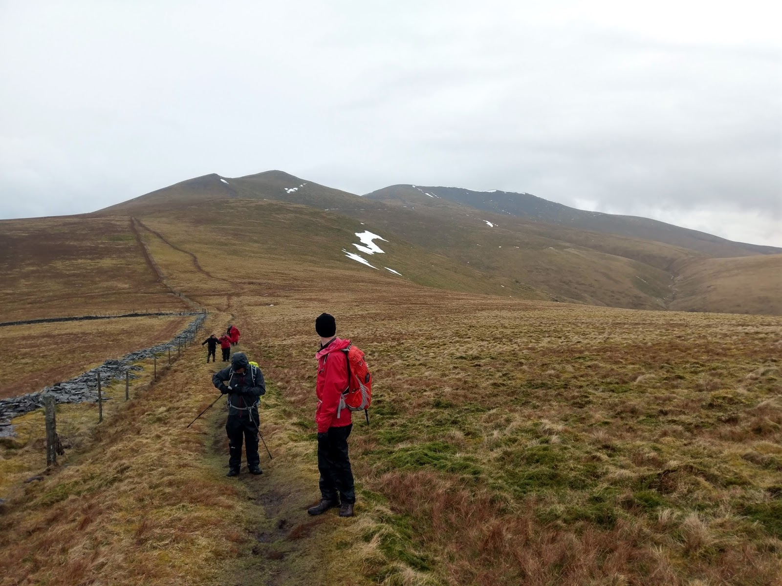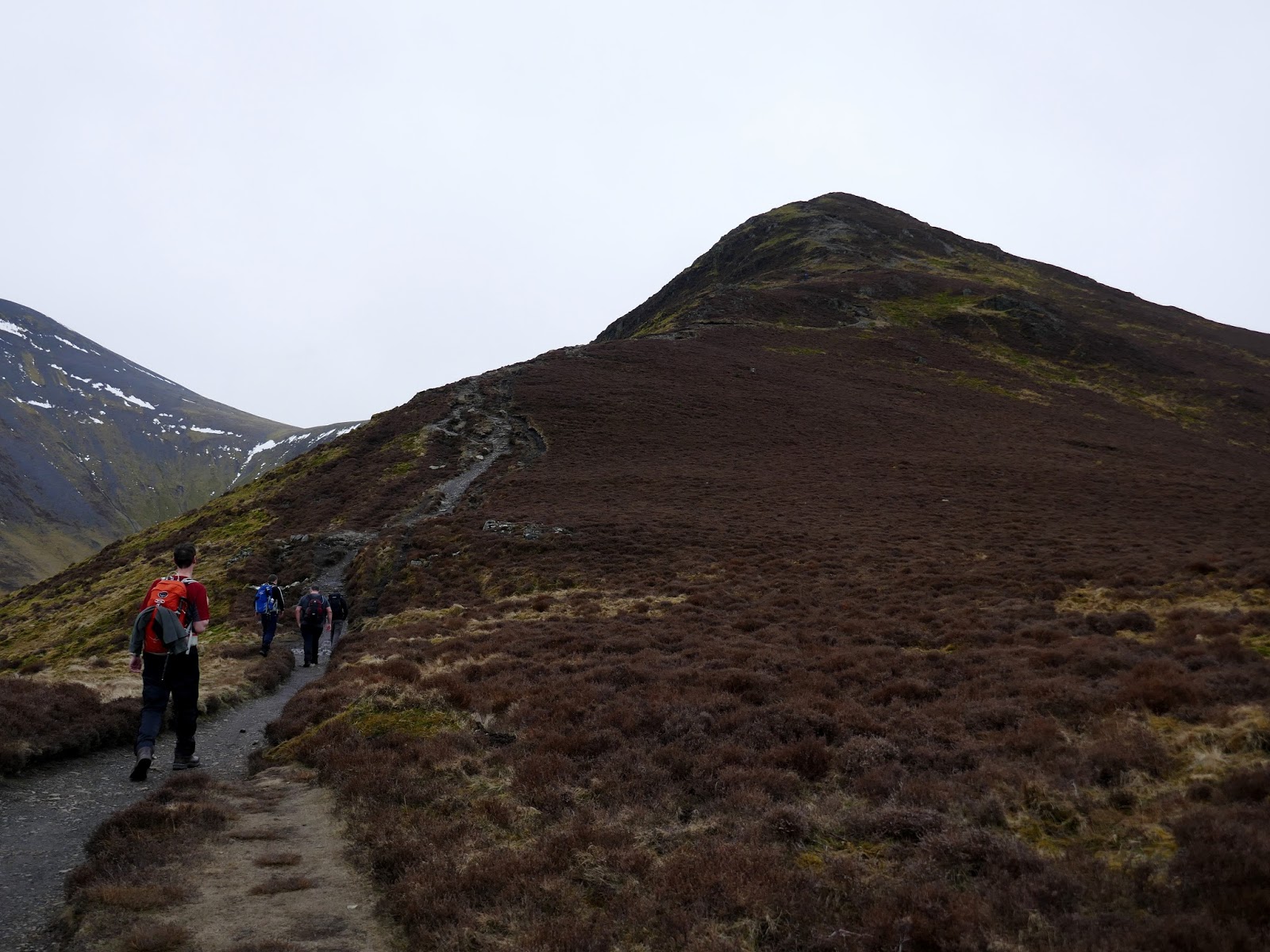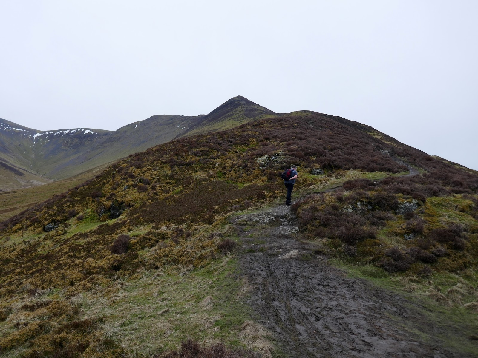After arranging a few cars around the northern Lake District, we were thrust straight into what would sum up the first half of the walk, steepness. The path rises up behind the Ravenstone Hotel to meet the start of the ridge that would lead us over Ullock Pike and Long Side. There would be no gradual warm-up for this one. The weather would be startng off a bit drab but, as the day progressed, we were expecting a spell of rain to arrive. Better get cracking.
