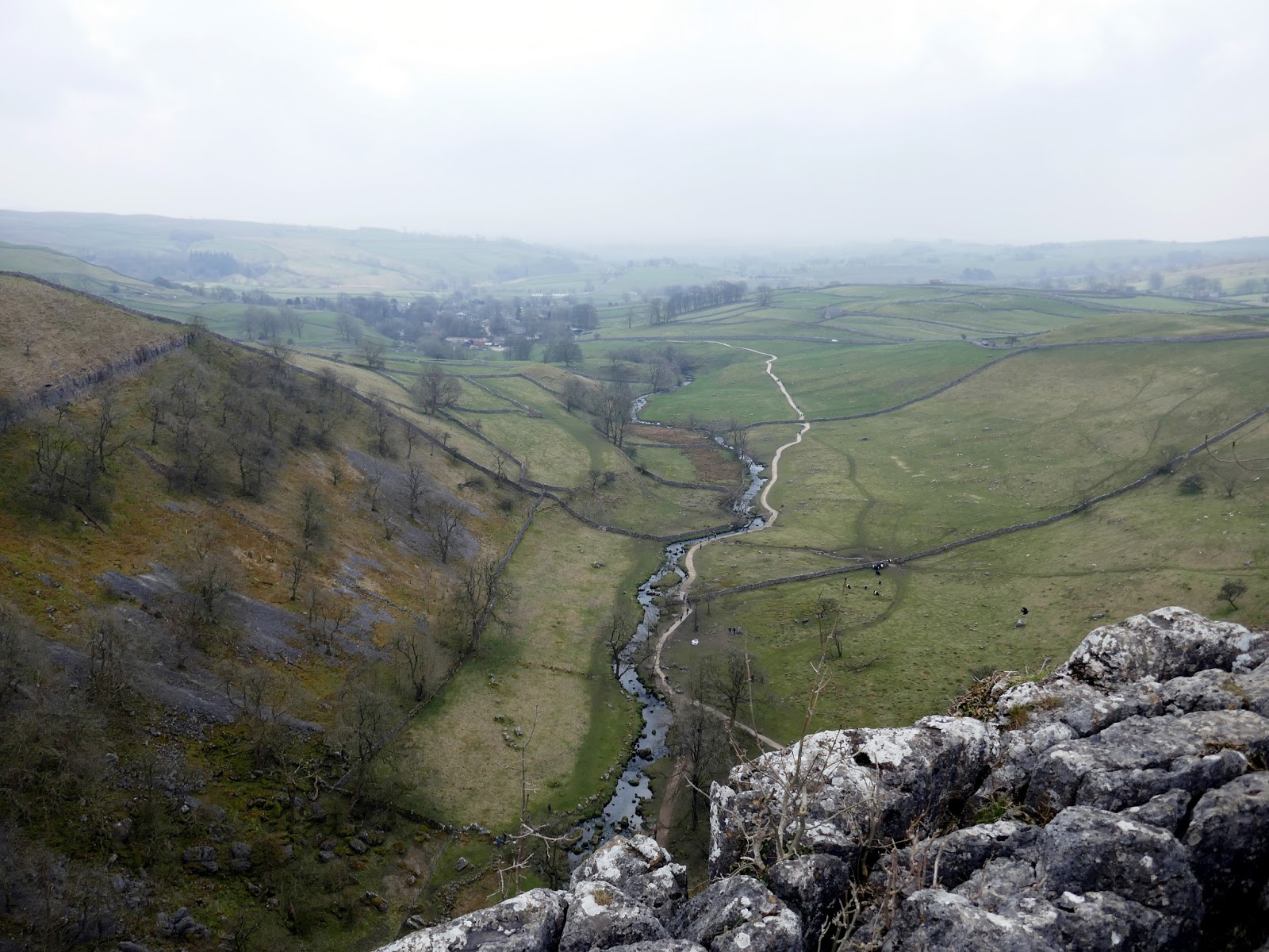 We spent a few minutes wandering around the limestone pavement before hopping our way over the to path to the west that utilises a set of well-placed steps to carry you down into the valley. Another few minutes were spent wandering around, looking an awe at the sheer size of the limestone rock face and searching in vain for a hidden geocache. In all, we spent a good 45 minutes at Malham before we set off back along the path towards the village and the waiting car.