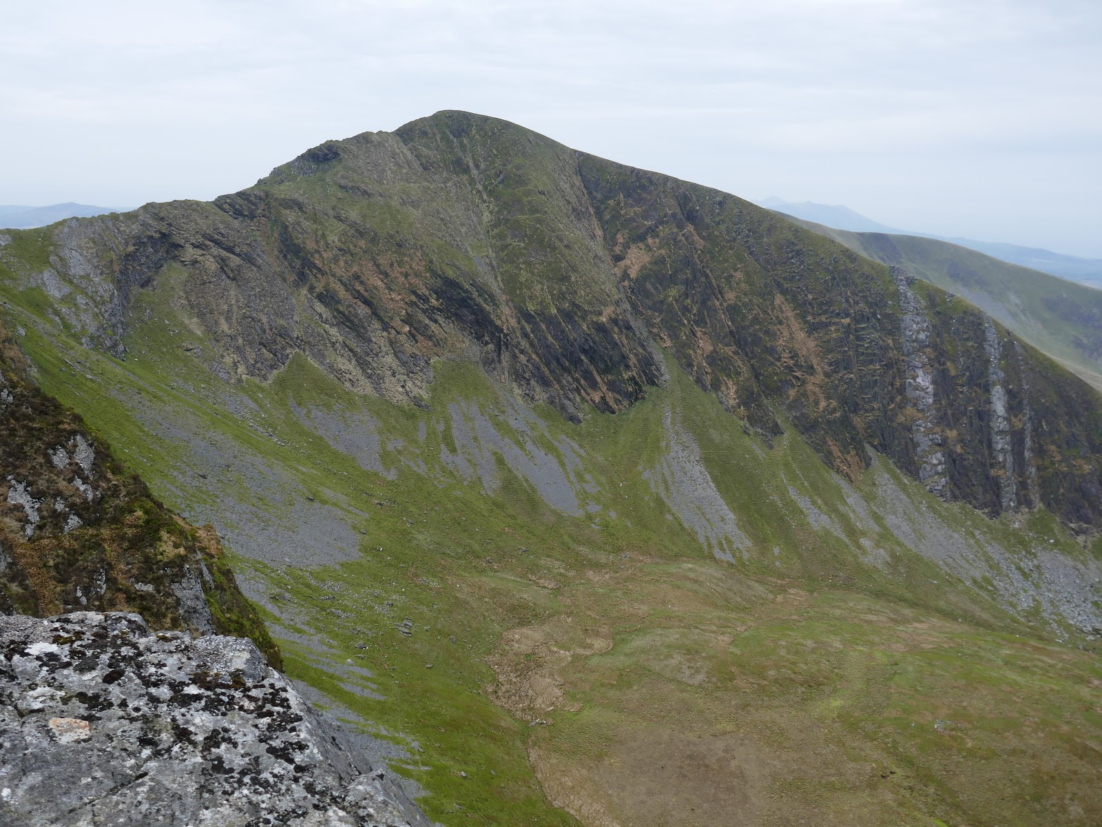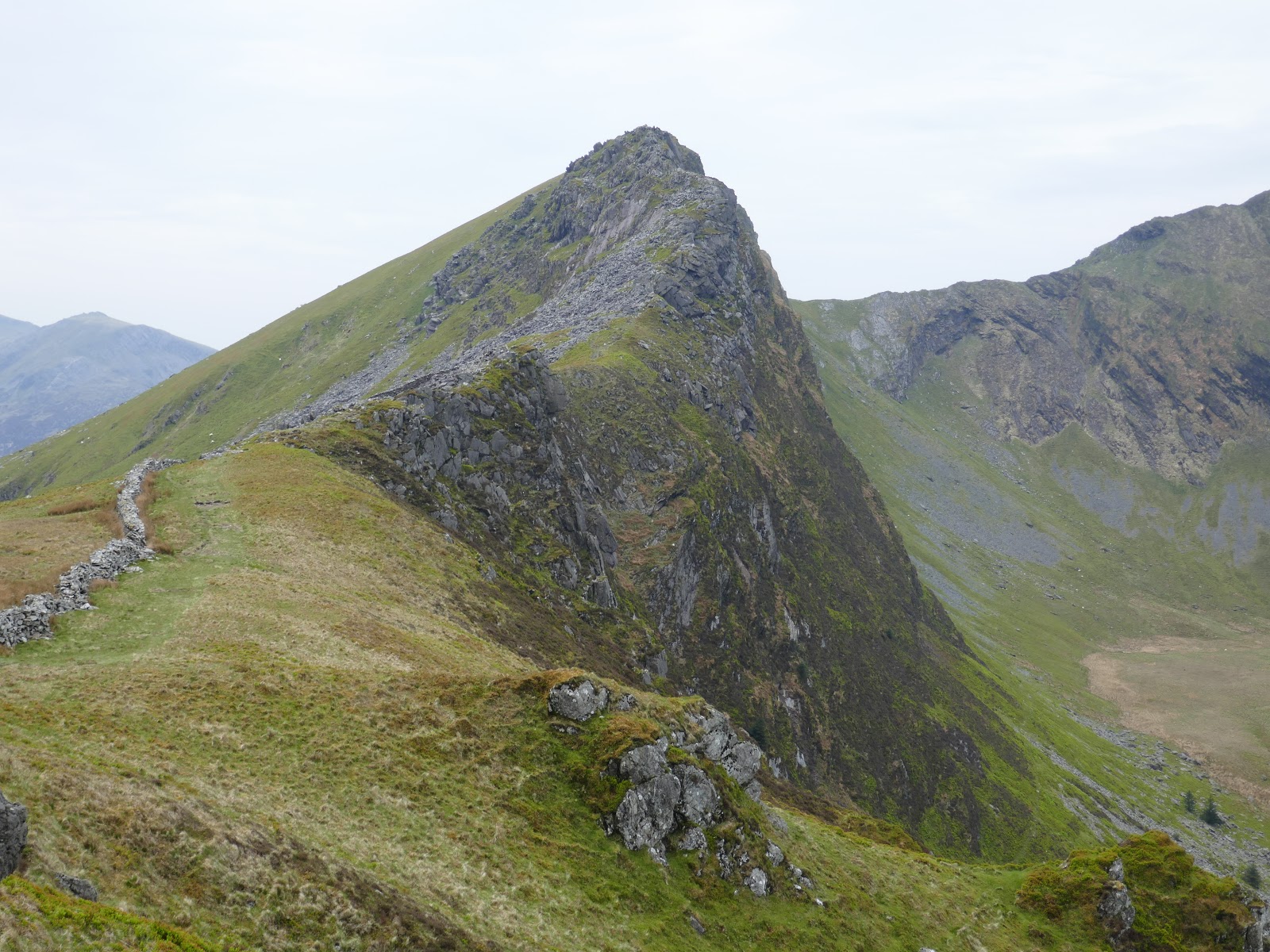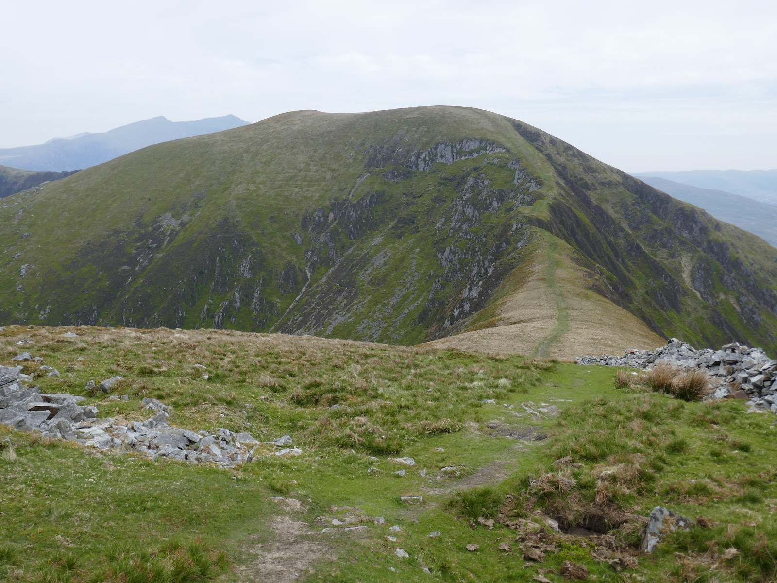 A narrow arete separates Mynydd Drws-y-Coed from the neighbouring Trum y Ddysgl, itself an impressive mountain with an equally impressive view to Mynydd Drws-y Coed.
