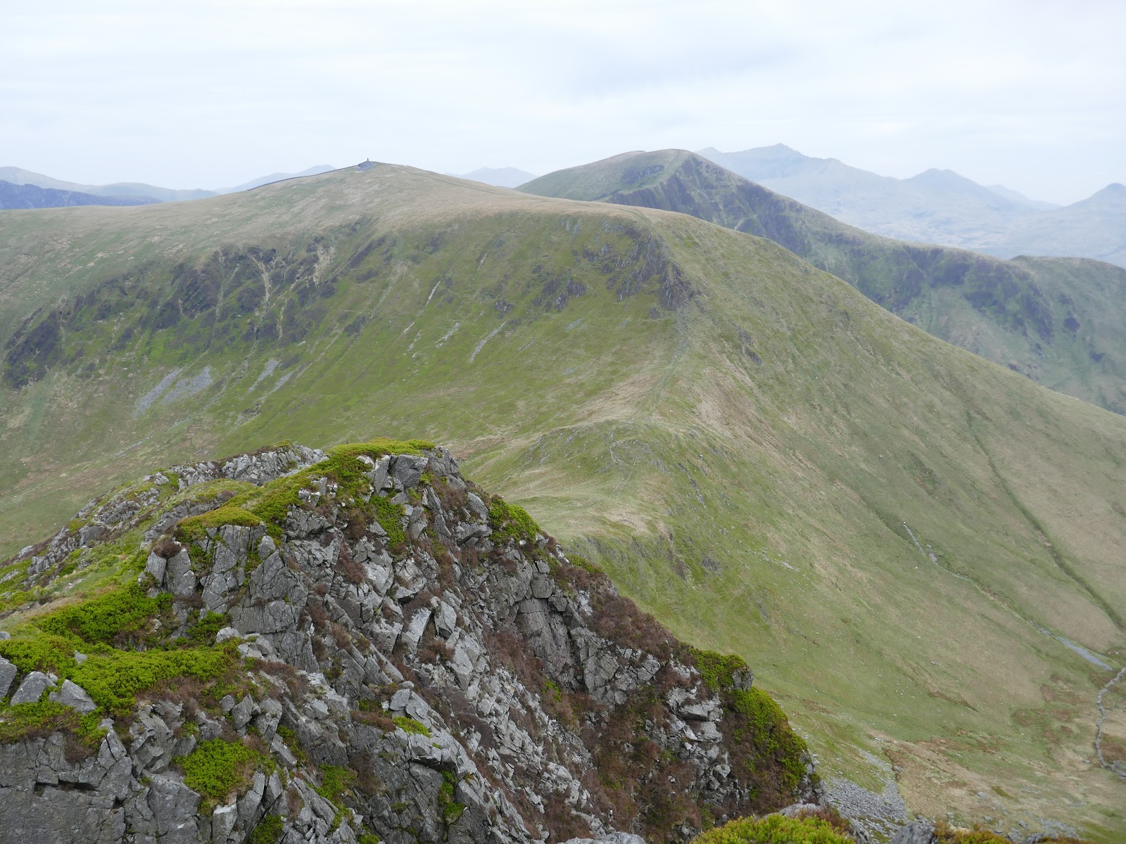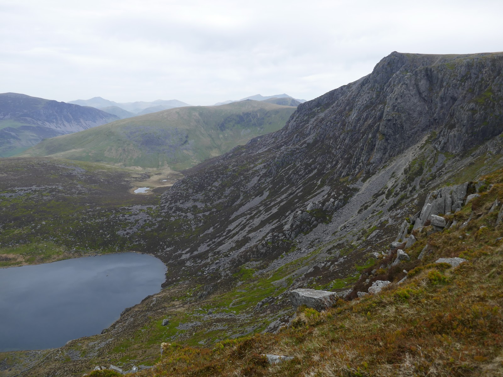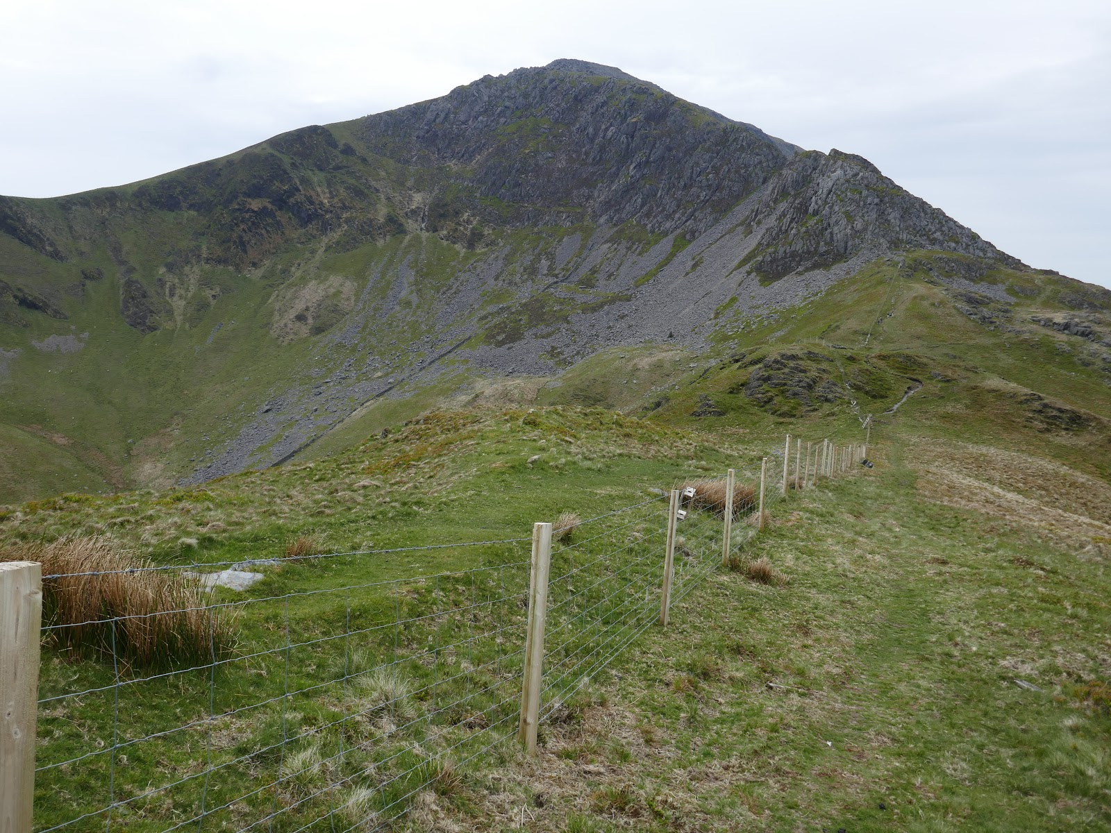 A narrow arete separates Mynydd Drws-y-Coed from the neighbouring Trum y Ddysgl, itself an impressive mountain with an equally impressive view to Mynydd Drws-y Coed.